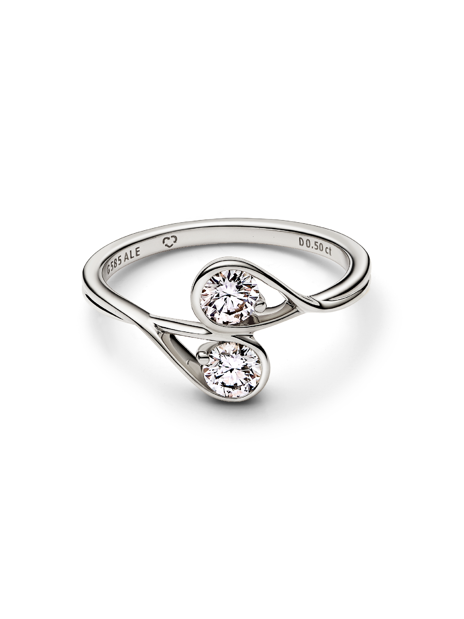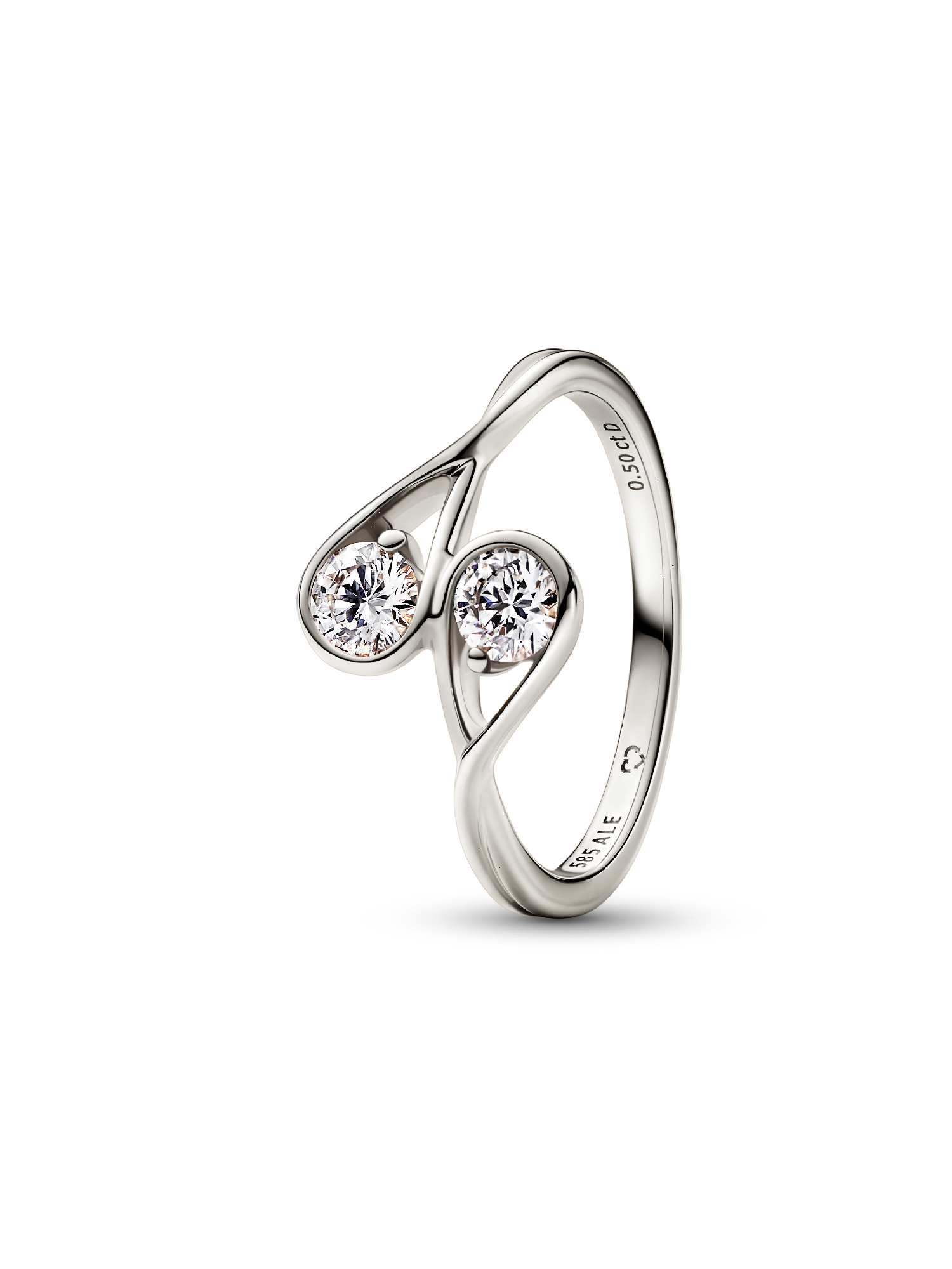 Celebrate your power to shine with our Pandora Infinite 14k White Gold Double Lab-grown Diamond Ring. Hand-set in solid 14k white gold with a crossover infinity design, this ring features two round brilliant excellent cut lab-grown diamonds, totaling 0.50 carat, each placed inside its own infinity loop. A combined prong-and-bezel setting inside the open profile creates a floating effect for each diamond. Inspired by infinite connections, the modern infinity shape flows seamlessly around the stones and represents your eternal bonds. Wear it as a sparkling statement on its own or stacked with other rings from the Pandora Infinite collection. Each Pandora Lab-grown diamond is treated with a post-growth color enhancement called annealing.