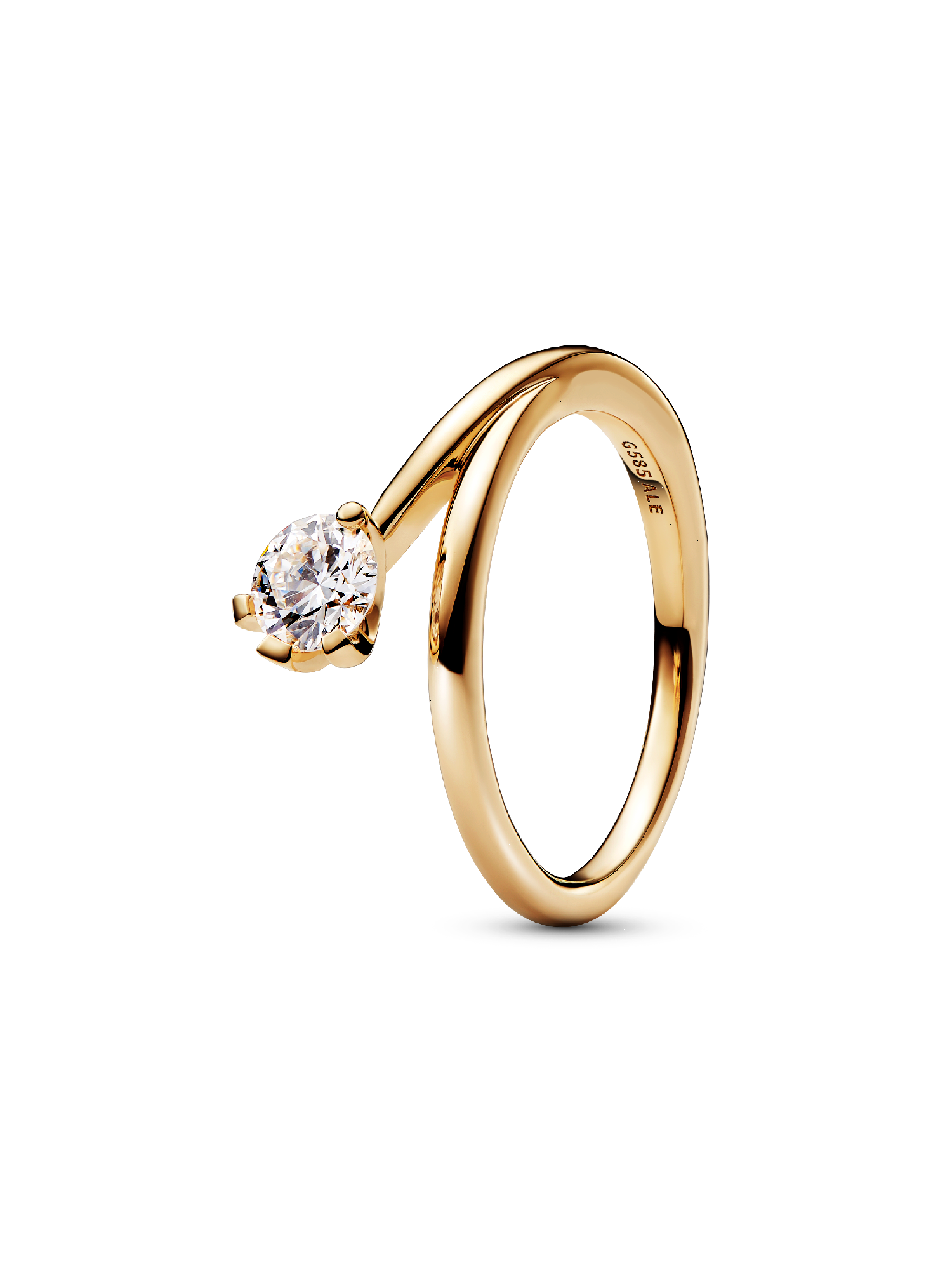 Shine in the Pandora Nova 14k Gold Lab-grown Diamond Asymmetric Ring. Inspired by the illusion of capturing and holding a precious fragment of light, this luminous lab-grown diamond ring features a 0.50 carat round brilliant excellent cut lab-grown diamond set in 14k gold, branching out from the ring band to create a dynamic, modern design. An asymmetrical prong setting frames the stone, letting in the light to amplify its sparkle. Wear or gift it as a symbol of the unique light within all of us. Each Pandora Lab-grown diamond is treated with a post-growth color enhancement called annealing.