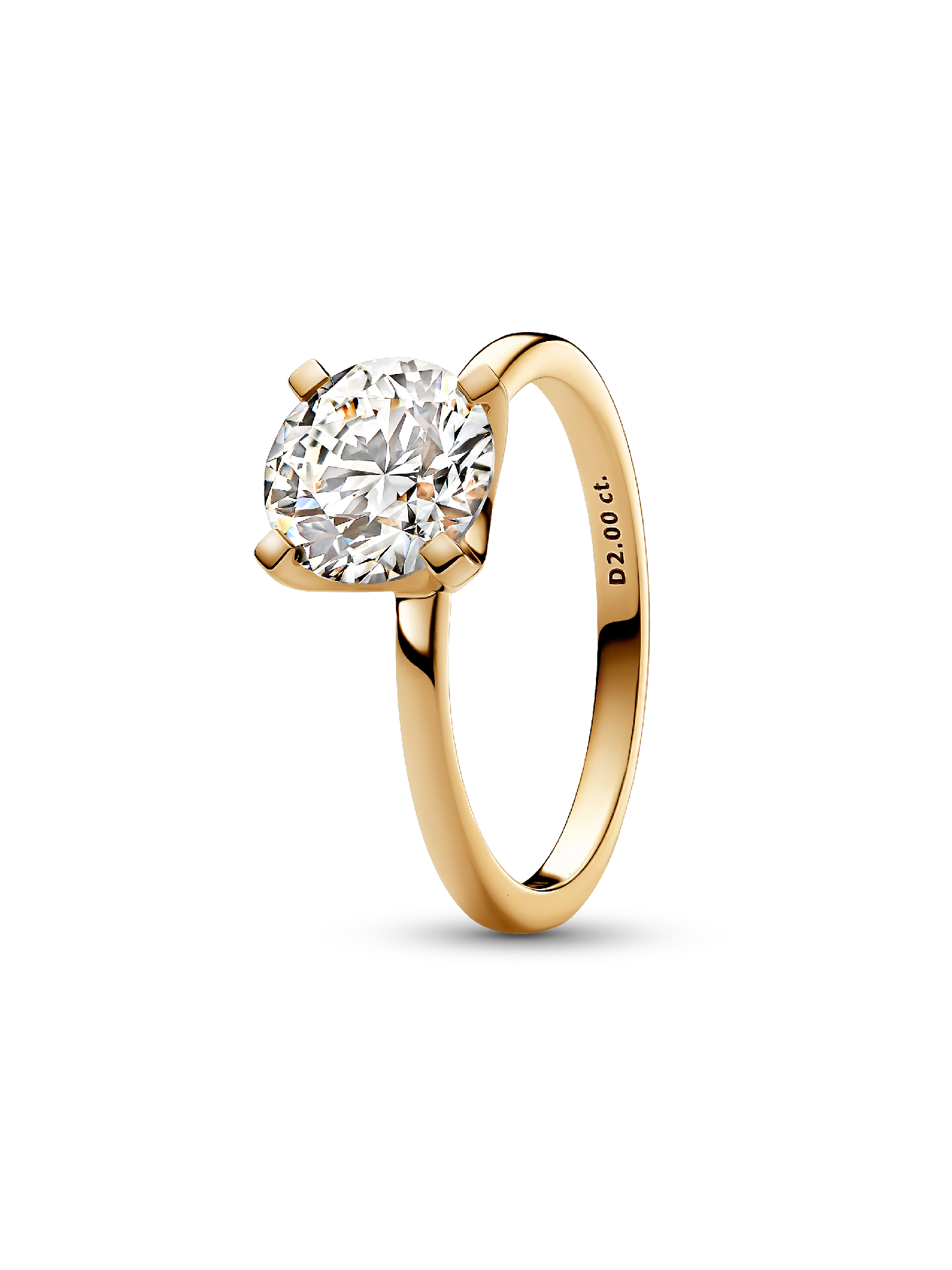 A fresh twist on a classic. The Pandora Era 14k Gold Lab-grown Diamond Ring showcases a 2.00 carat round, excellent cut lab-grown diamond. Set in 14k white gold, the solitaire motif features a unique design: a lifted diamond embraced by squared prongs. The prongs are angled for optimal sparkle and the annealed diamond finish makes this ring a special piece. This eye-catching 14k gold ring is a piece to be worn and treasured for years to come - by you or someone who brings light into your world. Please note, each Pandora Lab-grown diamond is treated with a post-growth color enhancement called annealing.
