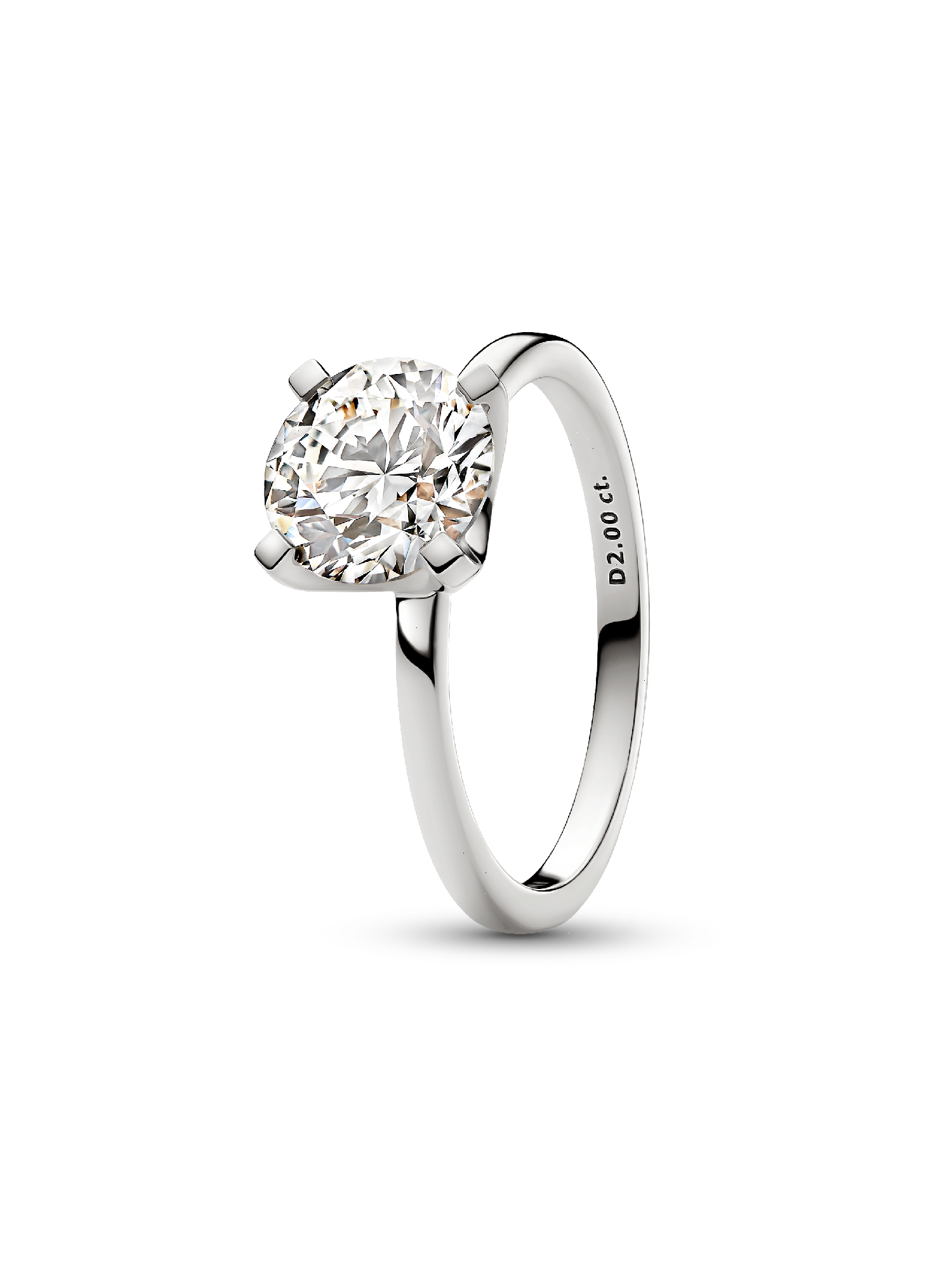 A fresh twist on a classic. The Pandora Era 14k White Gold Lab-grown Diamond Ring showcases a 2.00 carat round, excellent cut lab-grown diamond. Set in 14k white gold, the solitaire motif features a unique design: a lifted diamond embraced by squared prongs. The prongs are angled for optimal sparkle and the annealed diamond finish makes this ring a special piece. This eye-catching 14k white gold ring is a piece to be worn and treasured for years to come - by you or someone who brings light into your world. Please note, each Pandora Lab-grown diamond is treated with a post-growth color enhancement called annealing.