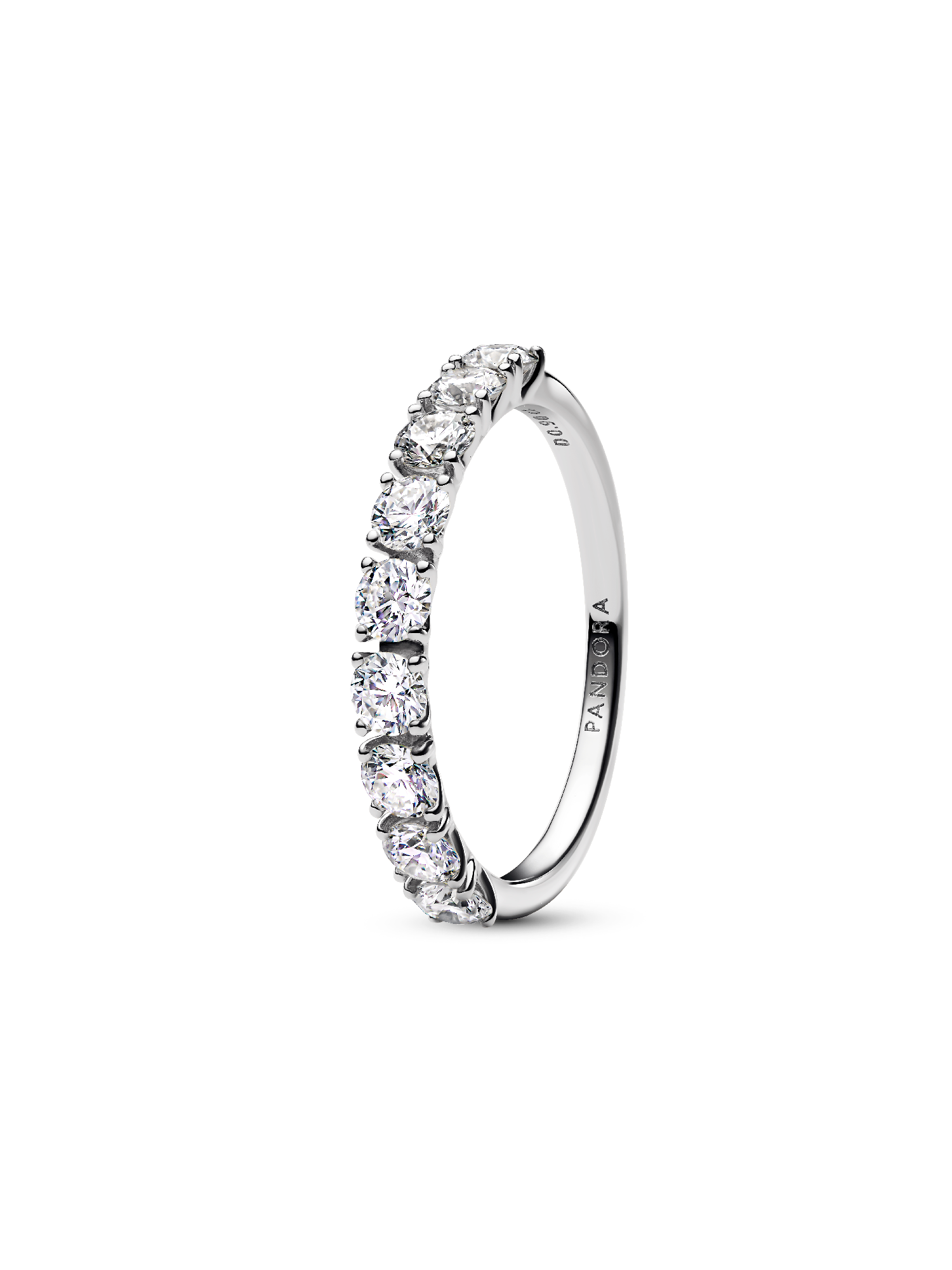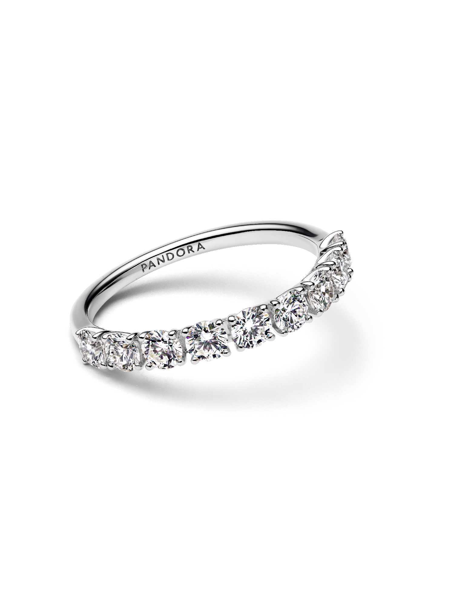 Let the light in, with this radiant lab-grown diamond ring from our Pandora Era collection. A 14k white gold band is encrusted with a row of nine lab-grown diamonds, fitted to the band with prong settings that hold the diamond diagonally, allowing maximum light refraction to enhance sparkle. Whether you're treating yourself or surprising someone special, this is a ring to love for a lifetime. To ensure our rigorous standards of quality in color and clarity, each lab-grown diamond has undergone an additional high heat and pressure treatment prior to cutting and polishing.