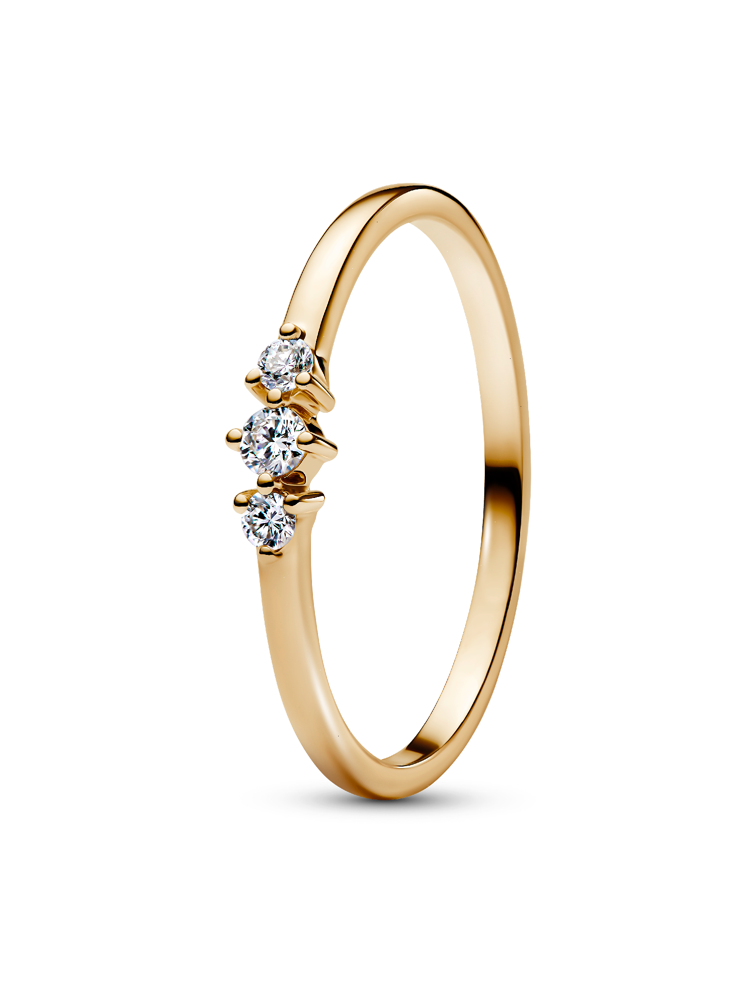 A new kind of diamond ring, our Pandora Era 14k Gold Lab-grown Diamond Triple Stone Ring is the ultimate everyday essential. This radiant design features three round brilliant-cut lab-grown diamonds, fitted to the band with a prong setting that allows maximum light to pass through the stone, casting brilliant reflections all around. Crafted and hand-finished in 14k gold, wear this meaningful ring as a symbol of all that you love, or gift it to that special person in your life. To ensure our rigorous standards of quality in color and clarity, each lab-grown diamond has undergone an additional high heat and pressure treatment prior to cutting and polishing.