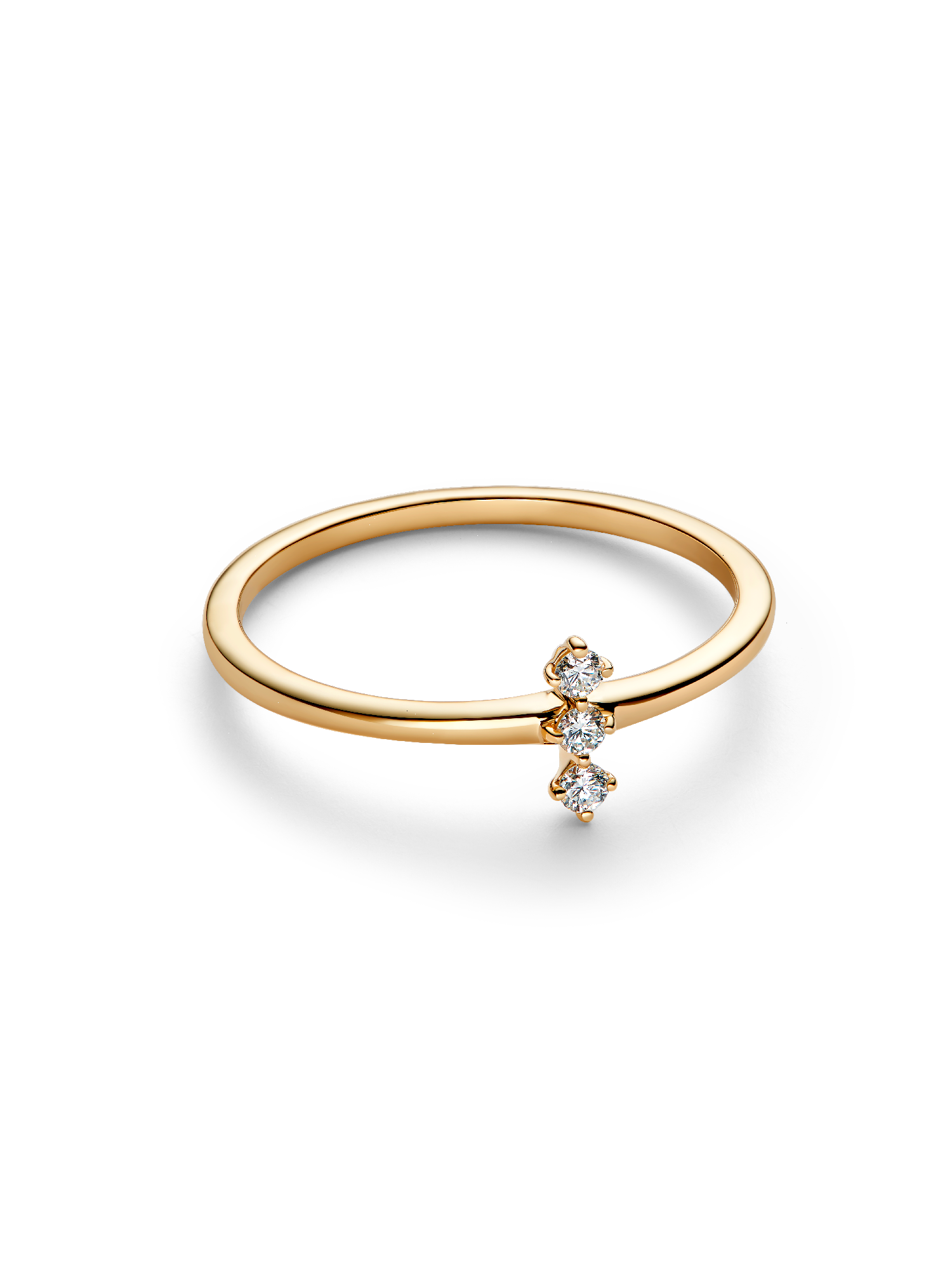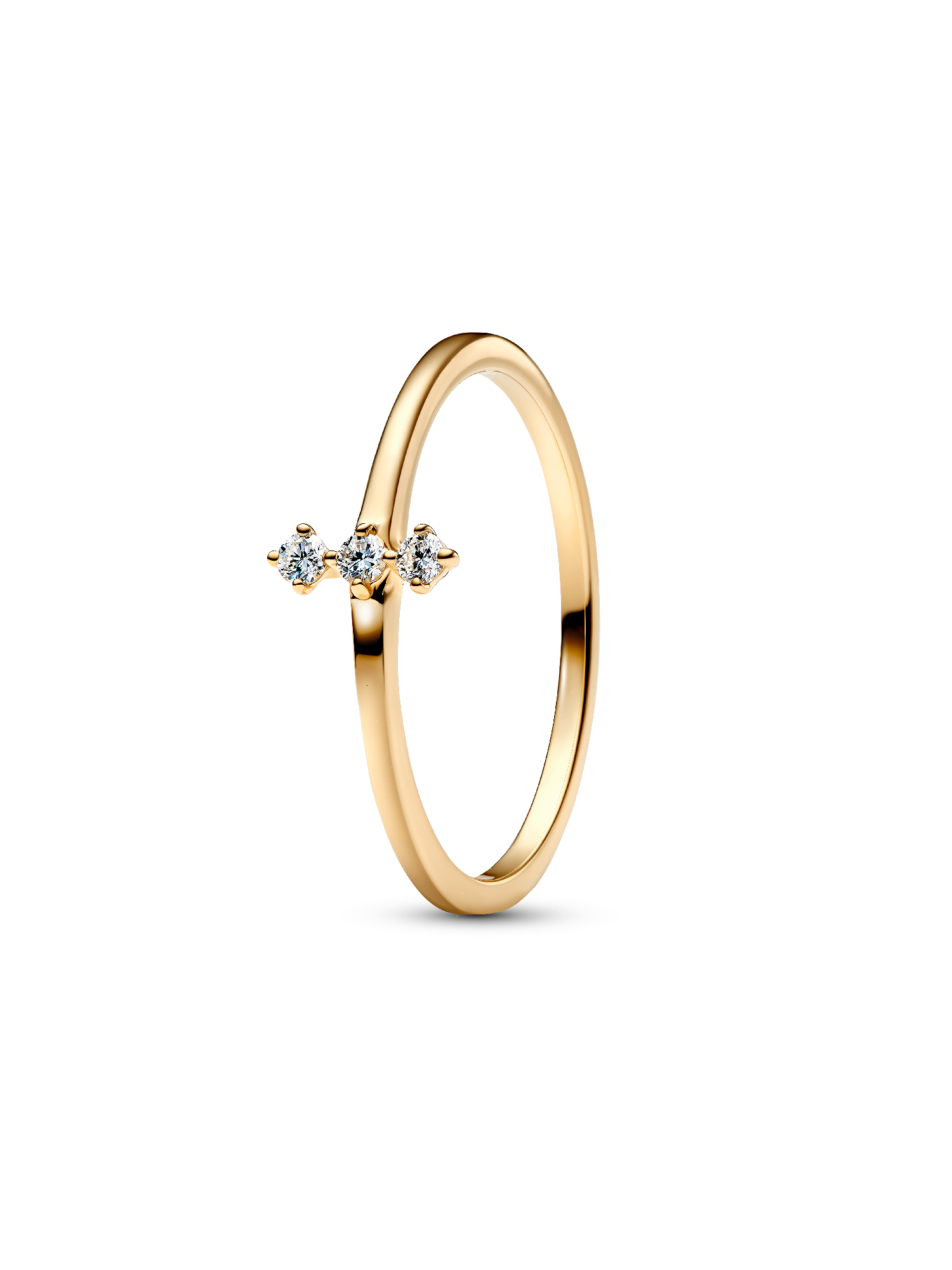 Shine in our Pandora Era Lab-Grown Diamond Trio Ring, crafted from 14k gold and featuring three prong-set lab-grown diamonds, aligned vertically to create a unique design. This elegant ring embodies a delicate aesthetic. It pairs perfectly with other Pandora Era ring designs, especially the Pandora Era Bezel Lab-Grown Diamond Open Ring.