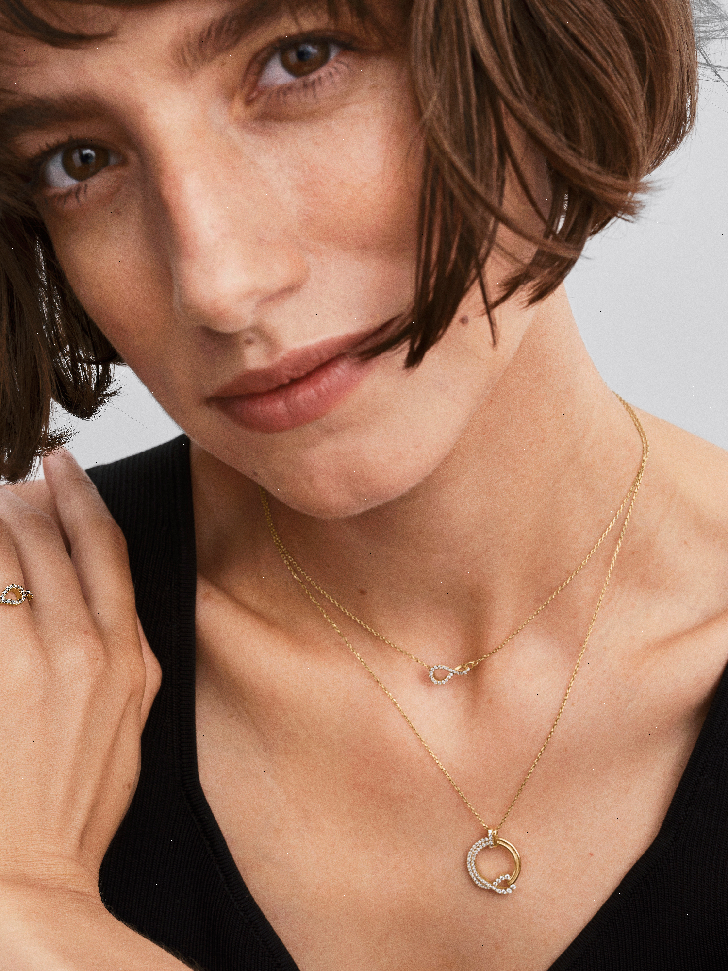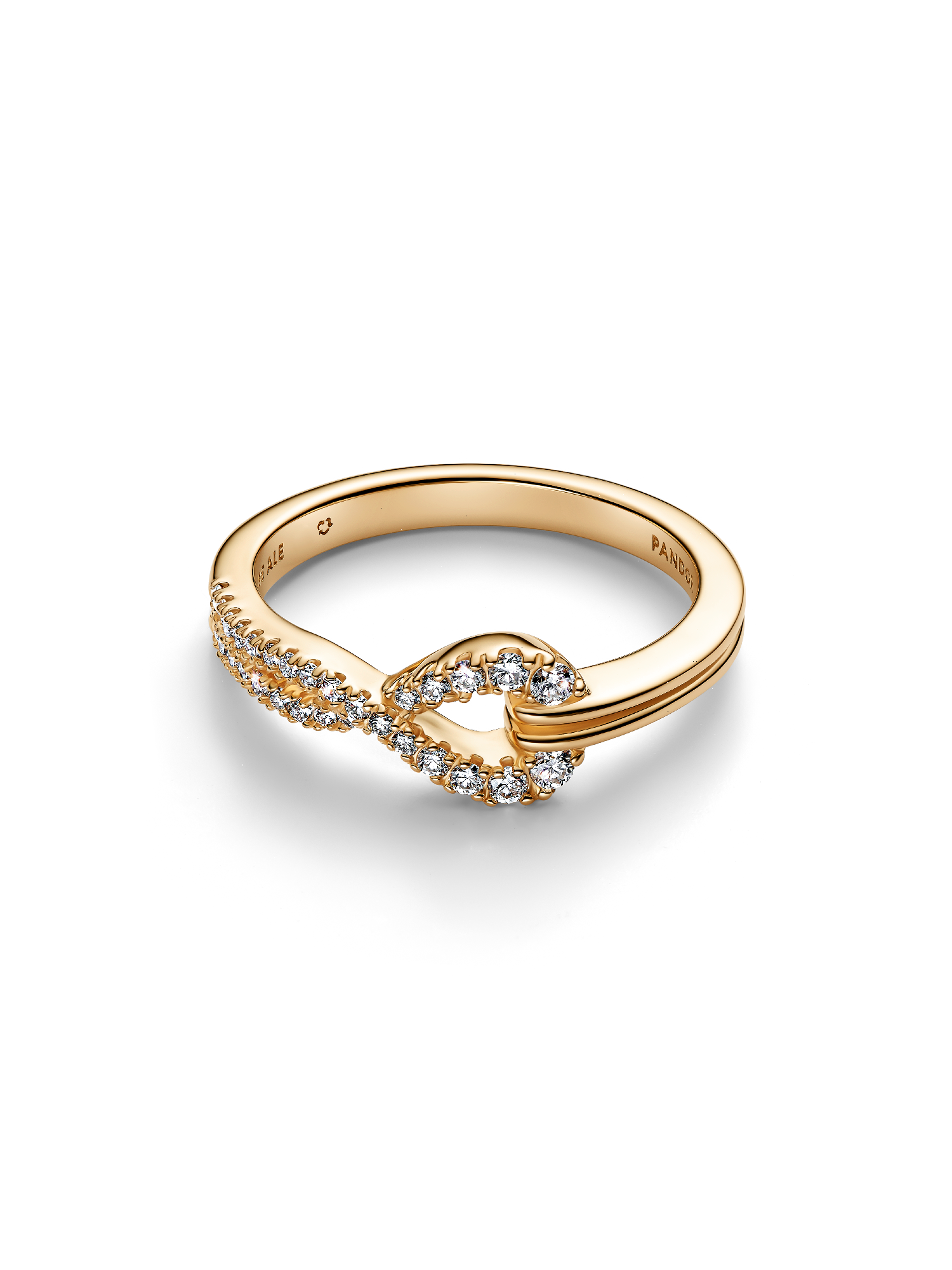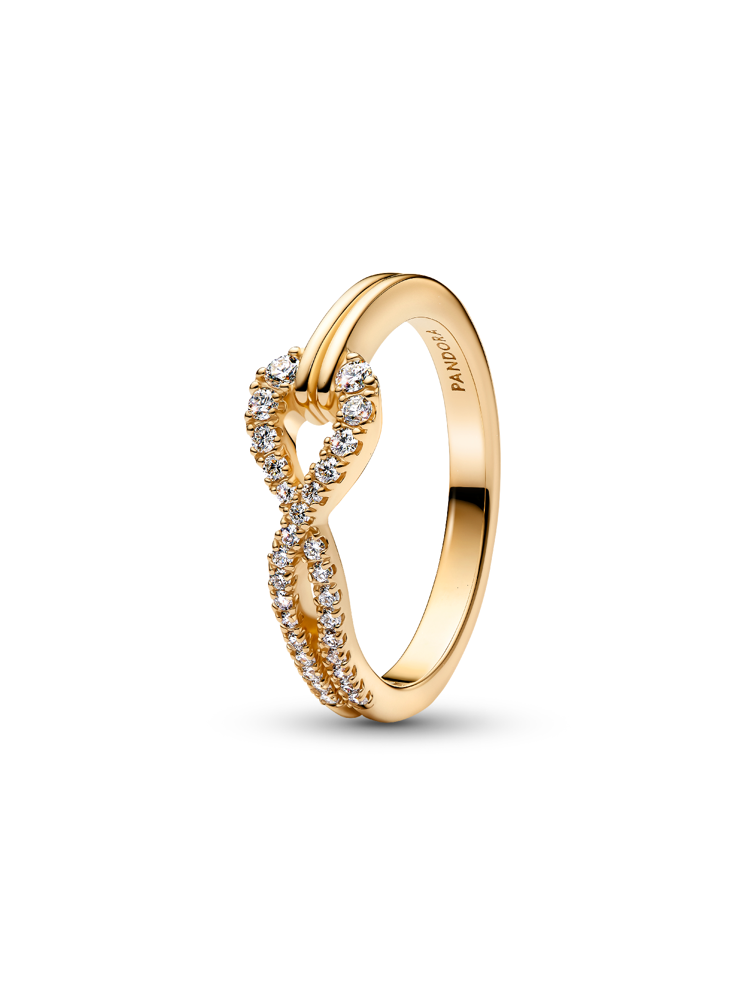 Feel the brilliance of lab-grown diamonds in this sleek, modern ring, inspired by the infinity symbol and featuring delicate pavé on one half of the shank.