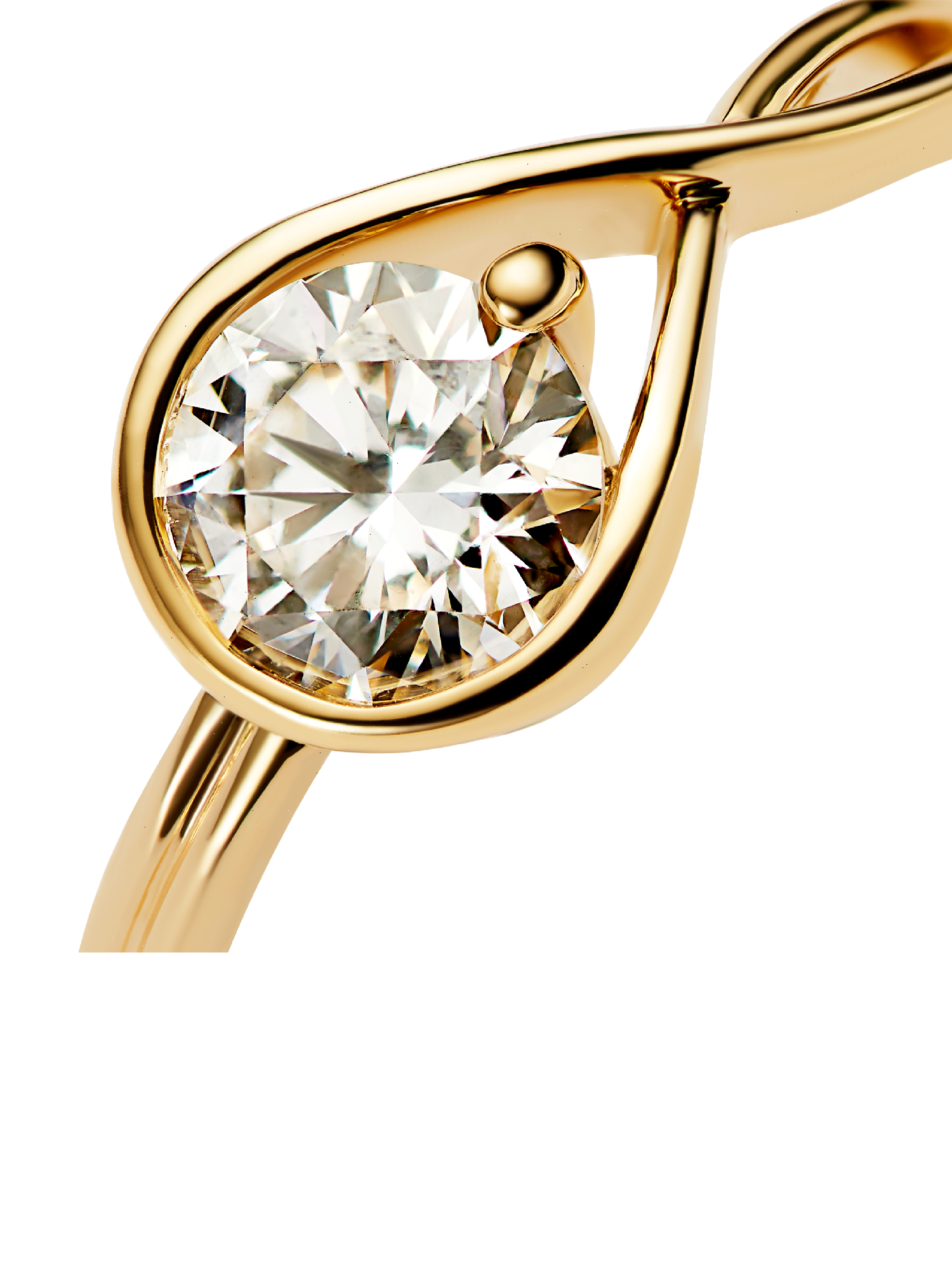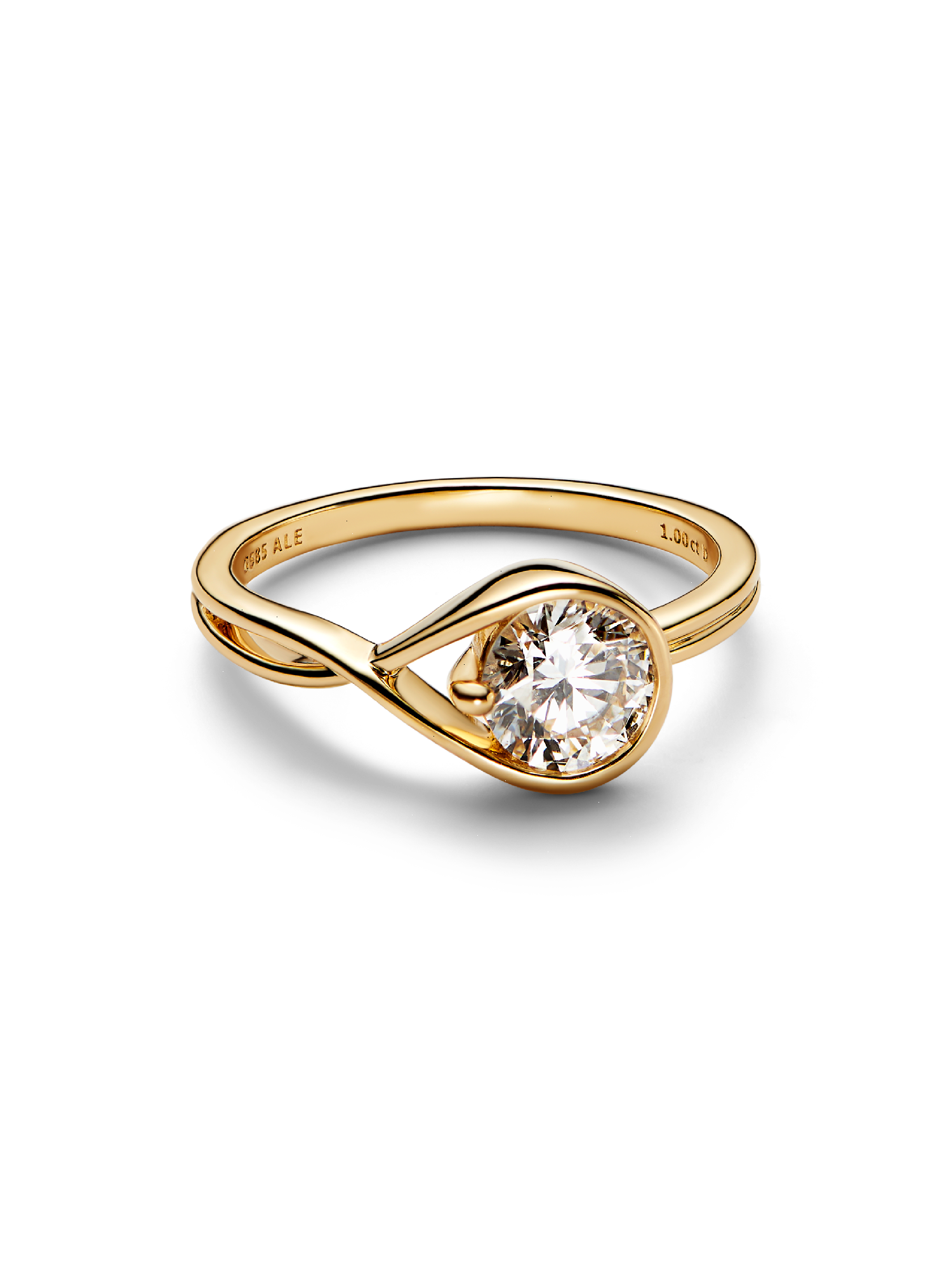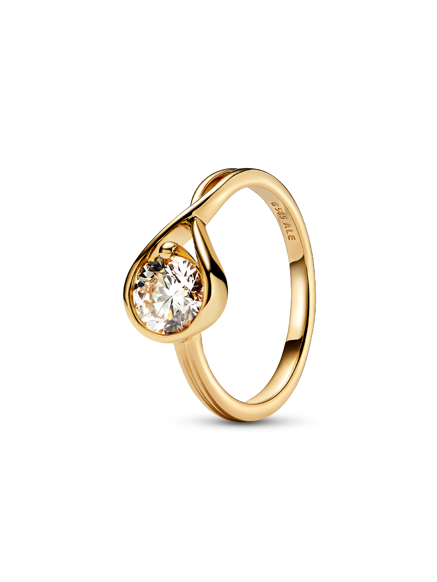 A solid 14k yellow gold ring hand set with a 1.00 carat lab-grown diamond. A beautiful statement of empowerment and possibility, or a simple yet eloquent declaration of love. This ring features a scintillating round brilliant excellent cut lab-grown diamond in a modern infinity setting that flows seamlessly around the stone. It can be worn alone or stacked with other rings from the Pandora Infinite collection. Pandora Infinite lab-grown diamonds at and above 0.50 carat are certified by IGI. Each Pandora Lab-grown diamond is treated with a post-growth colour enhancement called annealing.