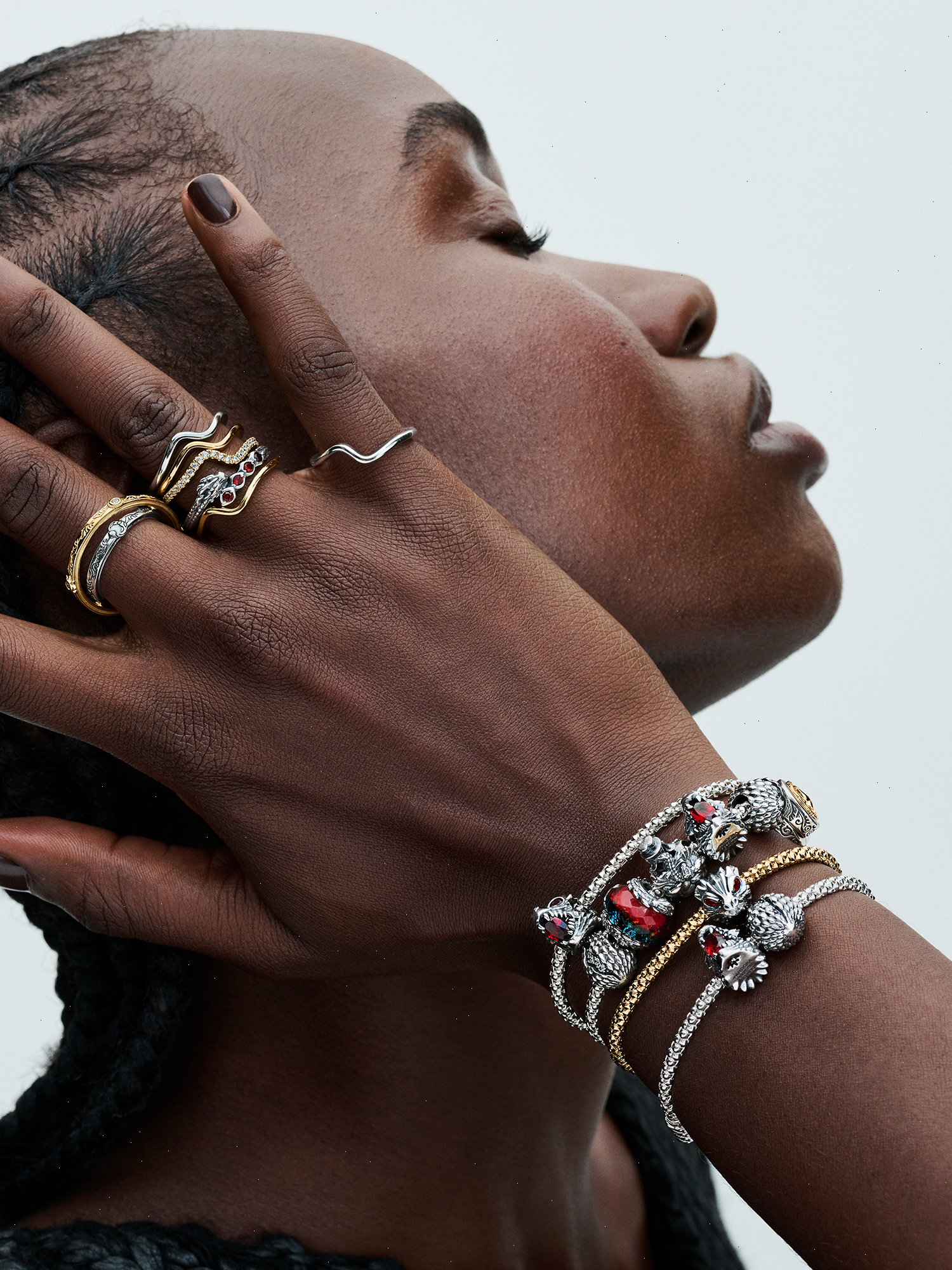 Style with up to 15–20 charms, but if you plan on wearing more than 5 charms, choose the next size up to ensure that there’s enough room between the charms and your wrist.