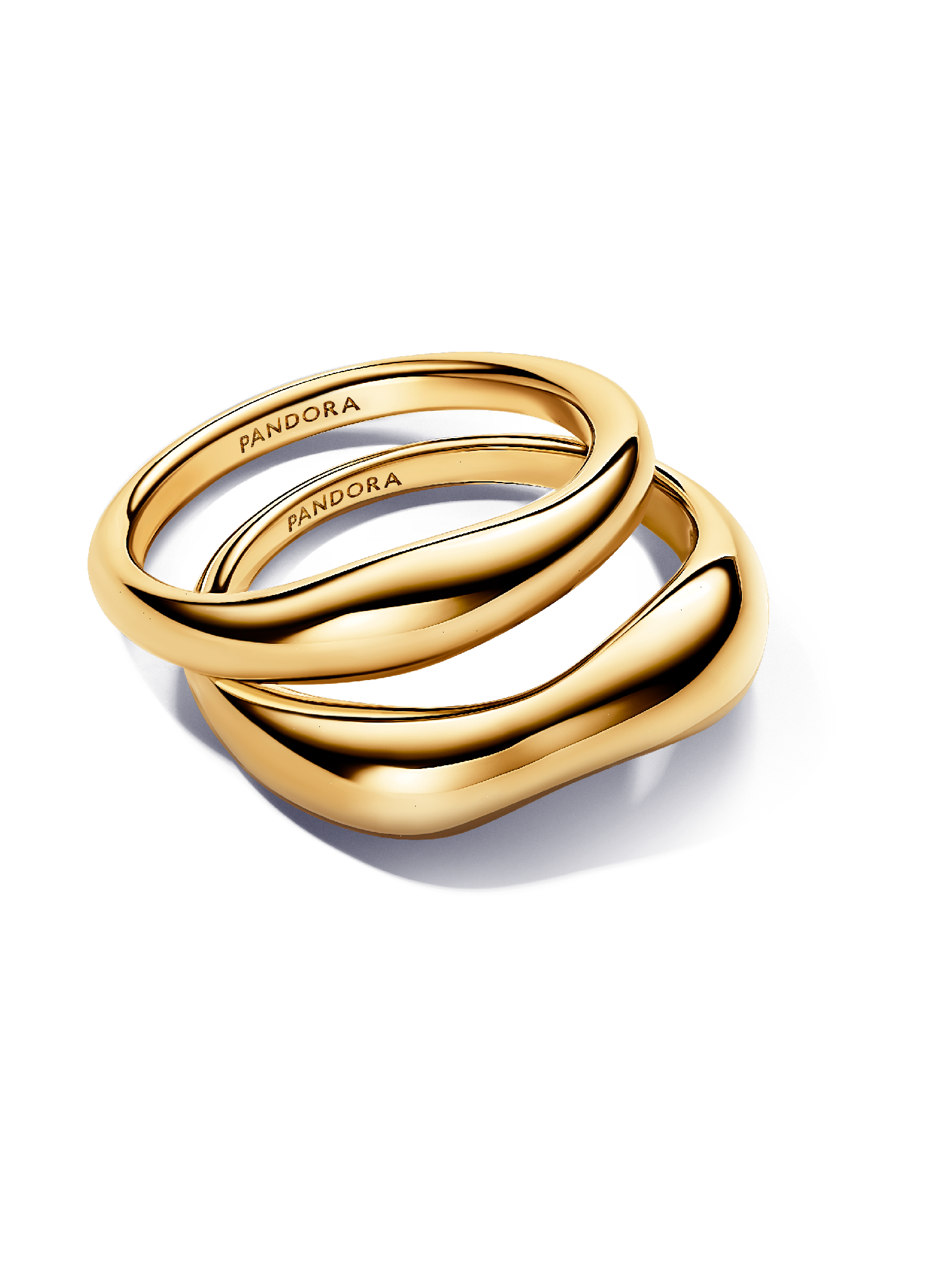 Elevate your day-to-day look with the Organically Shaped Stacking Rings. This set of two 14k gold-plated rings features organically-shaped bands with a natural look created by varied thickness, protruding areas and a slightly convex shape. When stacked together, the intentional variations in the two bands create interesting gaps between them. Whether you style them together or separately, this pair of 14k gold-plated stacking rings is a must-have for any ring lover's collection.