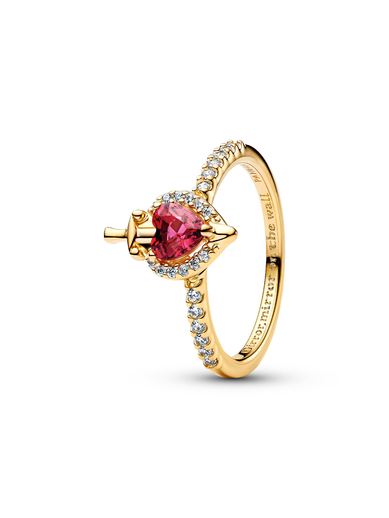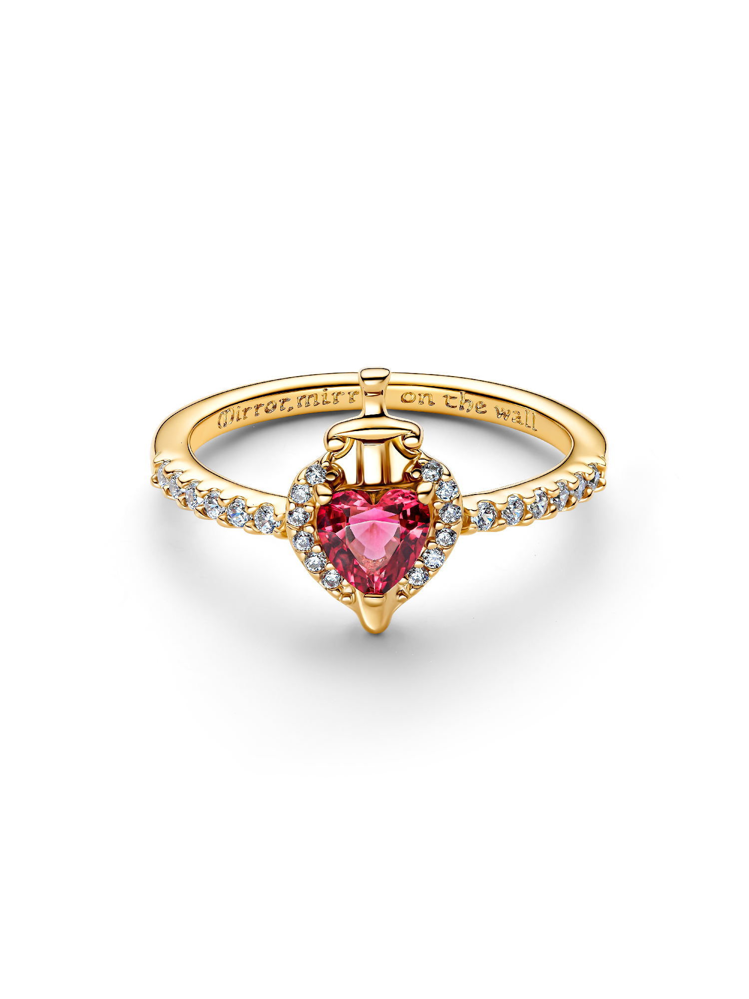 Wear your dark side with pride. Set with a heart-shaped fuchsia rose man-made crystal, this ring channels the Evil Queen from Disney’s Snow White.