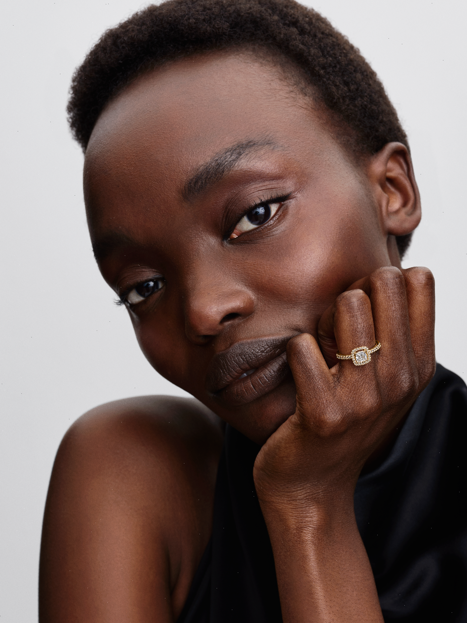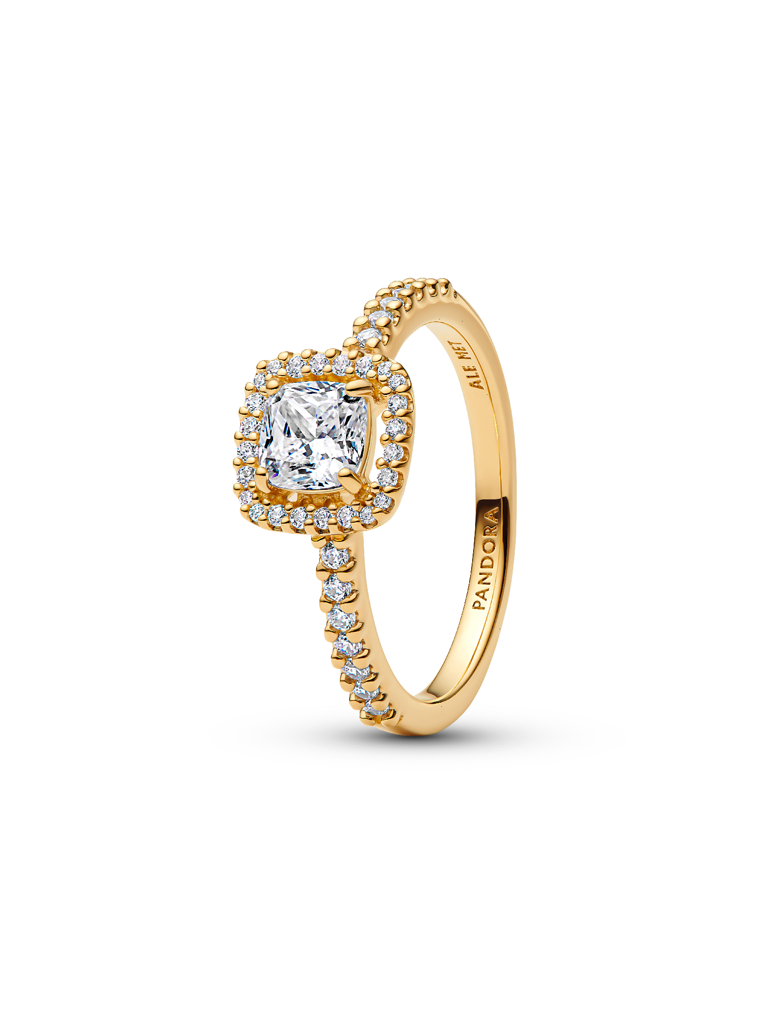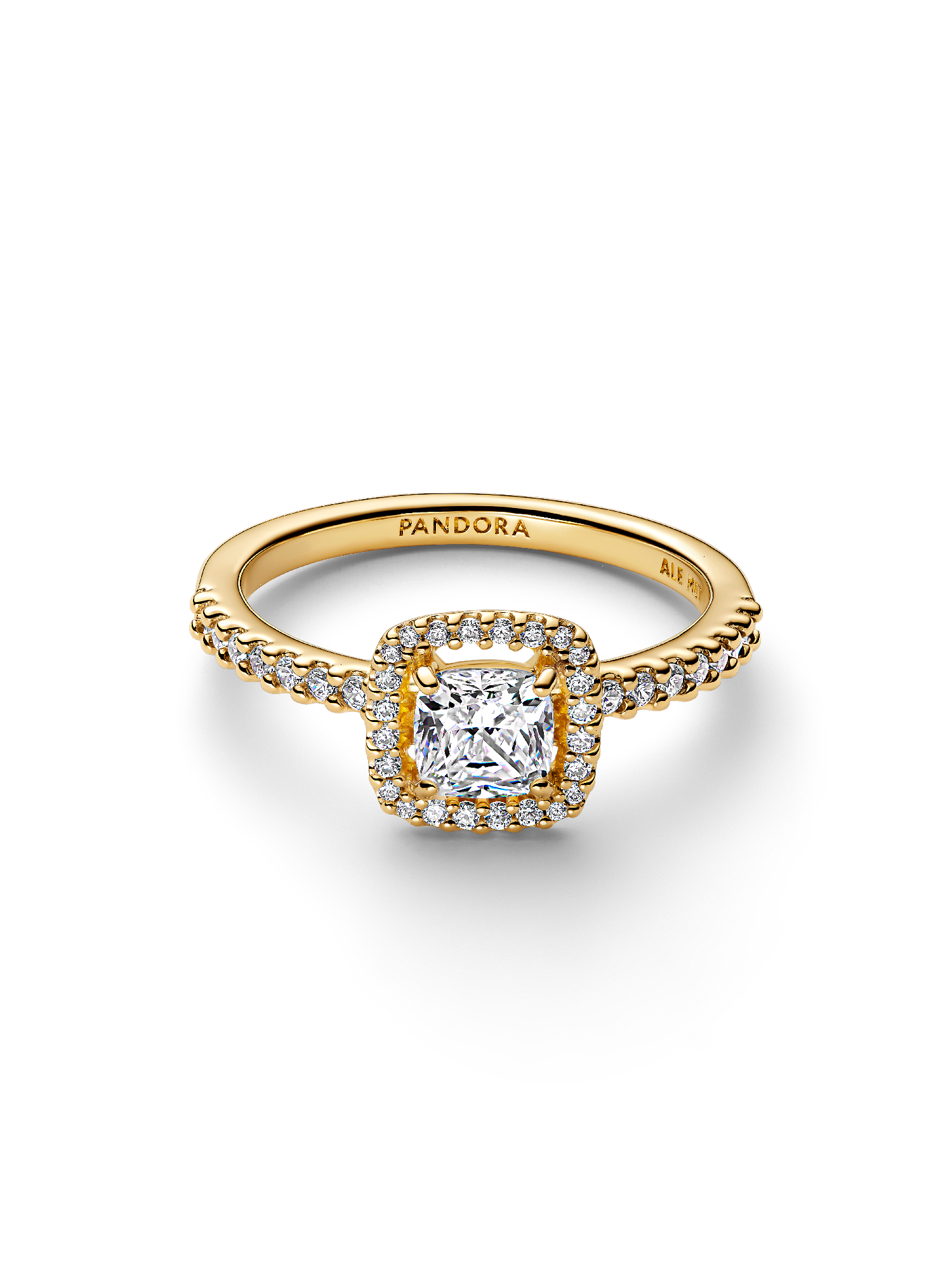 Add sparkle to your stack with this 14k gold-plated ring from Pandora Timeless, featuring square-cut clear cubic zirconia, a pavé halo and band. A modern twist on tradition, made to make you shine brighter in your everyday.