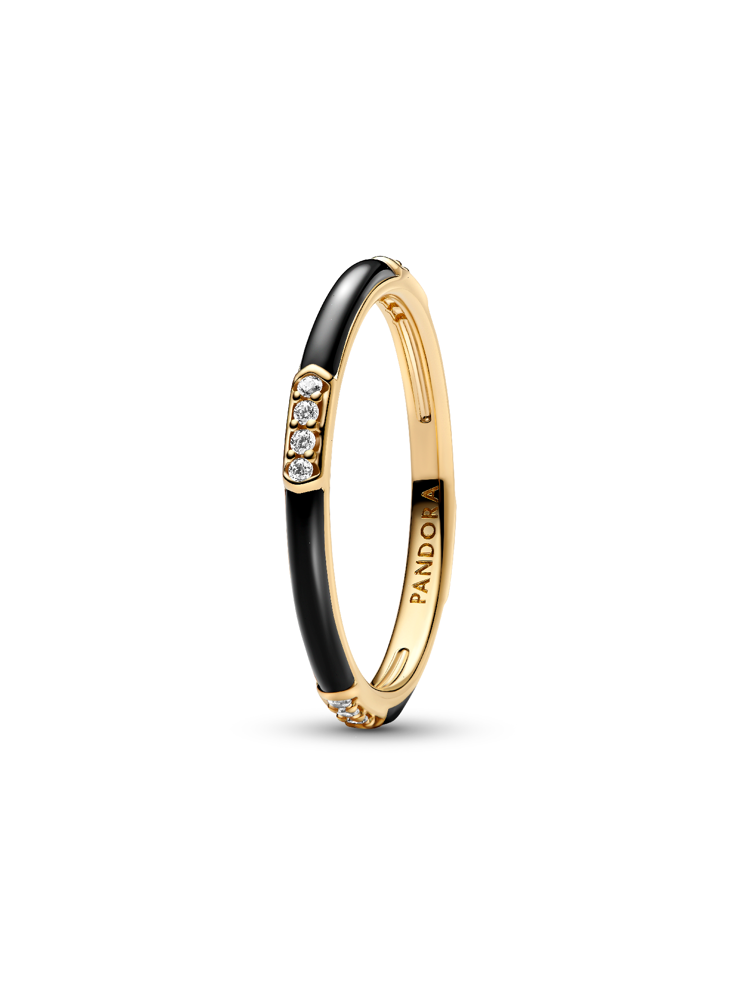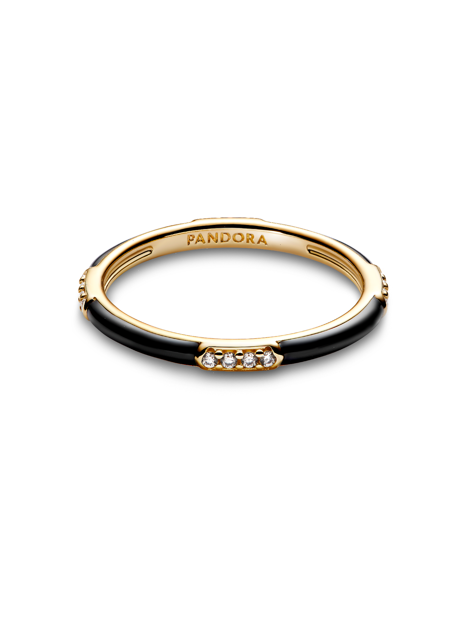 Crafted from a 14k gold-plated unique metal blend, this statement ring features 16 bead-set round brilliant-cut cubic zirconia, set against sleek black enamel. The design showcases alternating bands of sparkling stones and enamel, which creates an eye-catching contrast. Inspired by strength and resilience, this ring is perfect for expressing your individuality.