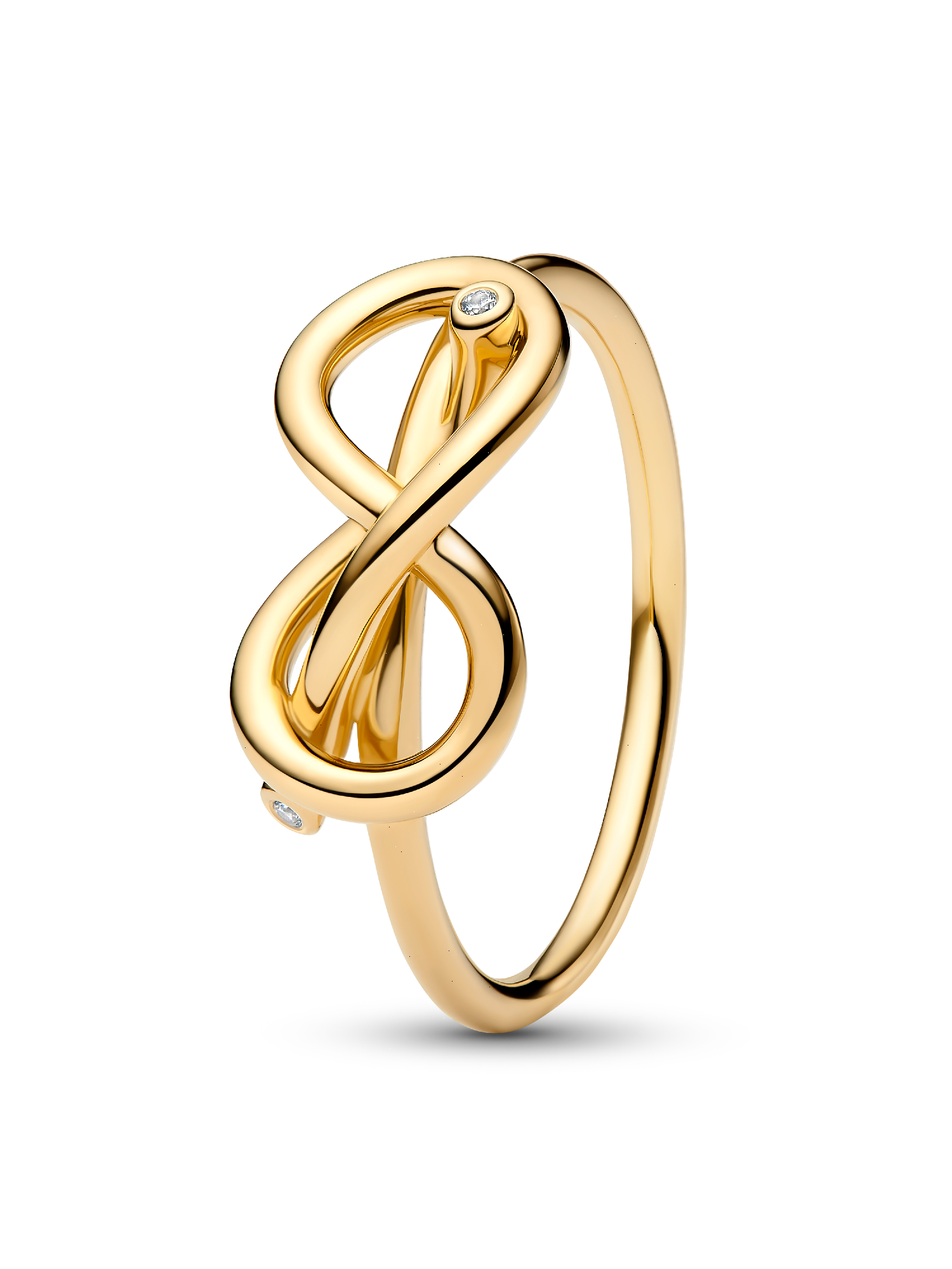 Bring a symbol of the infinite into the everyday with the Infinity Knot Ring. Hand-finished in 14k gold plating, this ring centers on an infinity knot symbol featuring a sparkling stone at each end. Sleek and delicate, this ring easily goes from casual daytime wear to bold evening looks – bringing with it all its symbolism of eternal love and the interconnectedness of all beings. A simple piece with endless potential.