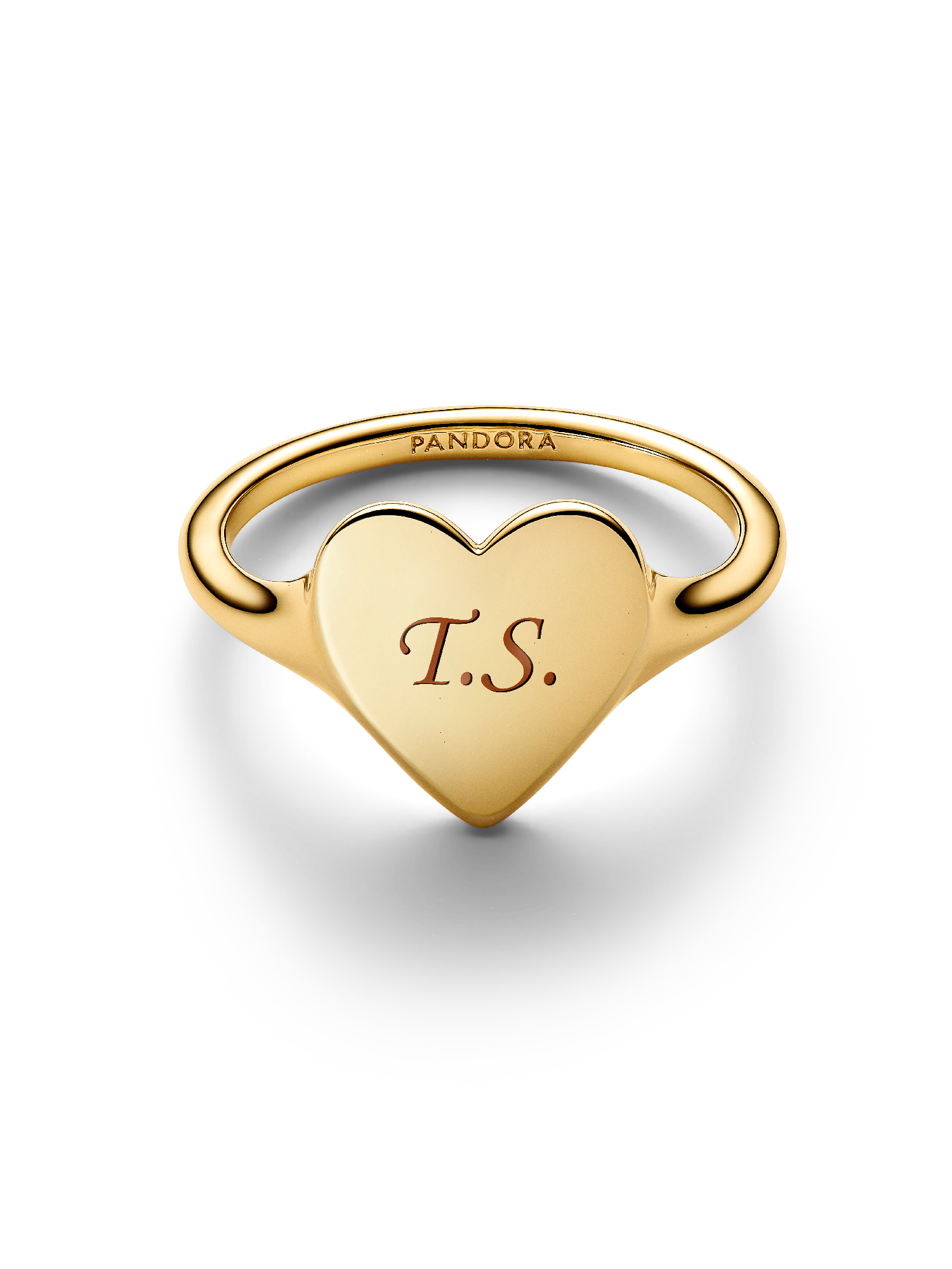 Celebrate love and connection with our 14k gold-plated heart-shaped ring, ready to engrave with a meaningful message.