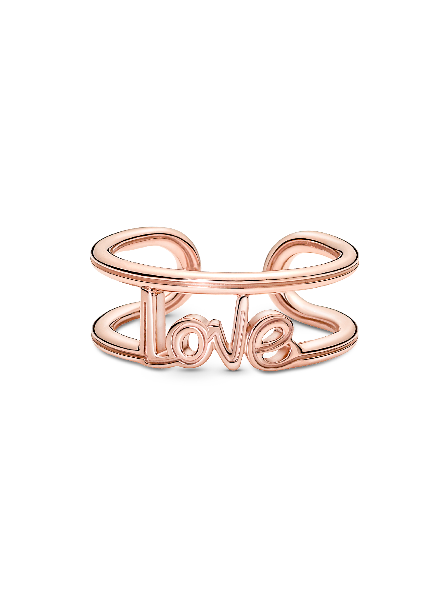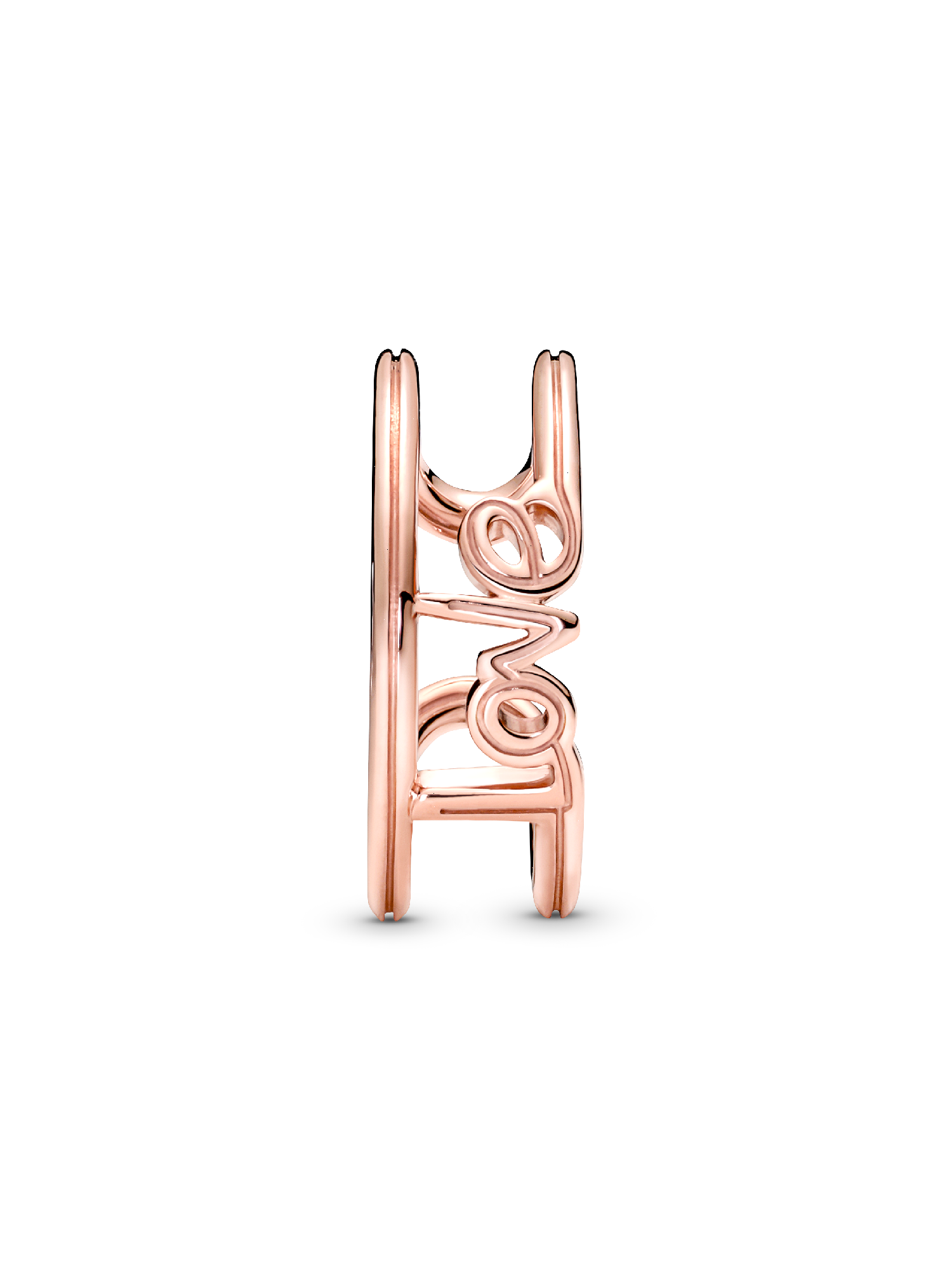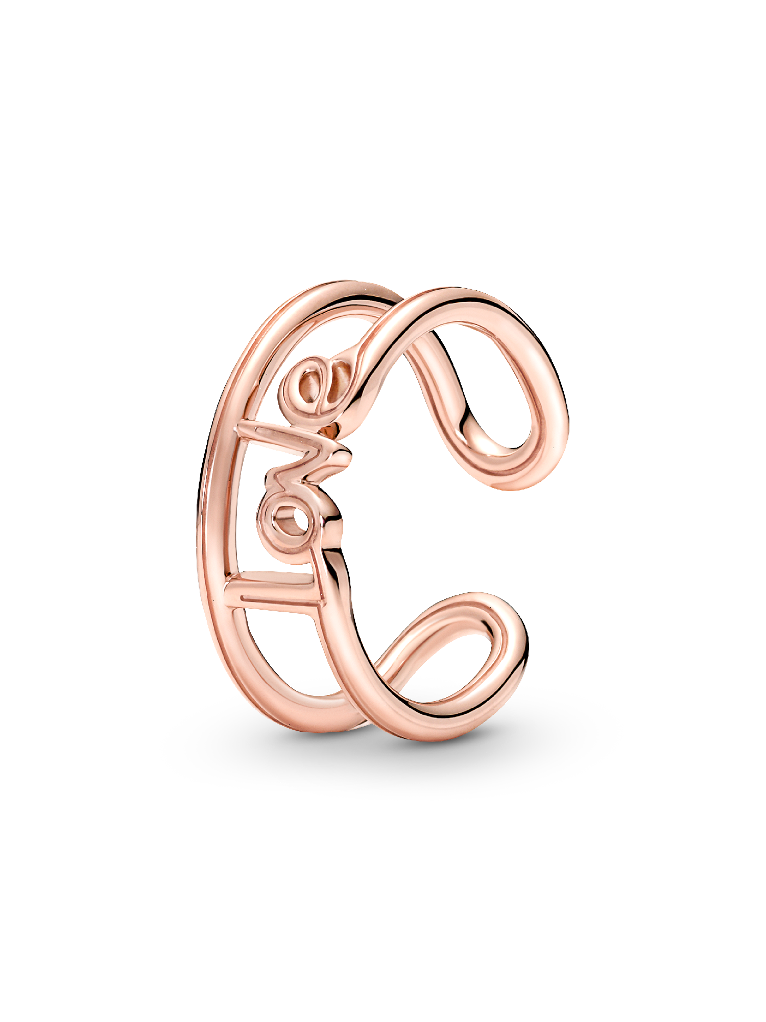 Wear your love loud and proud everywhere you go with this Pandora ME Love Open Ring. Hand-finished, this 14k rose gold-plated link is emblazoned with the word “love” in a handwritten font on a continuous line design that leads into the ring band. Style yours to represent the love for your family, your best friends, or your love for yourself. Add significance to your looks by adding this statement ring into your everyday stacks. Please note: attempting to reshape the open band yourself will damage your ring.