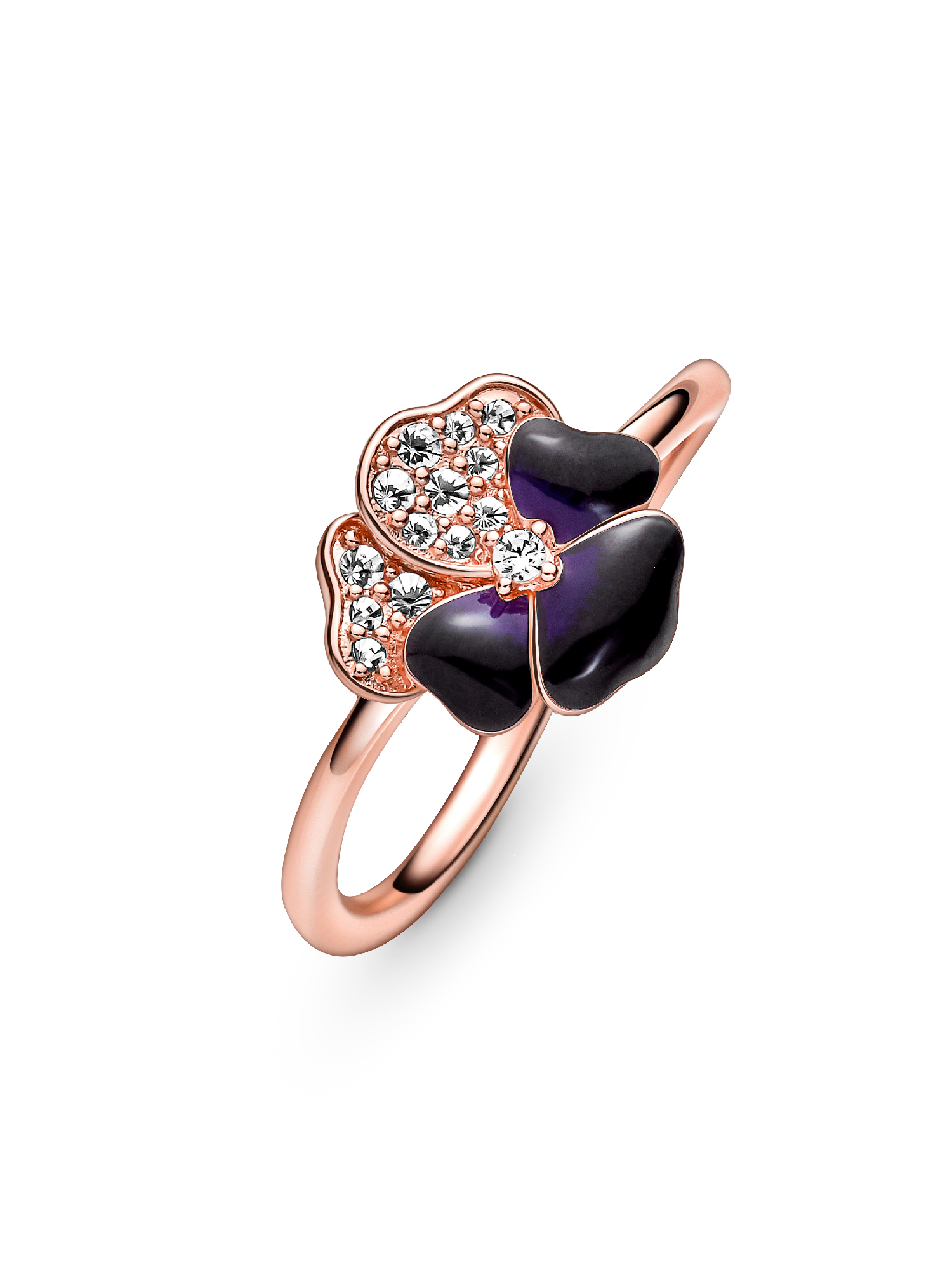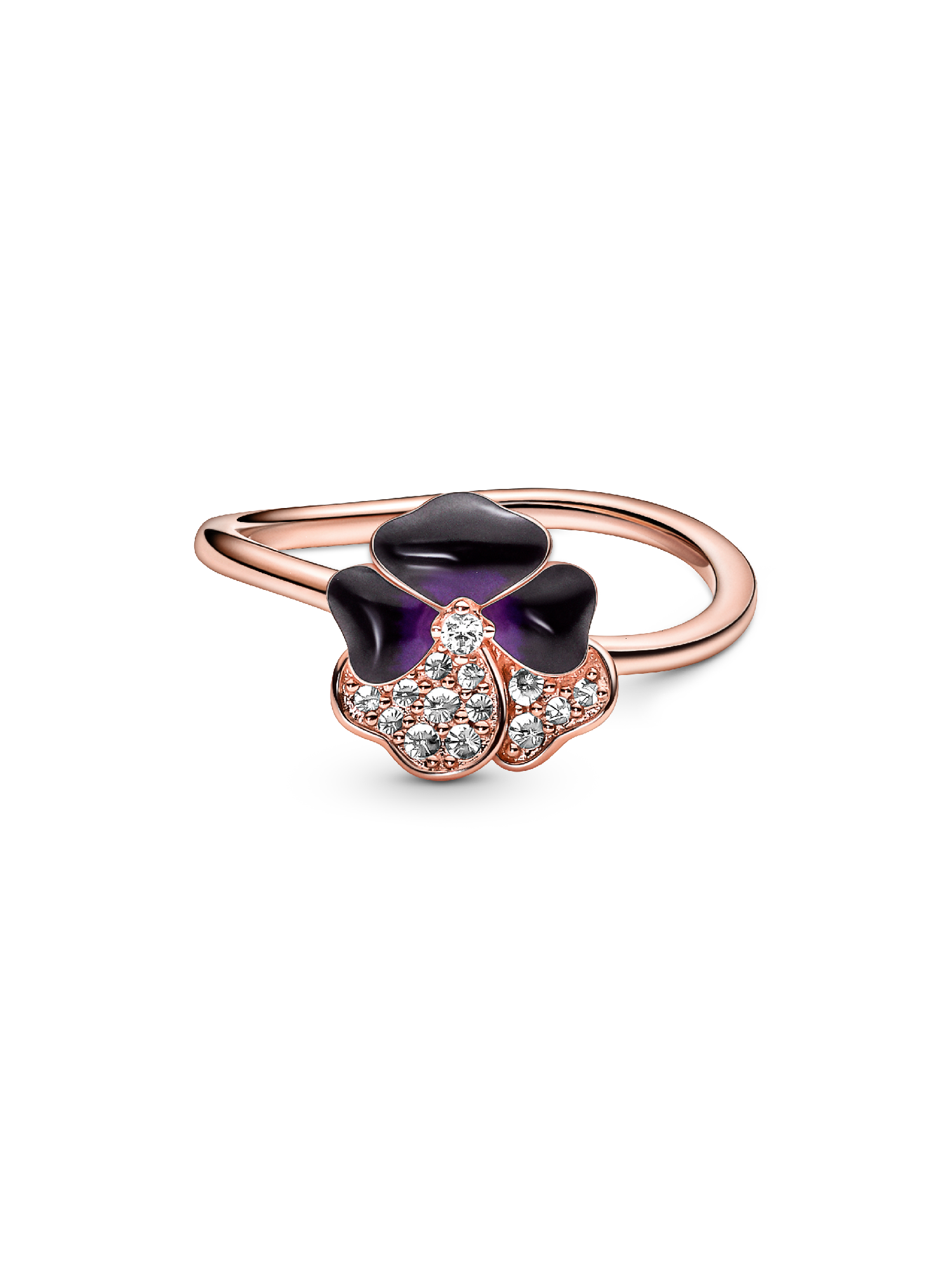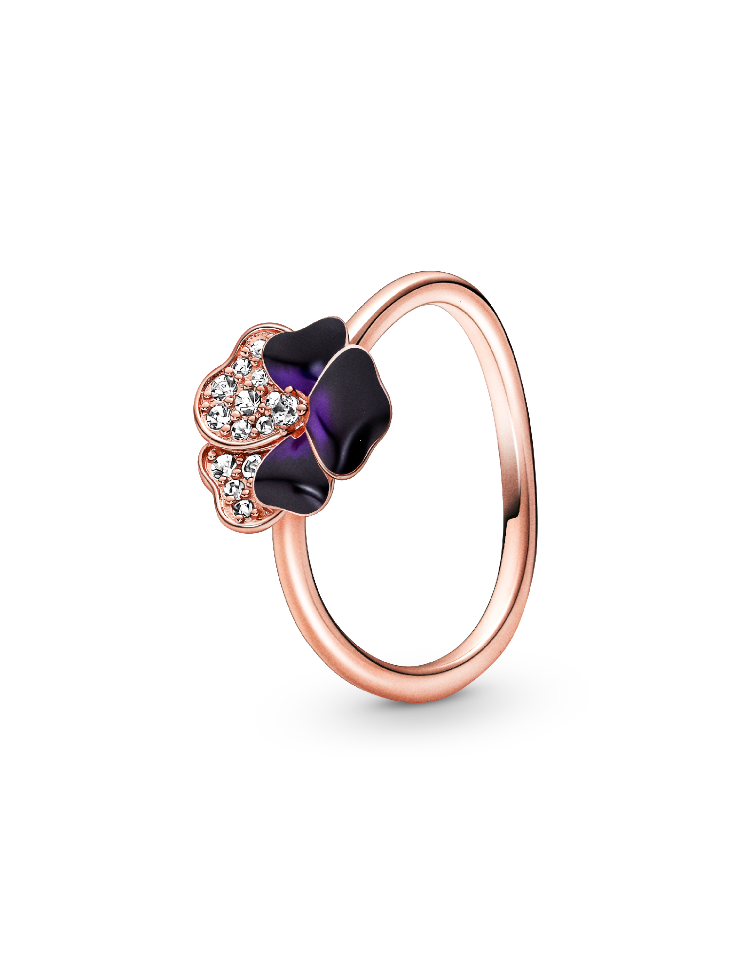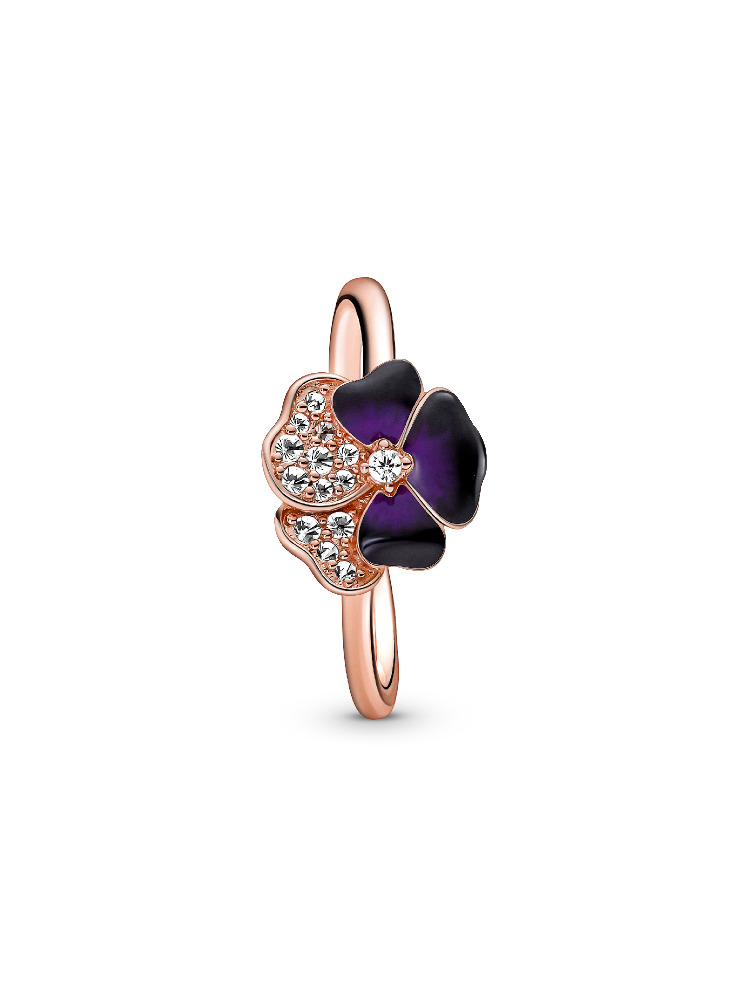Turn up the flower power in our Deep Purple Pansy Flower Ring. Set in 14k rose gold plating, our pansy features two petals covered in sparkling pavé and three petals hand-painted in rich enamel, making every flower completely unique. An organically shaped band mimics a real stem and evokes the freedom of spring. The newest flower to grace our garden, pansies symbolize love in its many forms. Wear yours as a reminder of all the loved ones in your life.