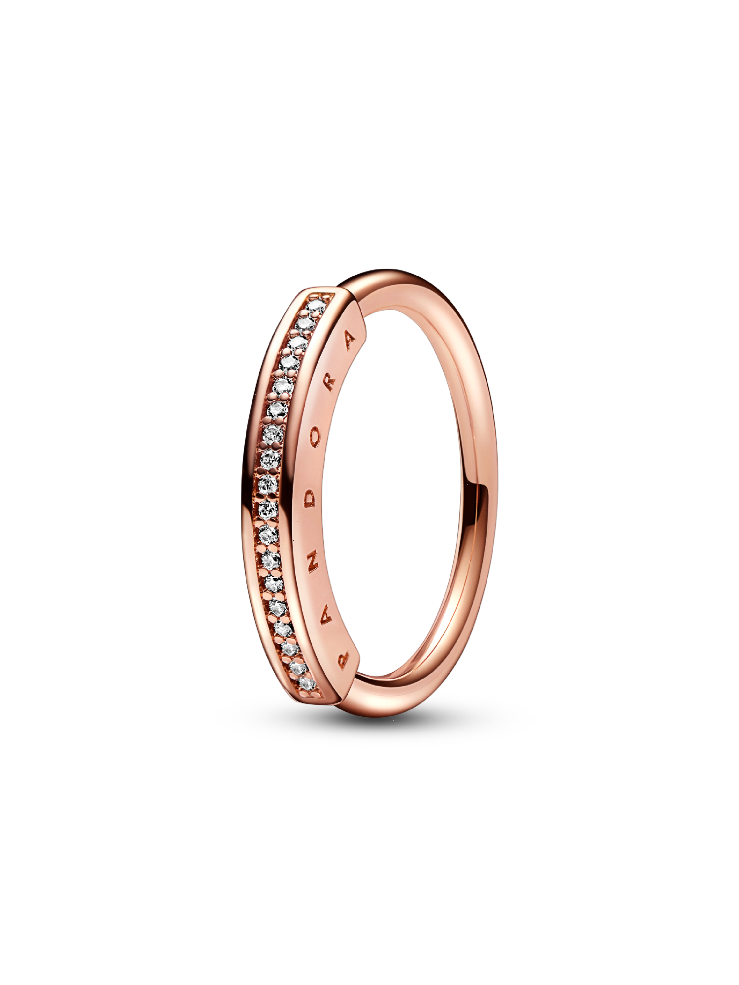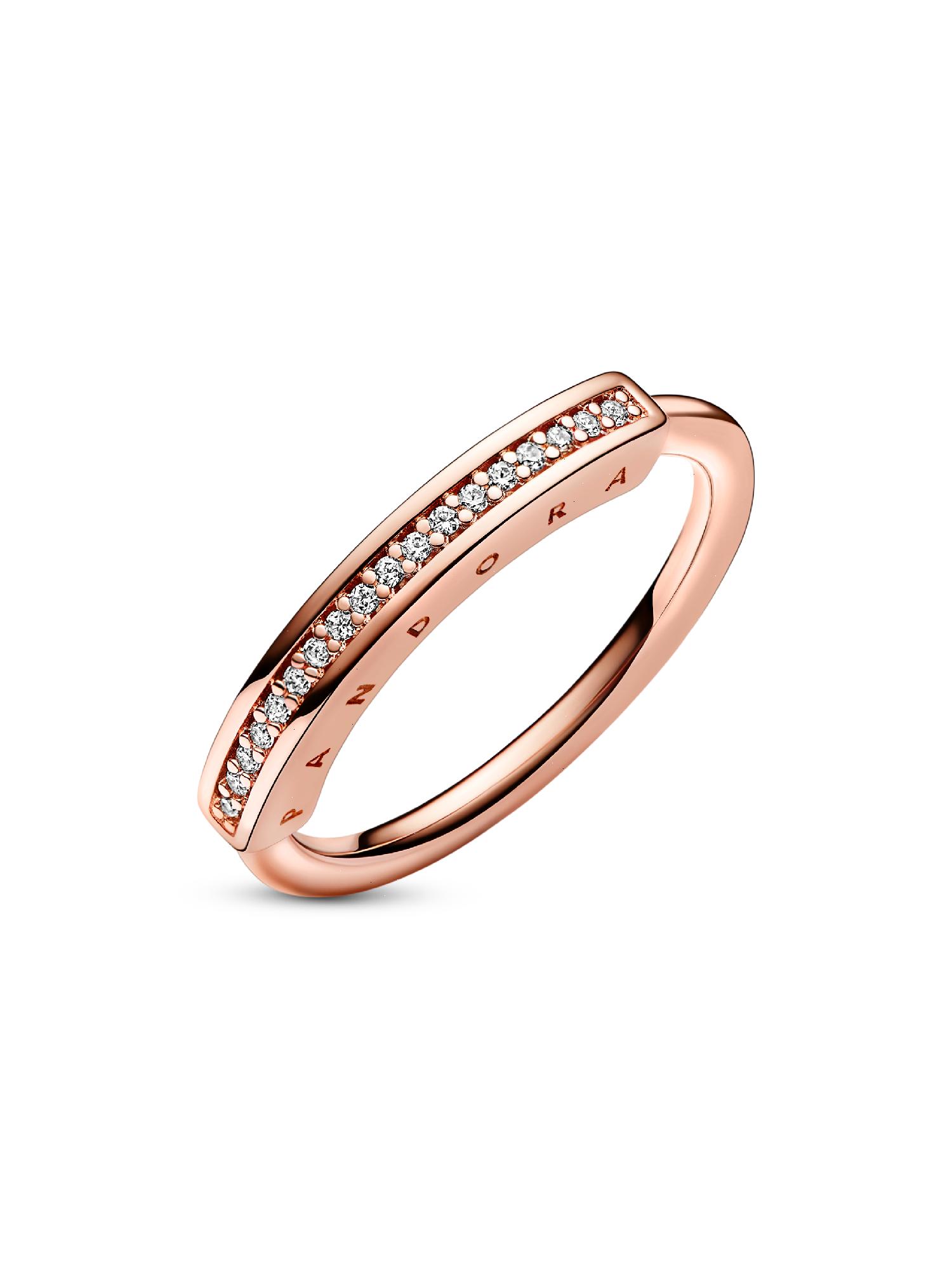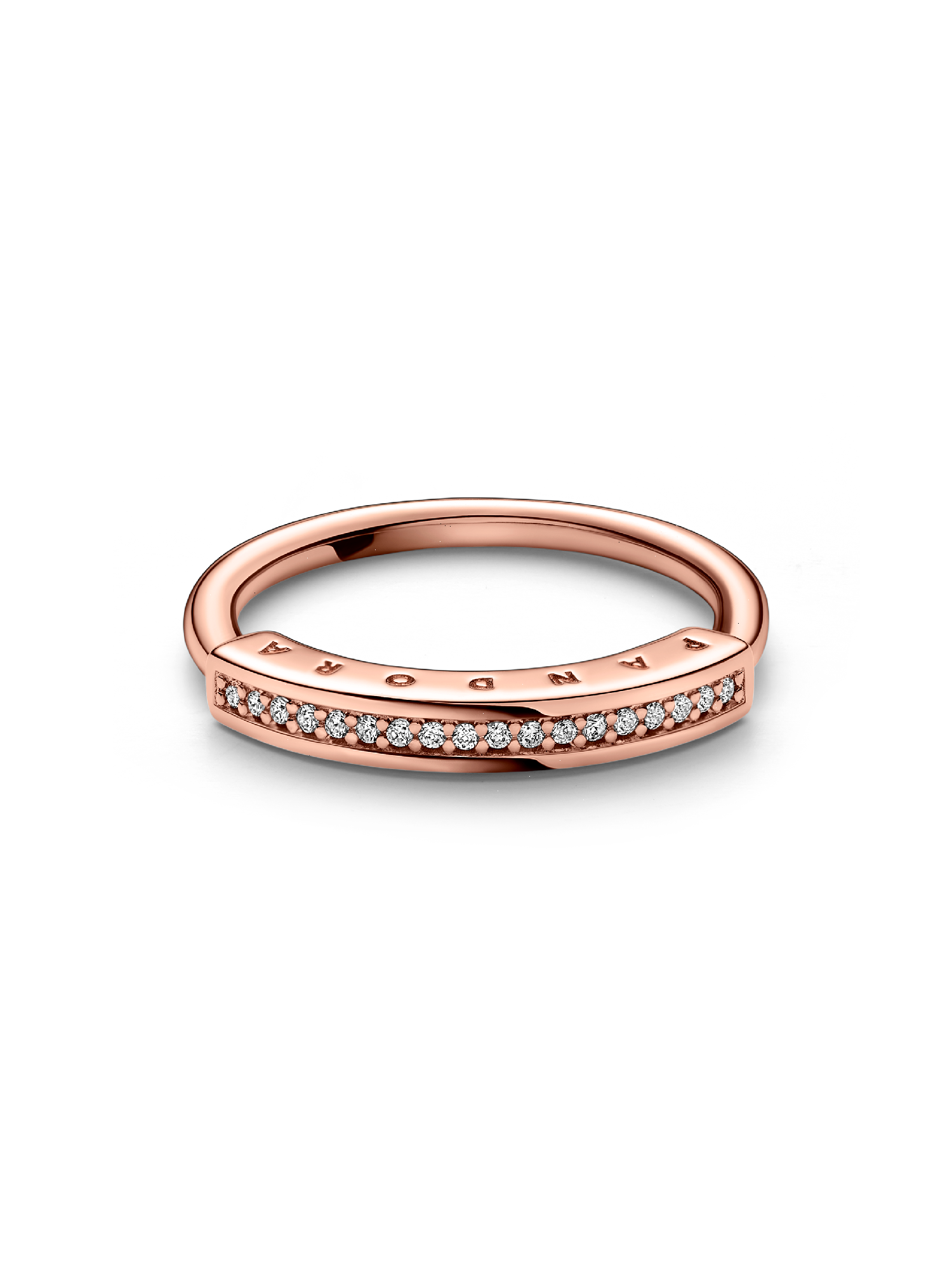 Add a touch of sparkling sophistication to your look with the Pandora Signature I-D Pavé Ring. Hand-finished with 14k rose gold plating, this architectural piece features an iconic round-and-square profile, complemented by a row of pavé. Wear it as an elegant statement piece or pair with the sterling silver version for an elevated stack.