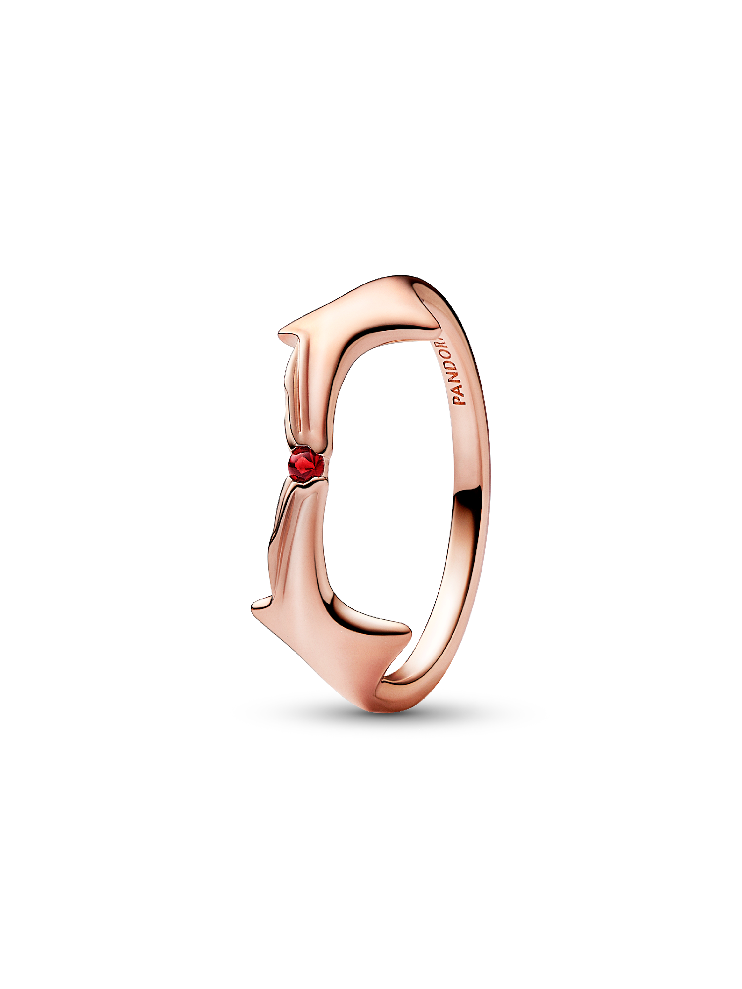 Be charmed by the chaos with the MARVEL Scarlet Witch Ring crafted in our 14k rose gold-plated unique metal blend. Shaped like Scarlet Witch's iconic headdress, the ring band features four pointers and has a red man-made crystal in the middle. Add the ring to your team of Marvel legends to balance the power between the good, the bad and the misunderstood or gift it to the Marvel fan in your life.