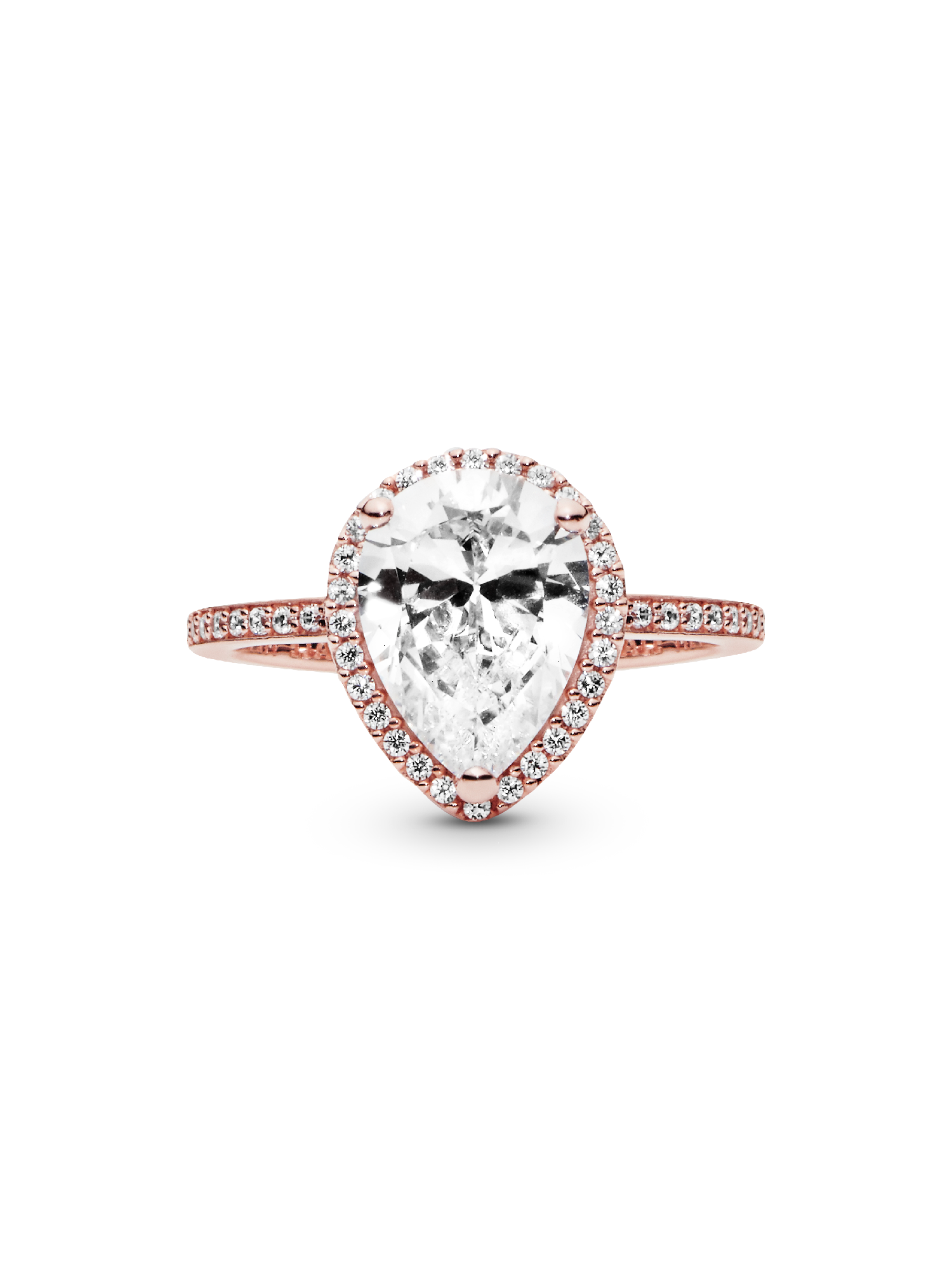 Inspired by vintage jewellery box treasures, this showstopping Sparkling Teardrop Halo Ring features 14k rose gold plating. It's set with a teardrop-shaped cubic zirconia for extra sparkle. A style to stand the test of time, the ring's pear-cut centrepiece is surrounded by smaller stones that continue around the band. Try stacking yours with ring bands in contrasting metals for a fresh take on a classic style.