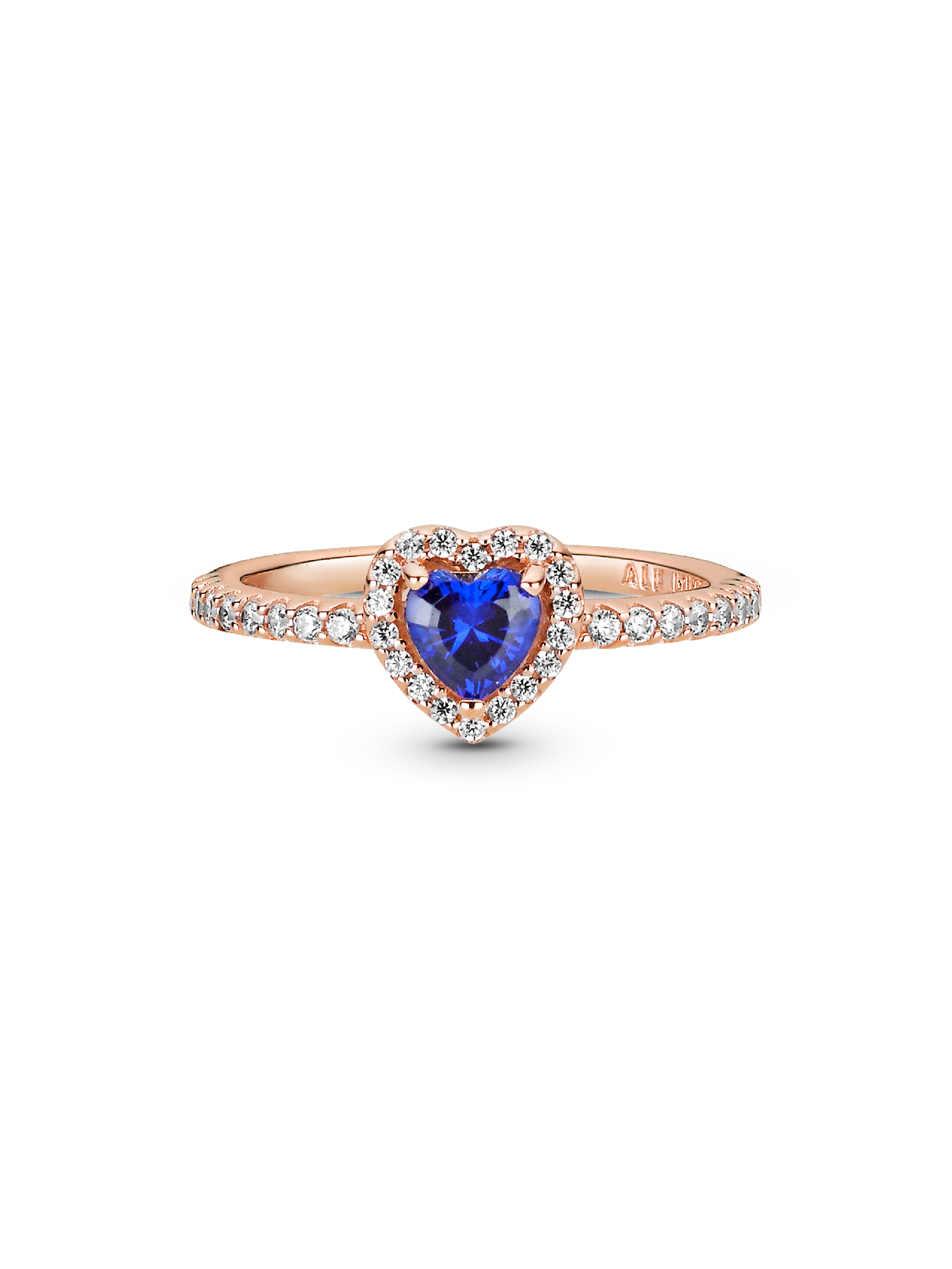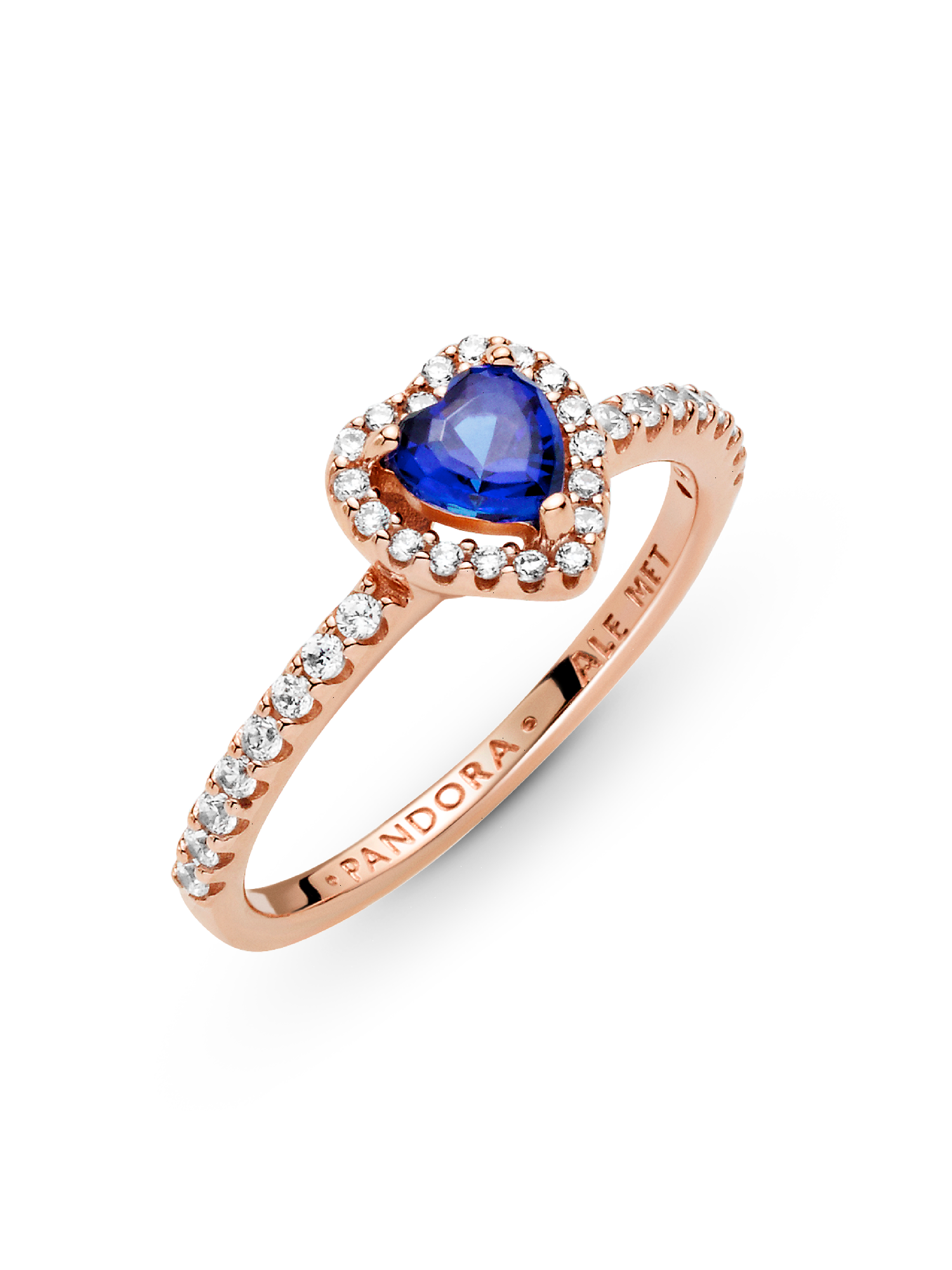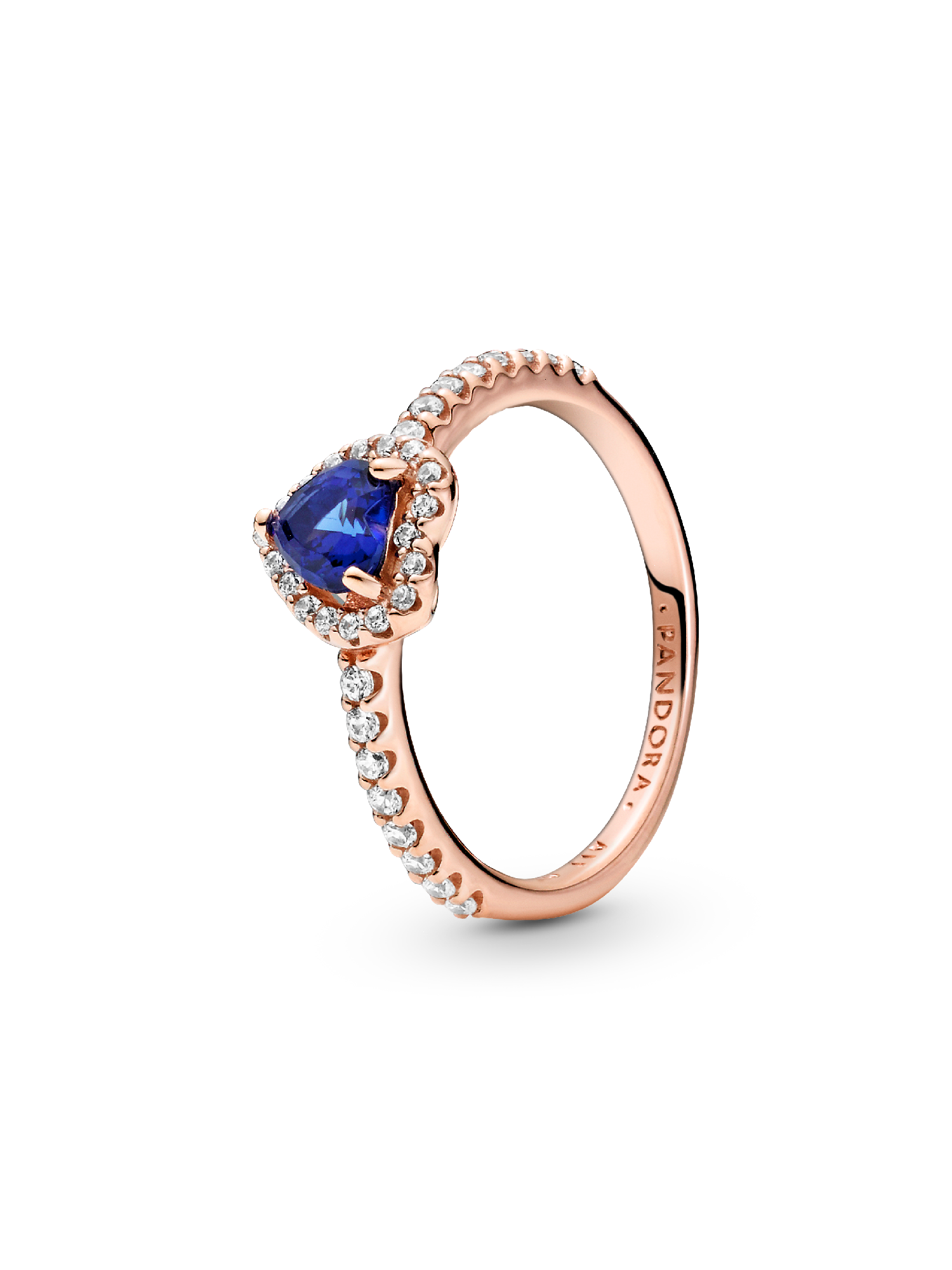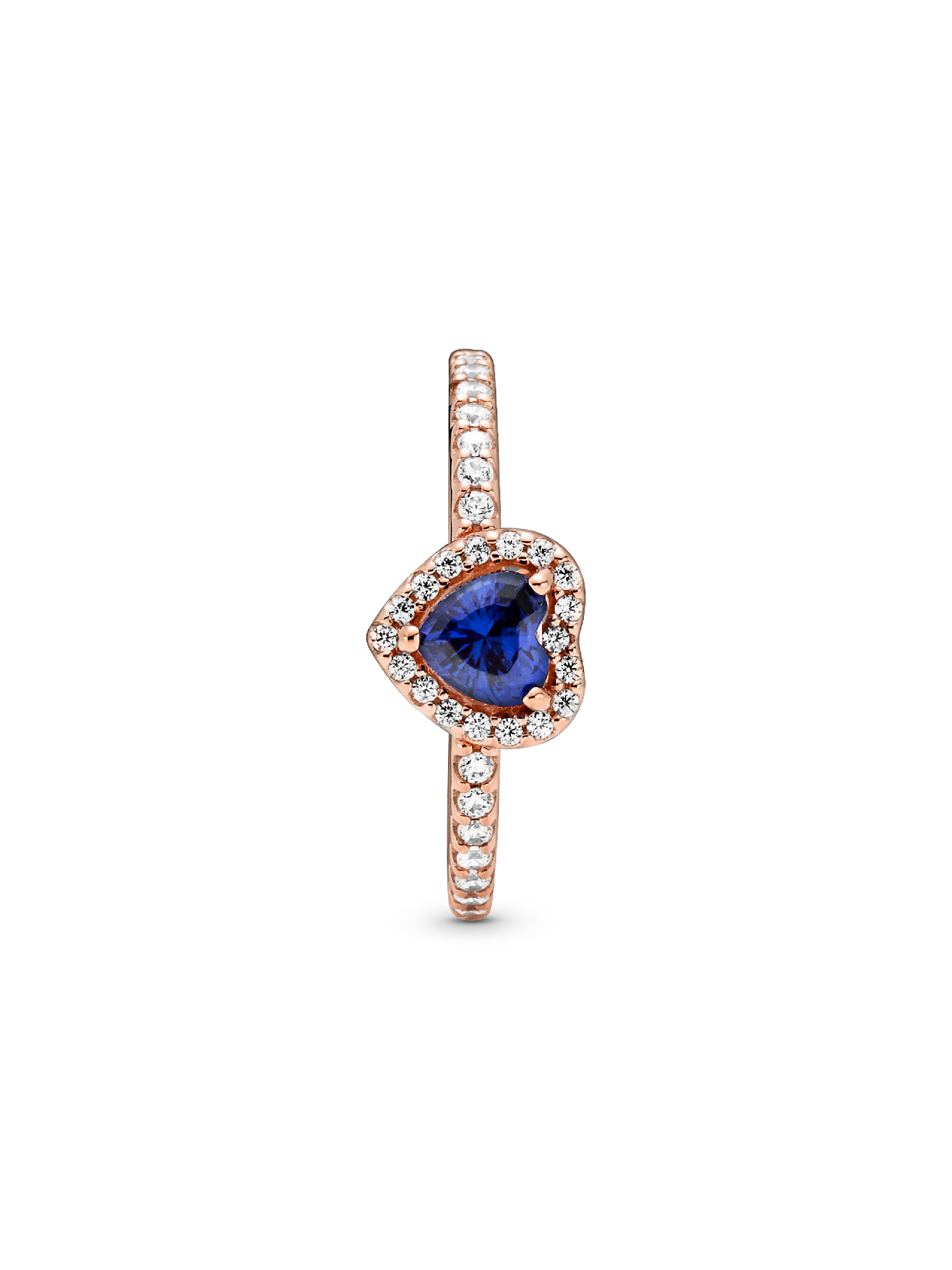 Add a sophisticated edge to your look with the Sparkling Blue Elevated Heart Ring. The ring draws inspiration from the classic Pandora Timeless collection. Hand-finished in 14k rose gold plating, this piece features a blue heart-shaped central, elevated stone. Clear cubic zirconia create the halo and decorate half of the ring band, with the Pandora logo on the inside of the shank. Stack this ring with hand-finished styles in sterling silver for a statement mixed metal look.