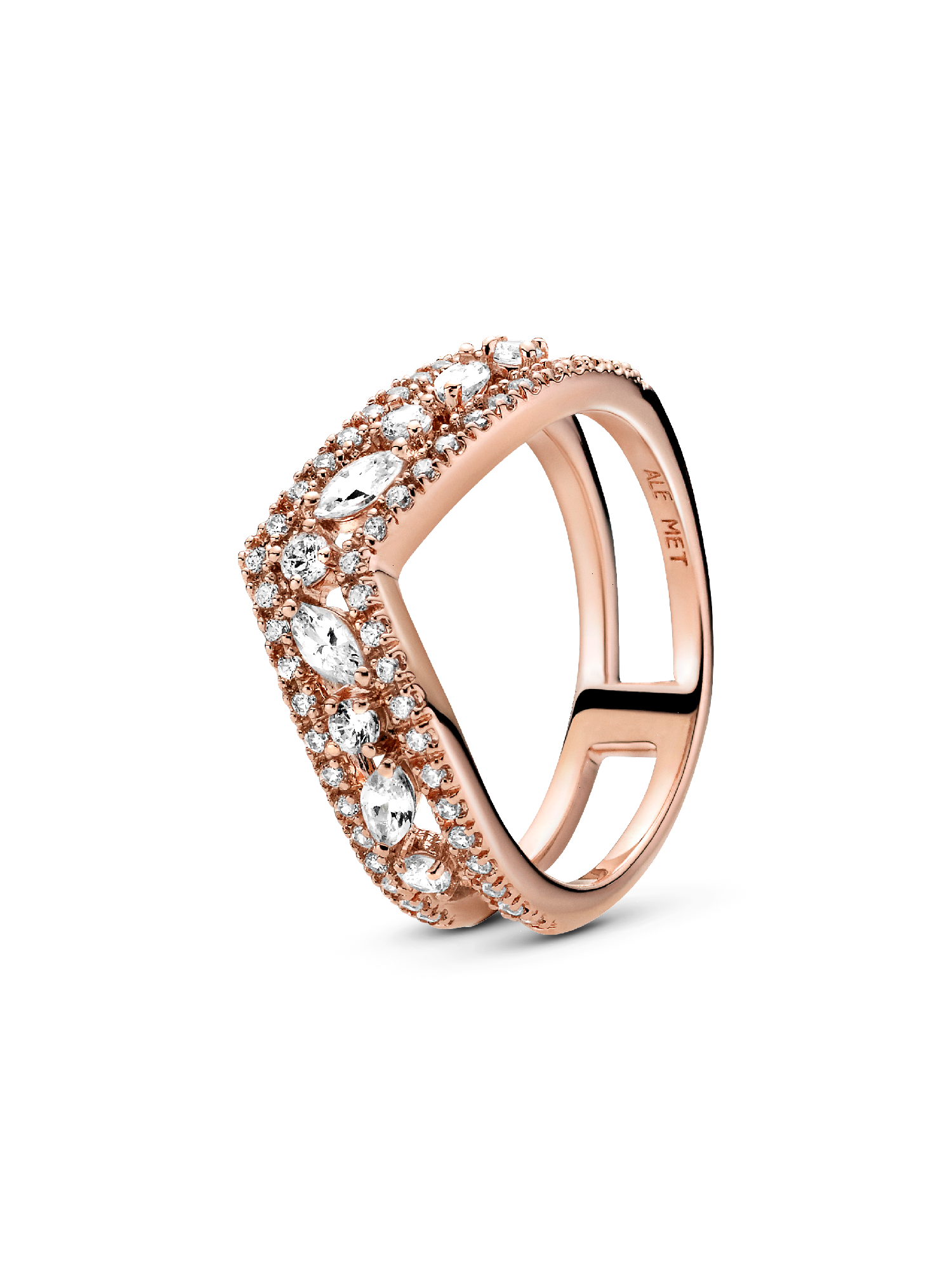 Step up your jewellery collection with the Sparkling Marquise Double Wishbone Ring. Hand-finished in 14k rose gold plating, this statement piece is inspired by the shape of a wishbone. Two rings form the double ring band which features clear cubic zirconia. Ideal for additional stacking, layer this 14k rose gold-plated wishbone ring with pieces hand-finished in sterling silver for a contrasting look with added sparkle.