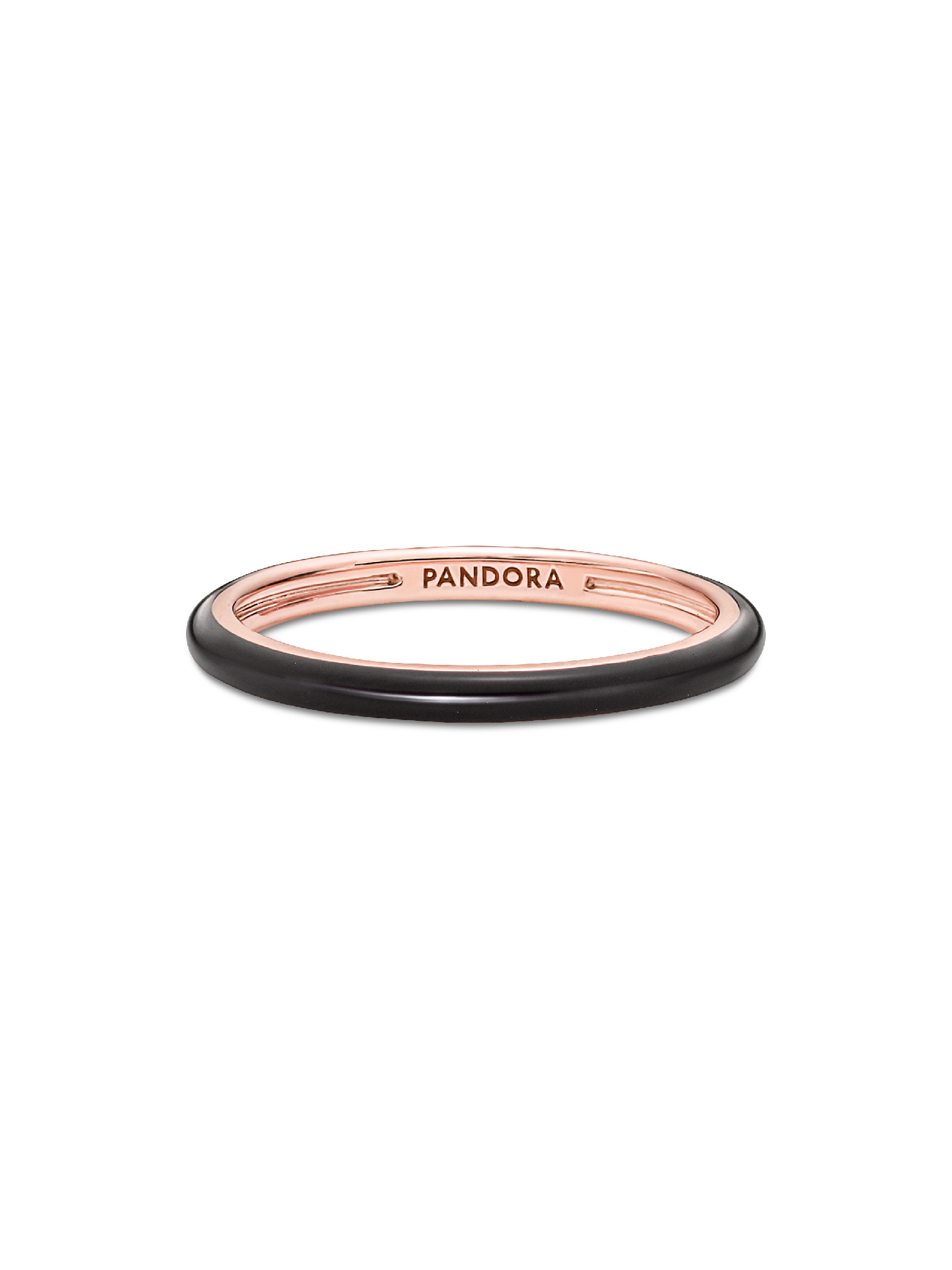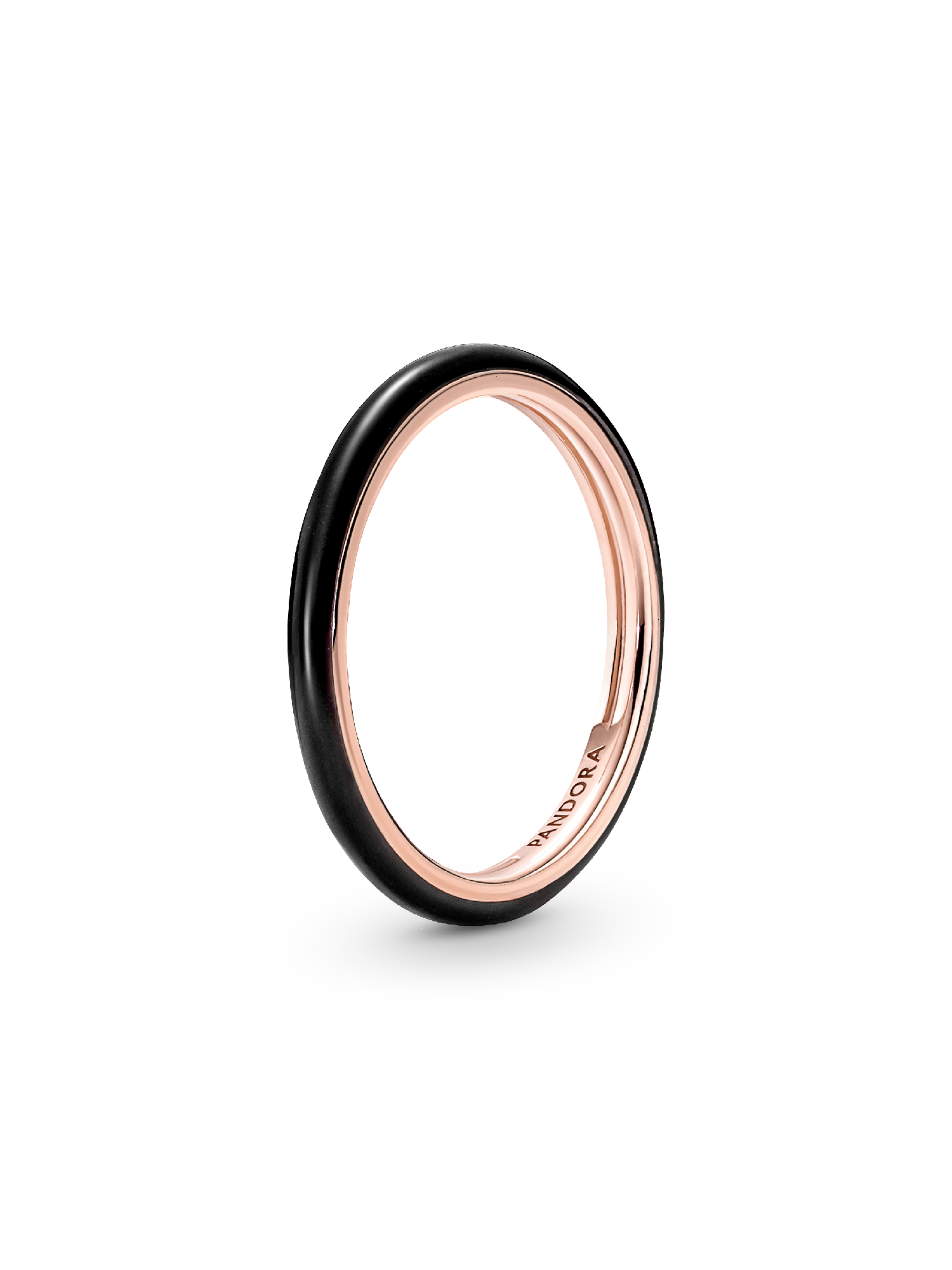 Remix your ring stacks with this Pandora ME Black Enamel Ring, ready to be styled, mixed and matched into new metal and color combinations that suit your mood every day. This 14k rose-plated ring has been decorated with hand-applied black enamel, for a cool, contrasting finish. Reach a level of personalization you love by connecting this statement stacking ring to your other favorites using the Pandora ME Two-ring or Three-ring Openable Links, then add up to two mini dangle charms that express who you are. Ready to re-style your double ring stack? Follow a few simple steps to make sure your two favorite pieces detach with ease, so you can remix your look over and over. Whatever ring pair you're rocking, ensure that the Two-ring Openable Link's openable part faces upwards and slide only one of the two rings to the opposite side. Next, take off any mini dangle charms through the opening, one at a time, before removing the other ring. You're now ready to change it all up again!