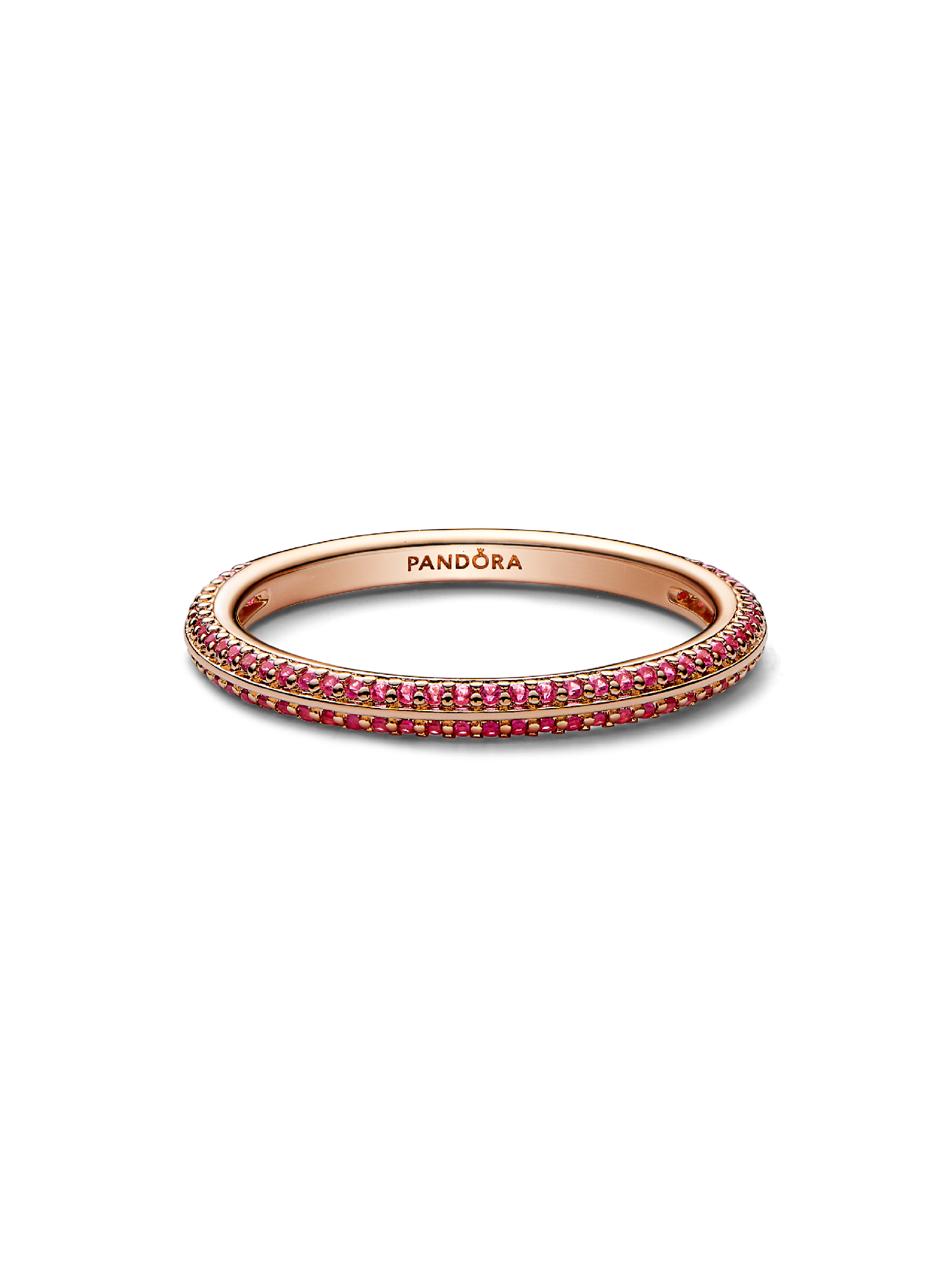 Remix your ring stacks with this Pandora ME Red Pavé Ring, ready to be styled into fresh metal and color combinations that suit your mood every day. This 14k rose gold-plated ring has been pavé set with 86 micro bead-set synthetic rubies for a for a vibrant look. Embrace the ultimate level of personalization by connecting this statement stacking ring to your other faves using the Pandora ME Three-ring Openable Link, then add up to three mini dangles that express who you are. Mix and match colors and stones next to each other to give your stacks a glow up. Ready to re-style your ring stack? Follow a few simple steps to make sure your two favorite mini dangles detach with ease, so you can remix your look over and over. Whatever ring stack you're rocking, ensure that the Pandora ME Three-ring Openable Link's openable part faces upwards and slide only one of the rings to the opposite side. Next, take off any mini dangles through the opening, one at a time, before removing the other ring. You're now ready to change it all up again!