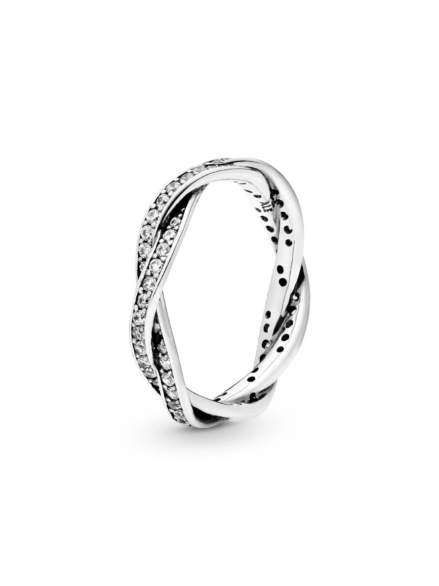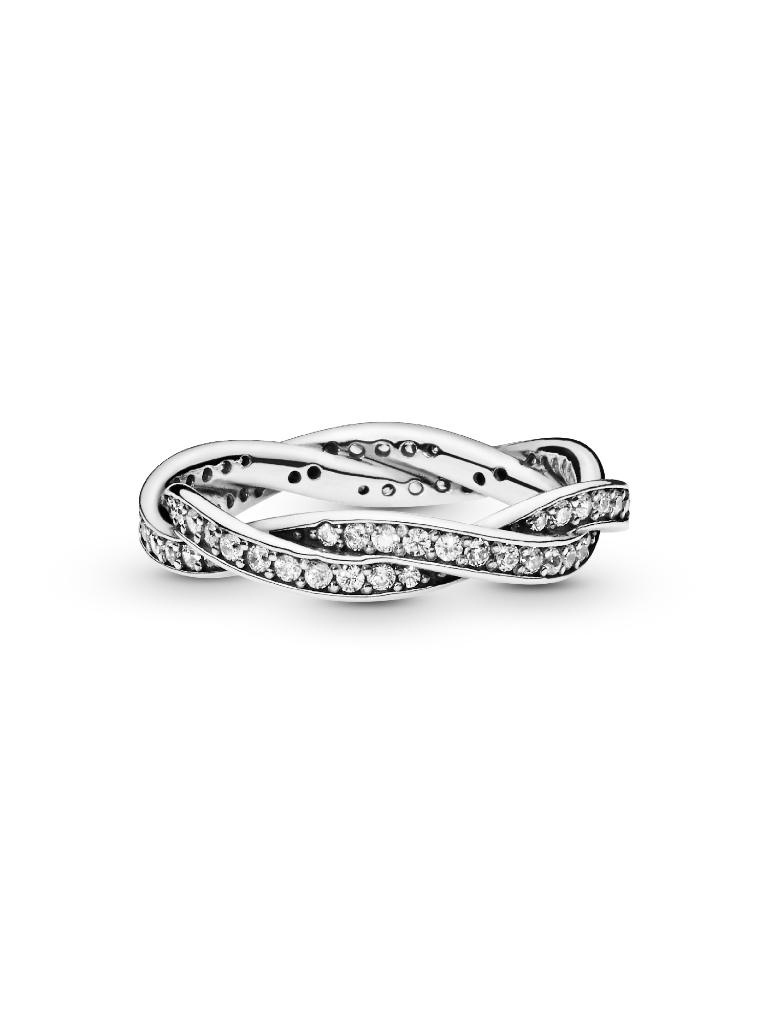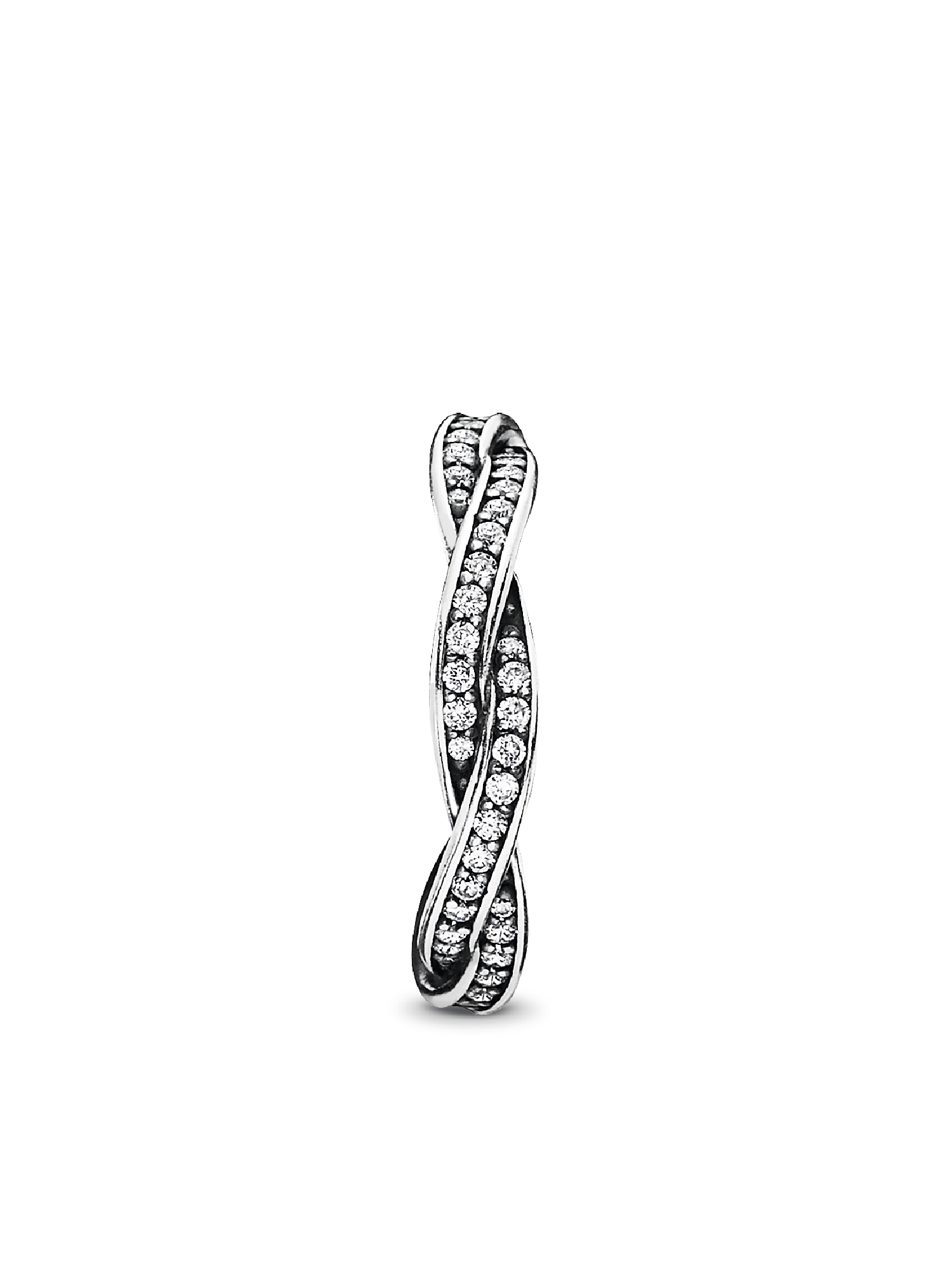Show that style is forever with this sterling silver ring. Made from sterling silver, one of our three signature metals, the glittering band ring is made from twisted lines of pavé-set cubic zirconia. Reminiscent of an infinity symbol, it can be worn for just about any occasion – and also to symbolize a bond of love. Try stacking multiples together for a special occasion.