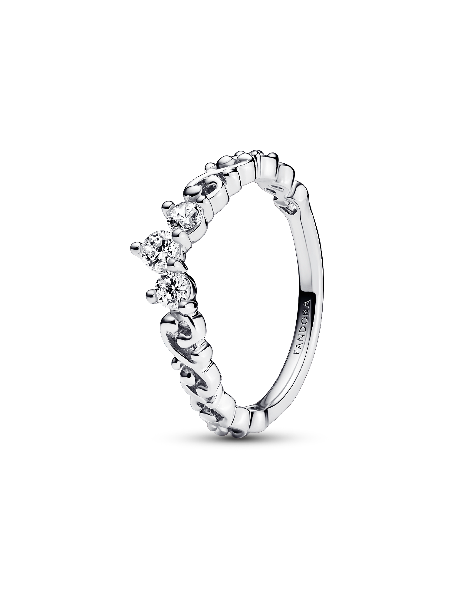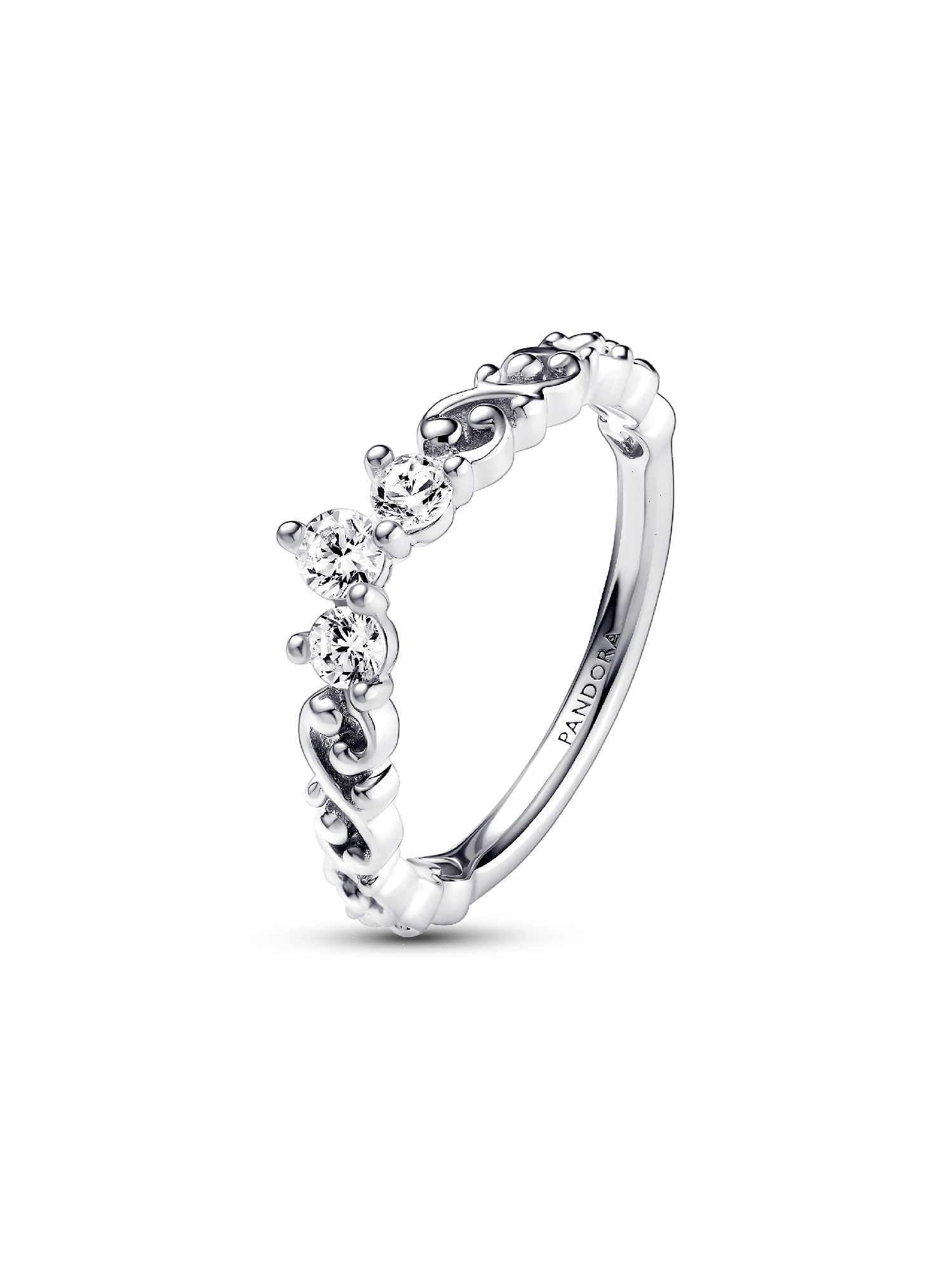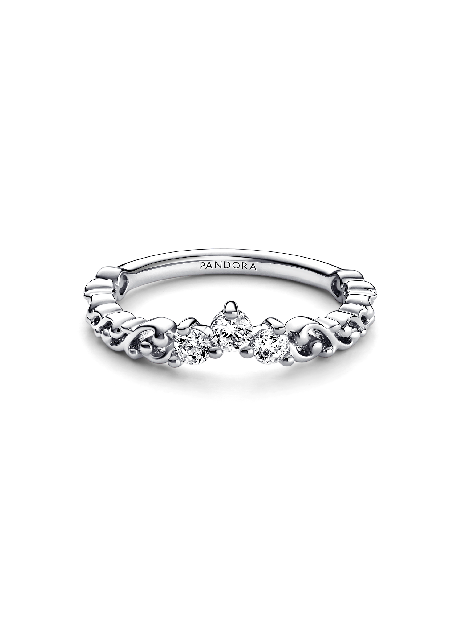 Add a touch of royalty to your looks with the Regal Swirl Tiara Ring. Crafted in sterling silver, this aristocratic piece features a tiara decorated with three sparkling stones and swirling filigree. Crown your hand with this majestic ring and treat yourself like a real queen.