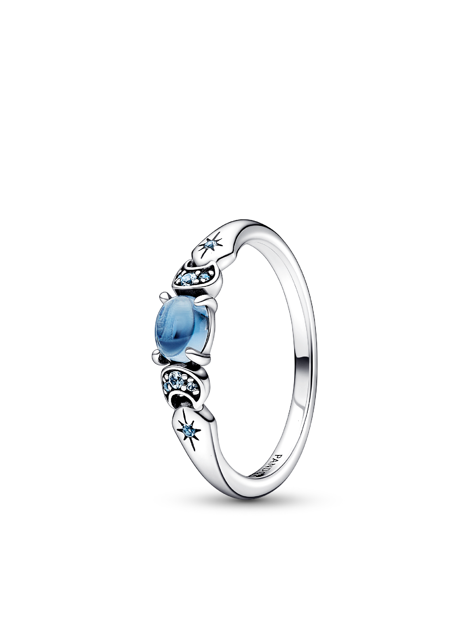 Stack your favorite stories with Disney x Pandora. Celebrate the 30th anniversary of Disney's classic, Aladdin, with pieces inspired by the brave and self-assured Princess Jasmine. Crafted from sterling silver, this stackable ring features an oval moonlight blue man-made crystal at its center, surrounded with icy blue man-made crystals, referencing Princess Jasmine's characteristic teal blue color. Make your own wishes come true and layer this sterling silver ring into your everyday favorites to let your bravery shine for all to see - or gift it to an Aladdin fan and take their jewelry into a new world.
