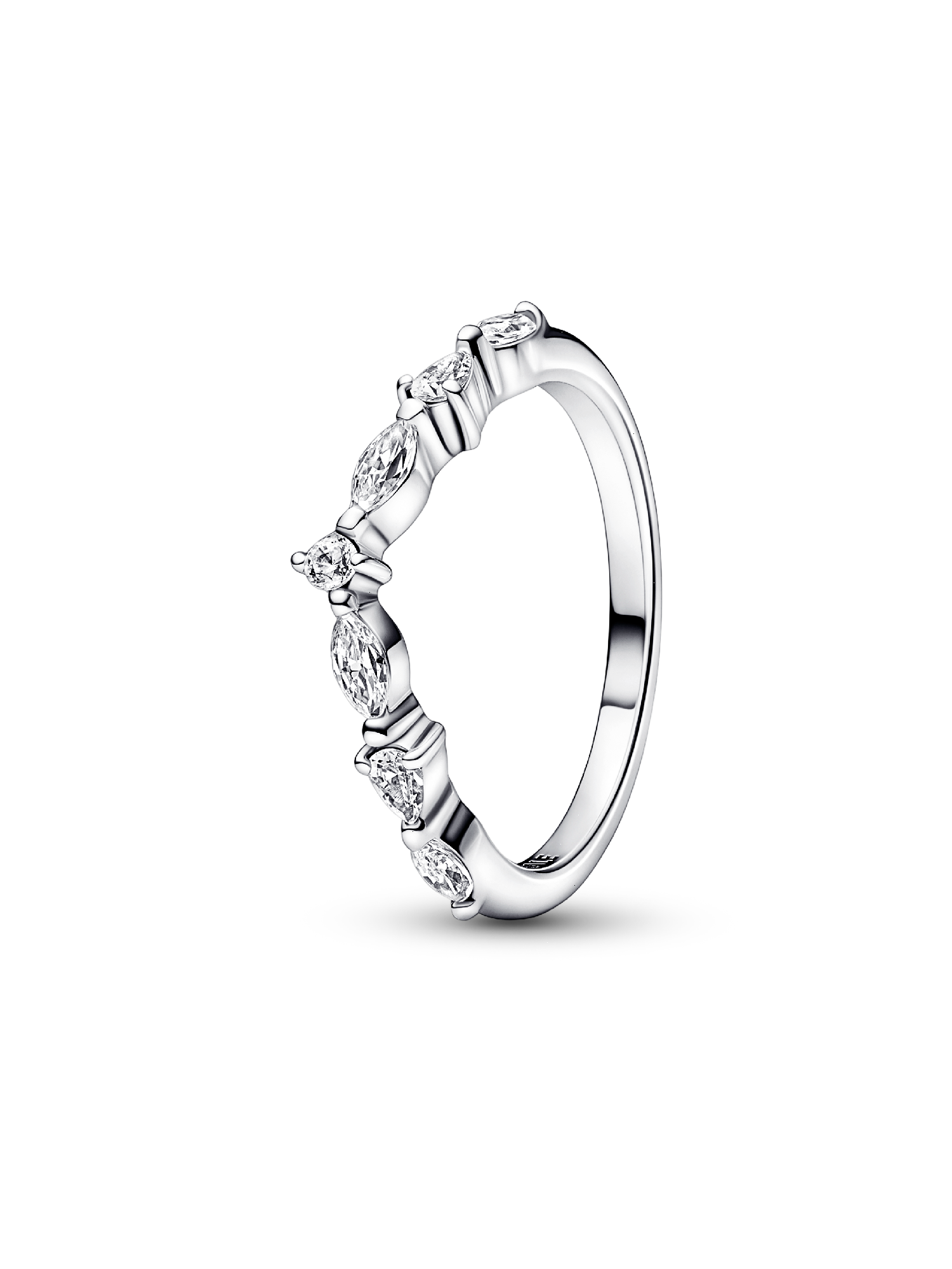 Make eye-catching statements with your everyday jewelry, with our Pandora Timeless Wish Sparkling Alternating Ring, a modern interpretation of classic ring styles. Crafted from polished sterling silver, the ring band is set to sparkle with a row of cubic zirconia in round, marquise and pear-shaped cuts. Wear yours as a single piece or layer with more sparkling Pandora Timeless rings for a modern approach to stacking that will bring timeless elegance to every look.