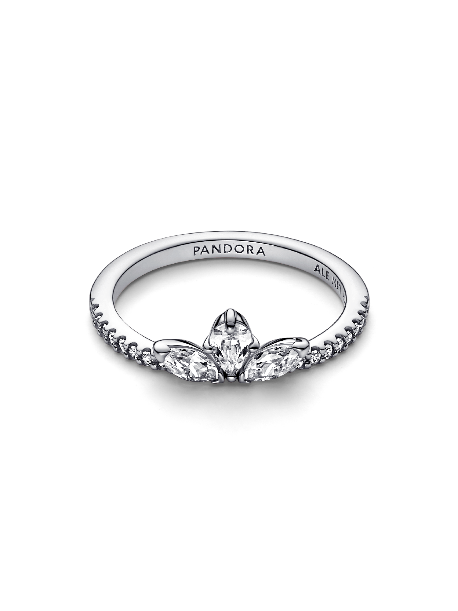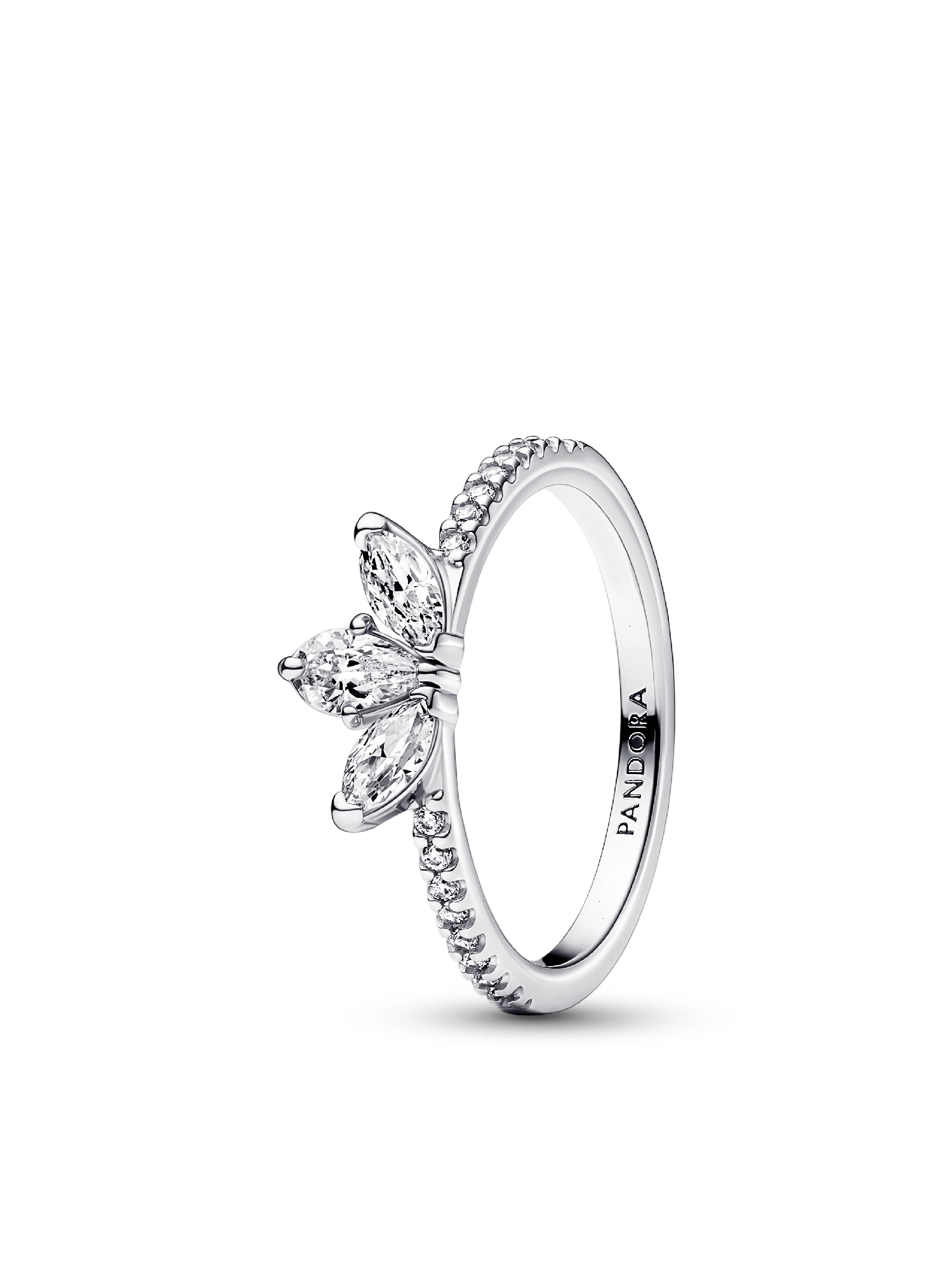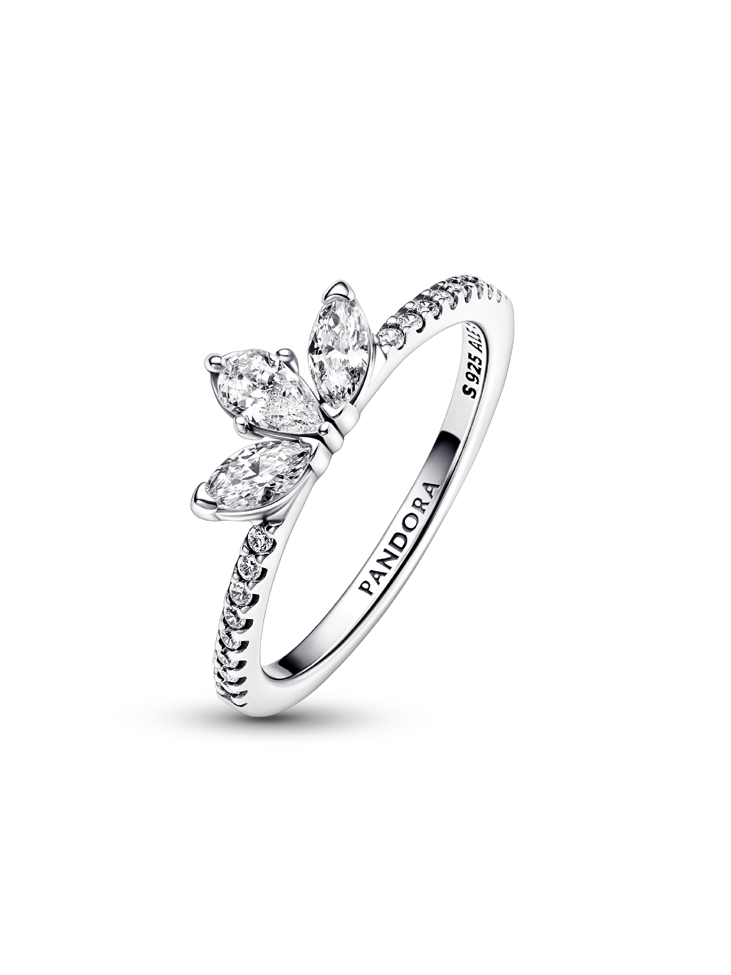 Our Sparkling Herbarium Cluster Ring features three central stones in a petal shape, two marquise-shaped and one pear-shaped. Crafted from sterling silver, this elegant ring is inspired by the beauty of nature, with petal silhouettes that will never go out of style. When styled back-to-back, they form a whole cluster motif, giving an air of completeness to your stack.