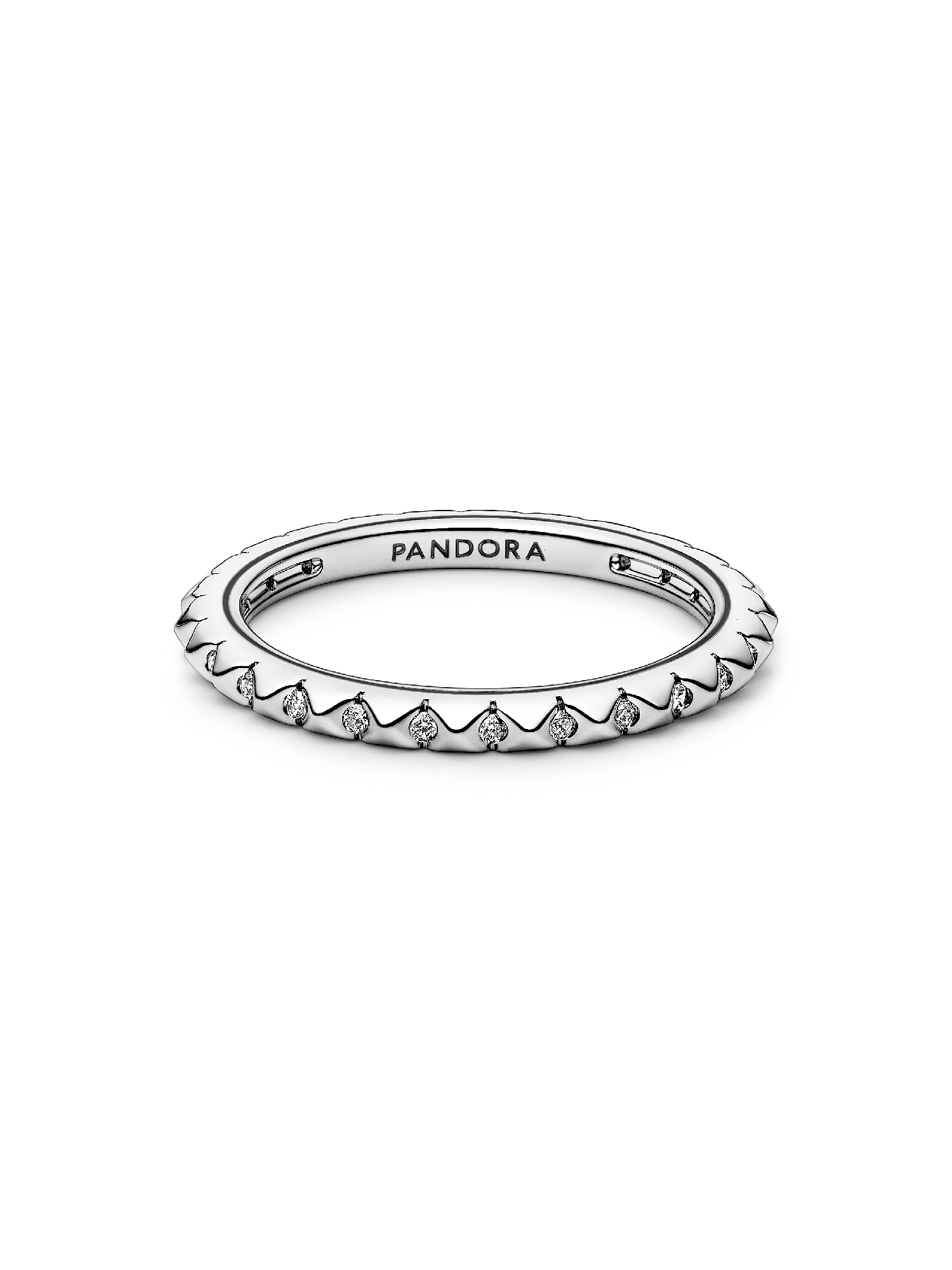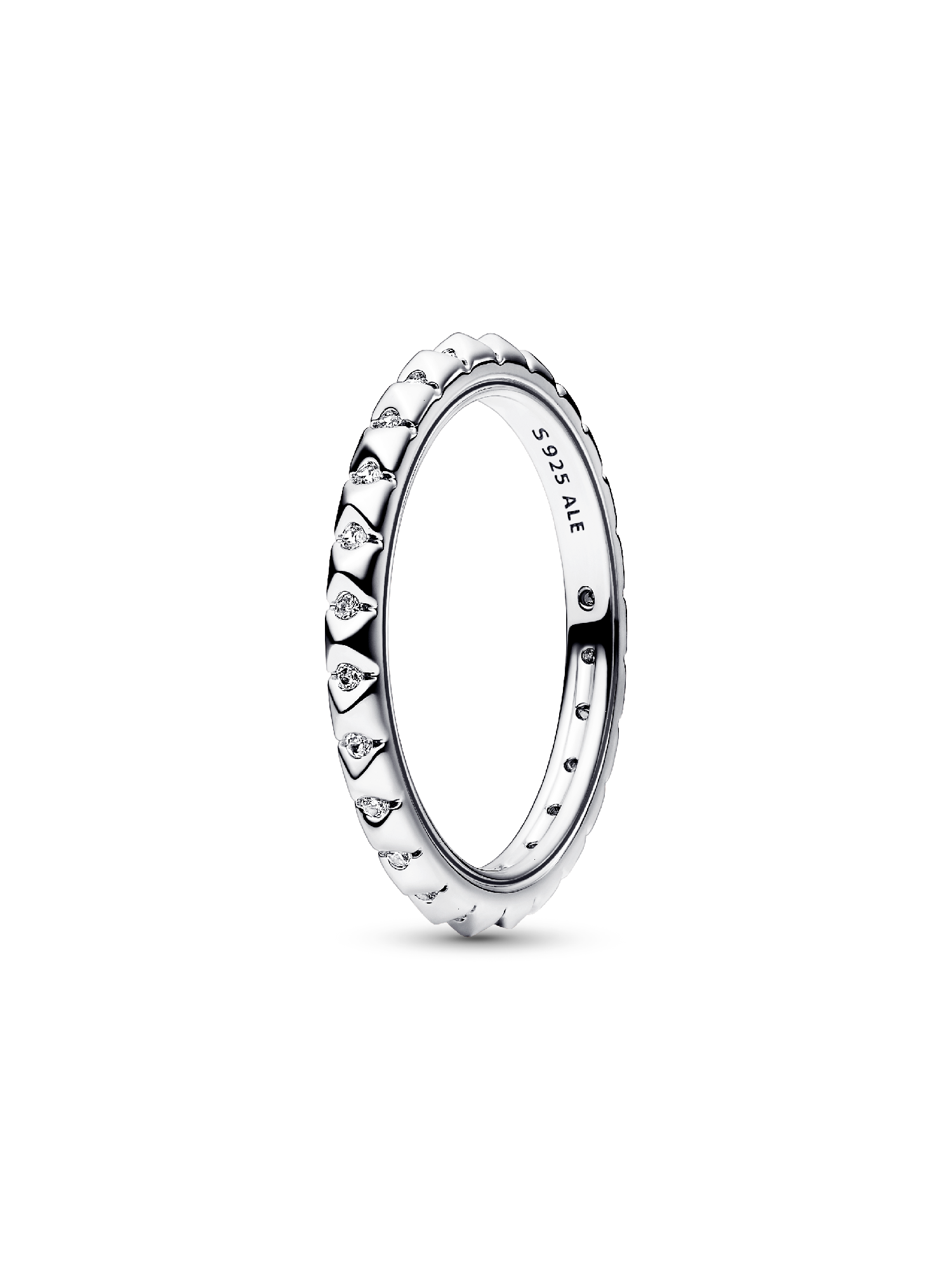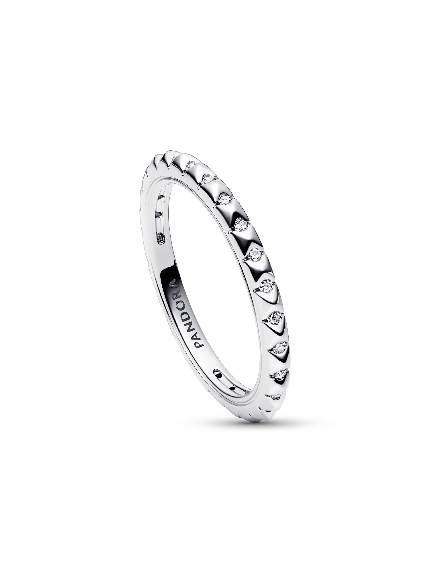 It's 90s and chill in sterling silver with the Pandora ME Pyramids Ring. This ring is punctuated by pyramid studs with clear cubic zirconia stones set between them. A grooved line along the edges of the ring adds a subtle, sleek design detail. Edgy yet elegant, this effortlessly cool piece will become a go-to option that works with everything, inspiring you to customise a fresh look every day.