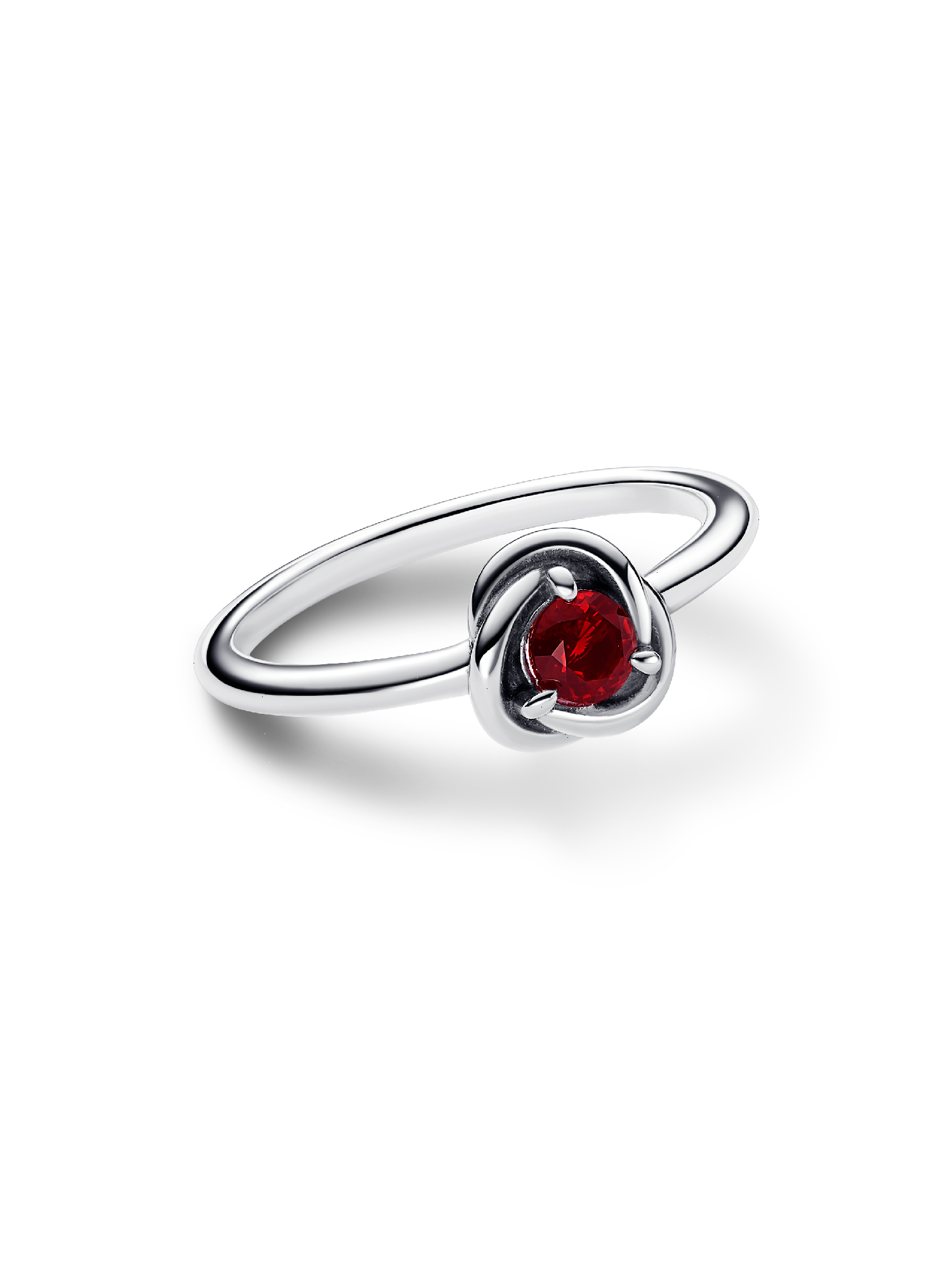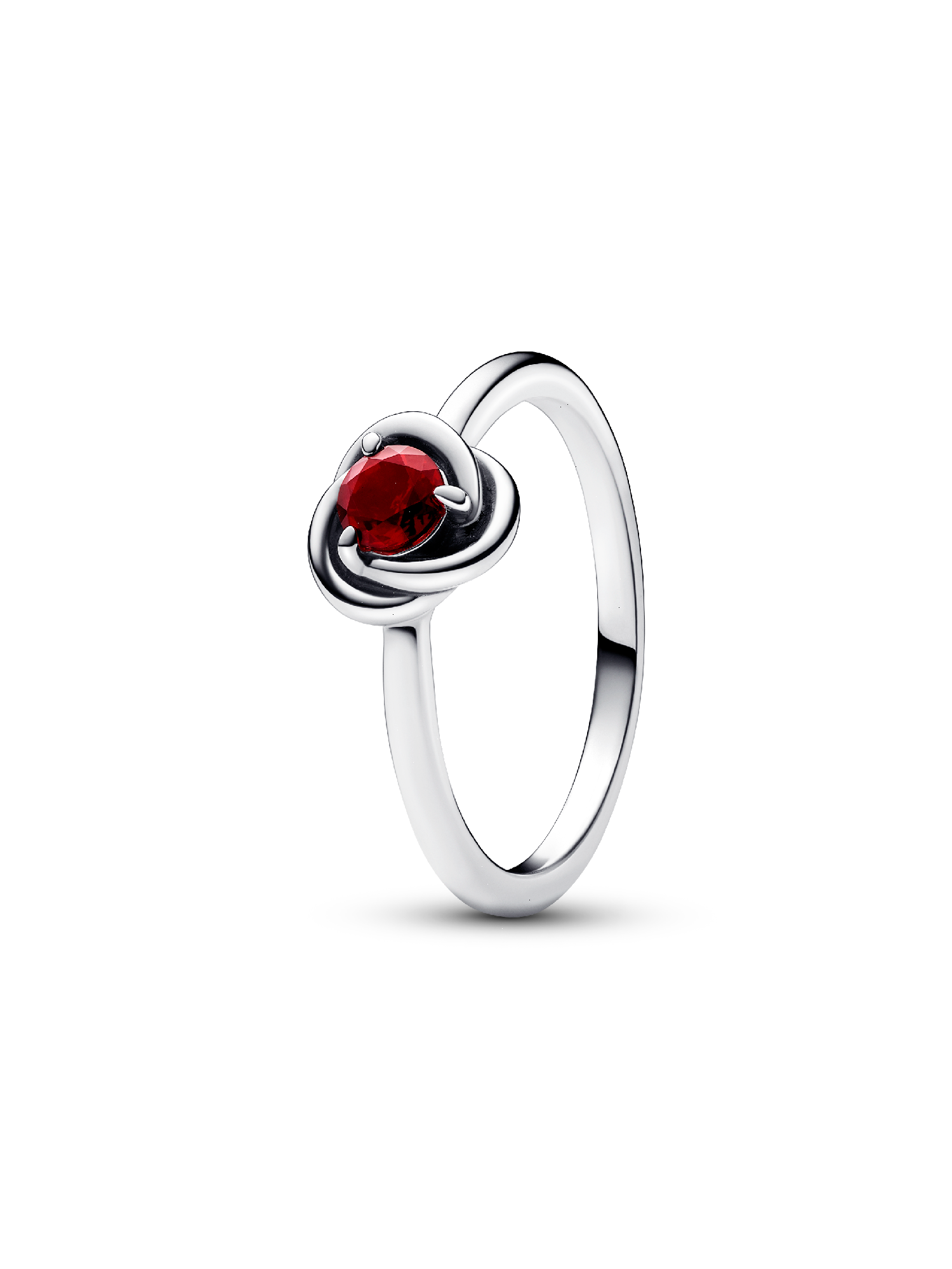 Wear a symbol of forever with the Red Eternity Circle Ring. This sterling silver ring features one claw-set sparkling red-hued man-made crystal. The polished band wraps around the center stone in an openwork braided infinity pattern. Whether you want to carry a reminder of eternal love or a symbol of the timeless joy that infuses each and every moment, this colorful eternity ring will bring sparkling meaning to your look.