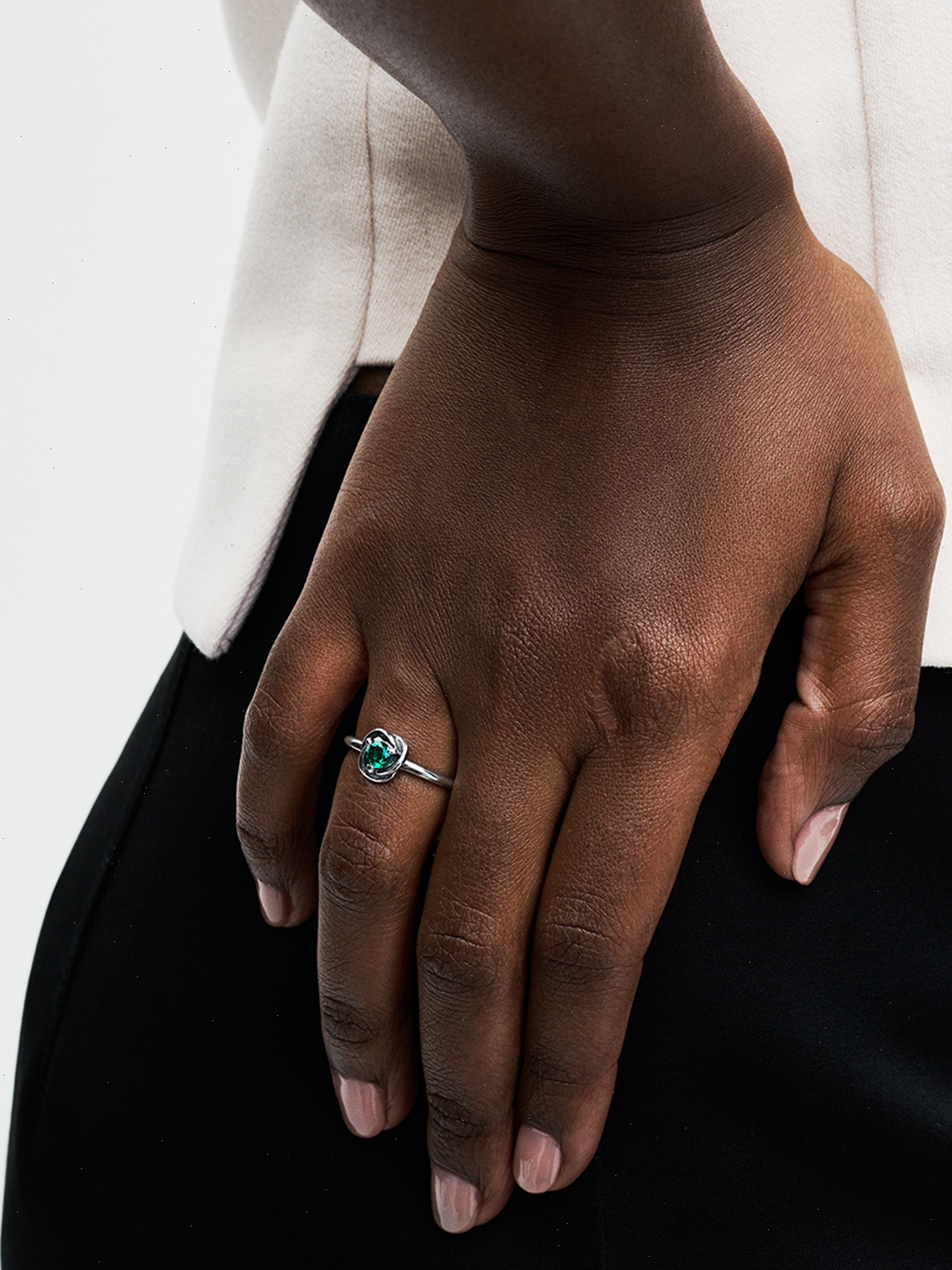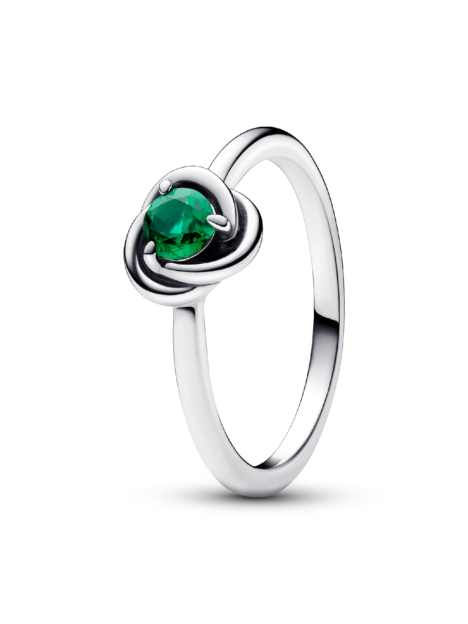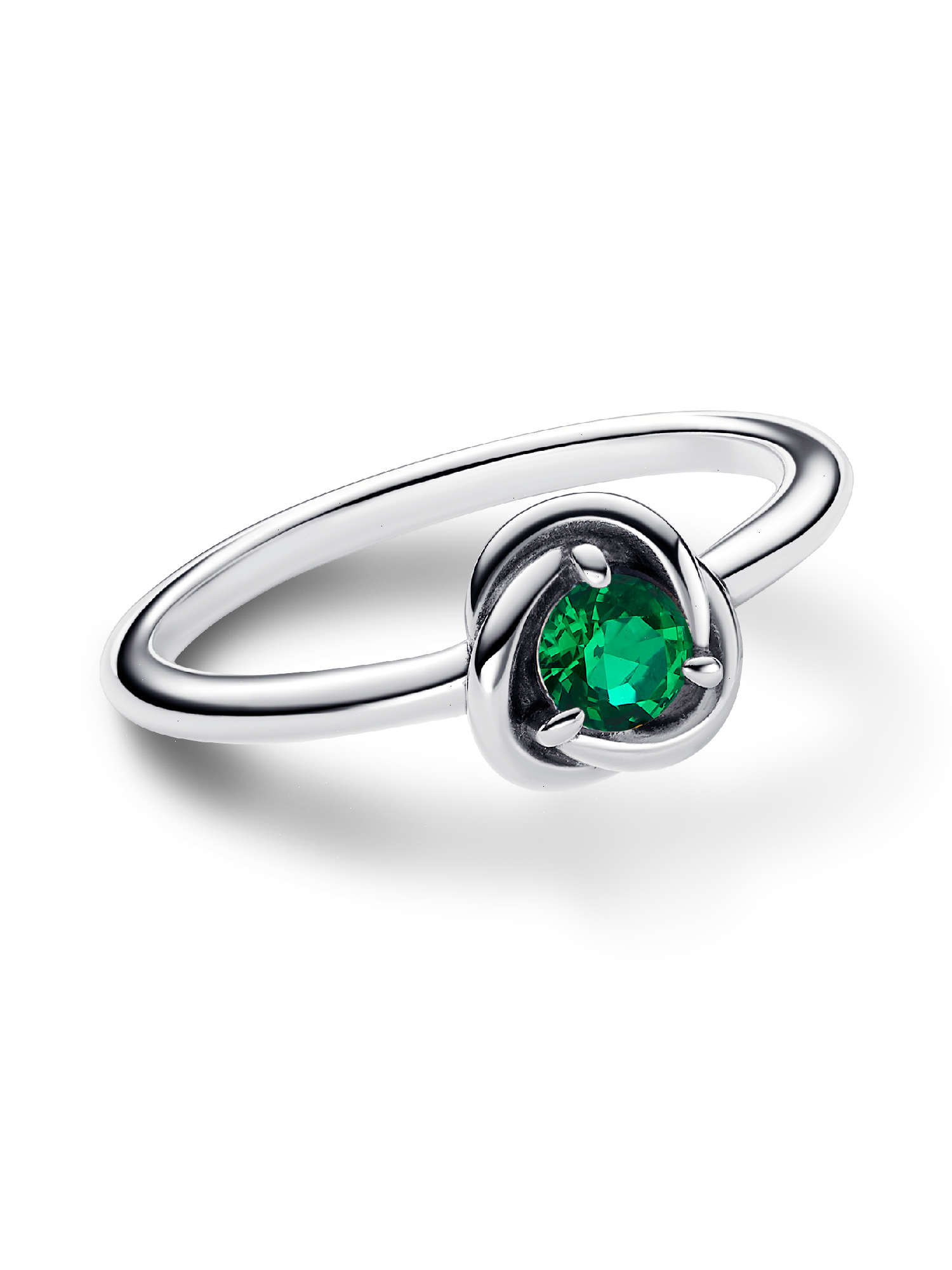 Wear a symbol of forever with the Green Eternity Circle Ring. This sterling silver ring features one claw-set sparkling royal green man-made crystal. The polished band wraps around the center stone in an openwork braided infinity pattern. Whether you want to carry a reminder of eternal love or a symbol of the timeless joy that infuses each and every moment, this colorful eternity ring will bring sparkling meaning to your look.