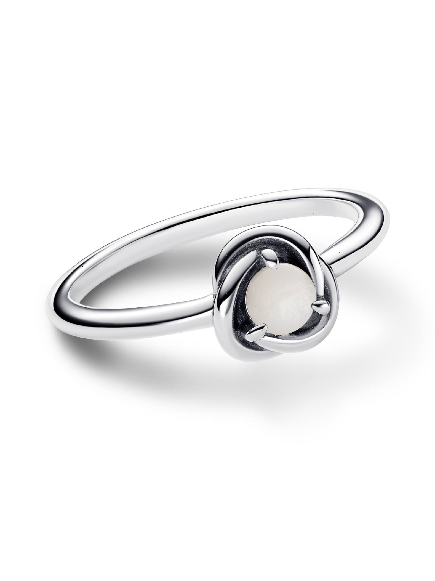 Wear a symbol of forever with the White Eternity Circle Ring. This sterling silver ring features a smooth cabochon-cut bioresin man-made mother of pearl stone. The polished band wraps around the center stone in an openwork braided infinity pattern. Whether you want to carry a reminder of eternal love or a symbol of the timeless joy that infuses each and every moment, this colorful eternity ring will bring sparkling meaning to your look.