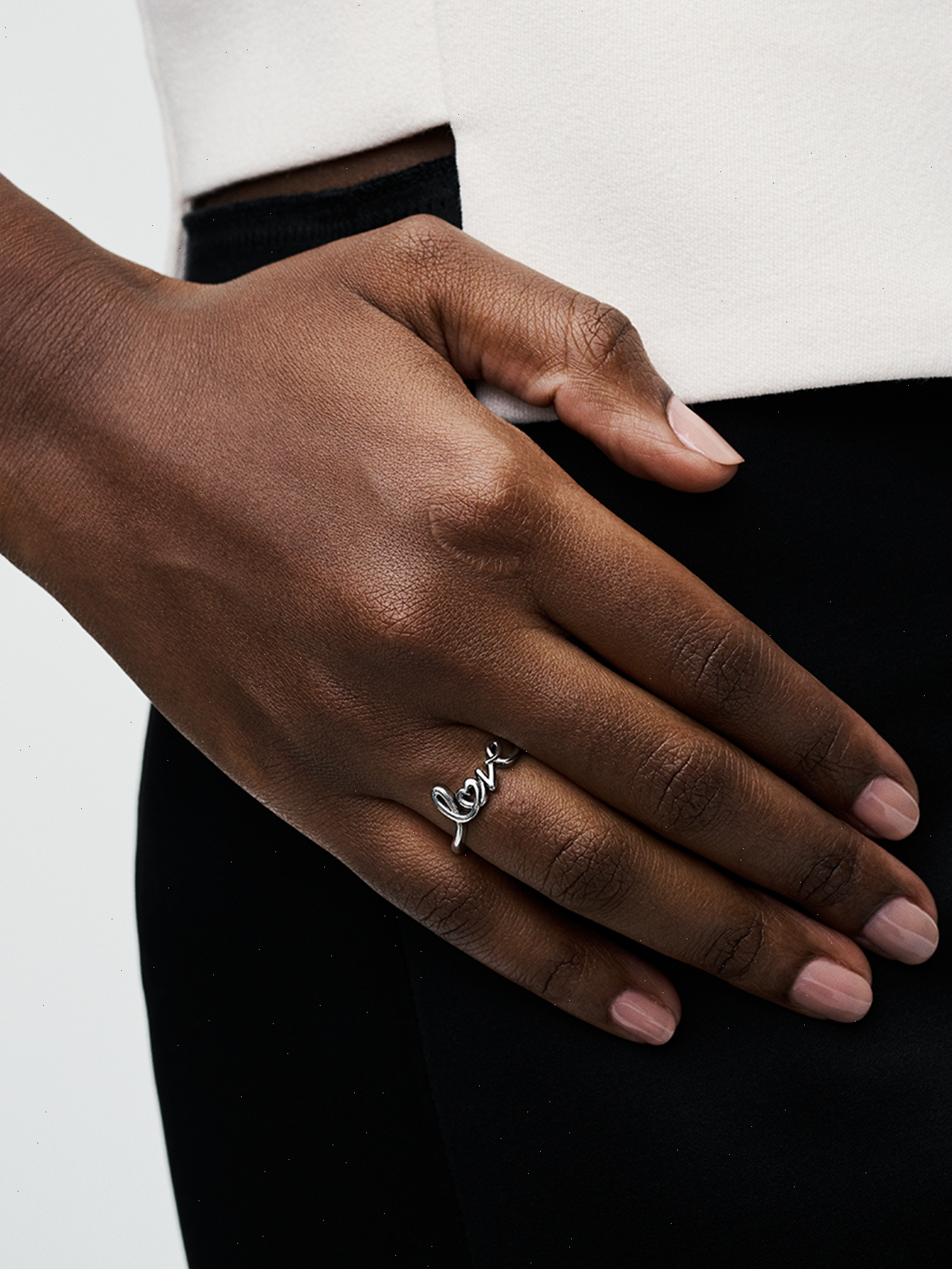 Spell out what's in your heart with the Handwritten Love Ring. This sterling silver ring features the word “love” in a handwritten style, following the line of the ring band. The letter "o" is shaped like a heart for a playful touch. Gift it as a wearable love note to a special person - yourself or someone else.