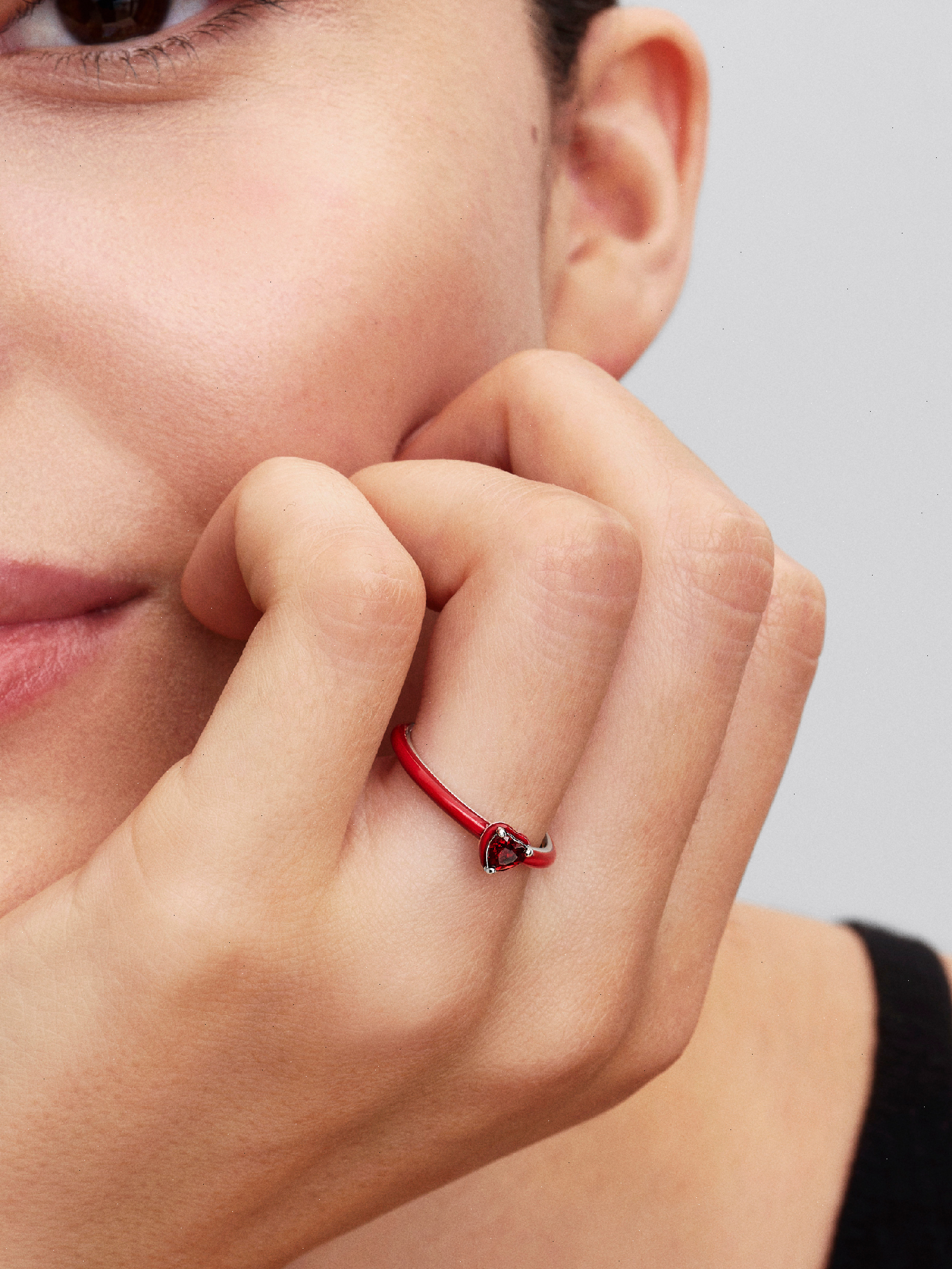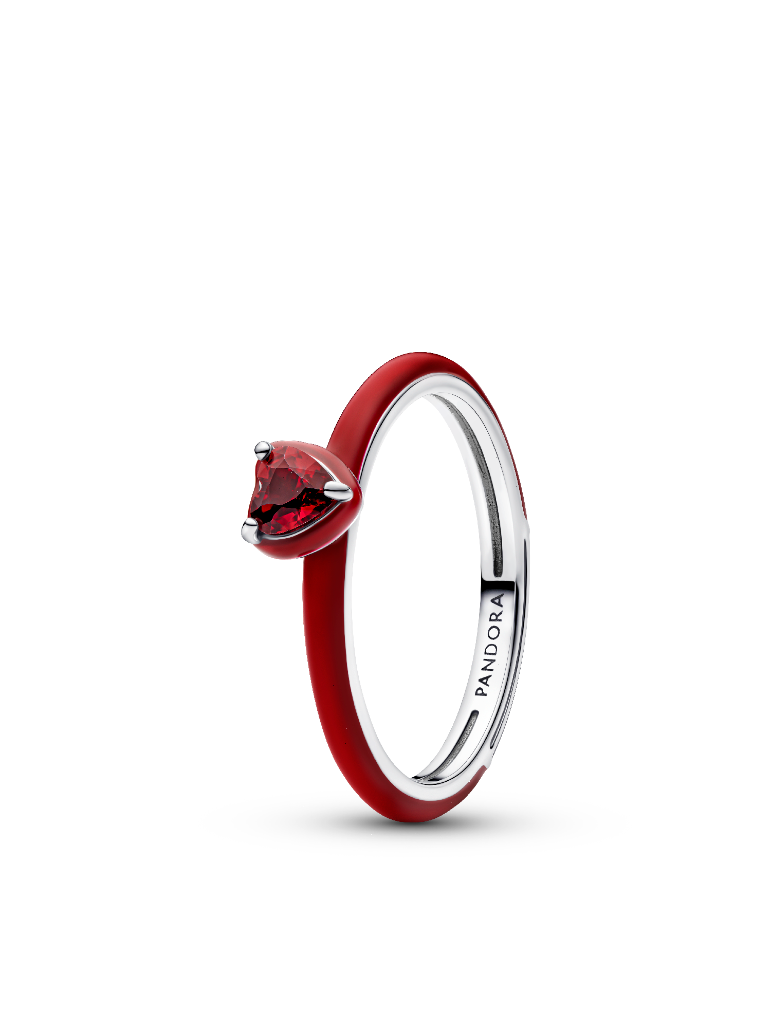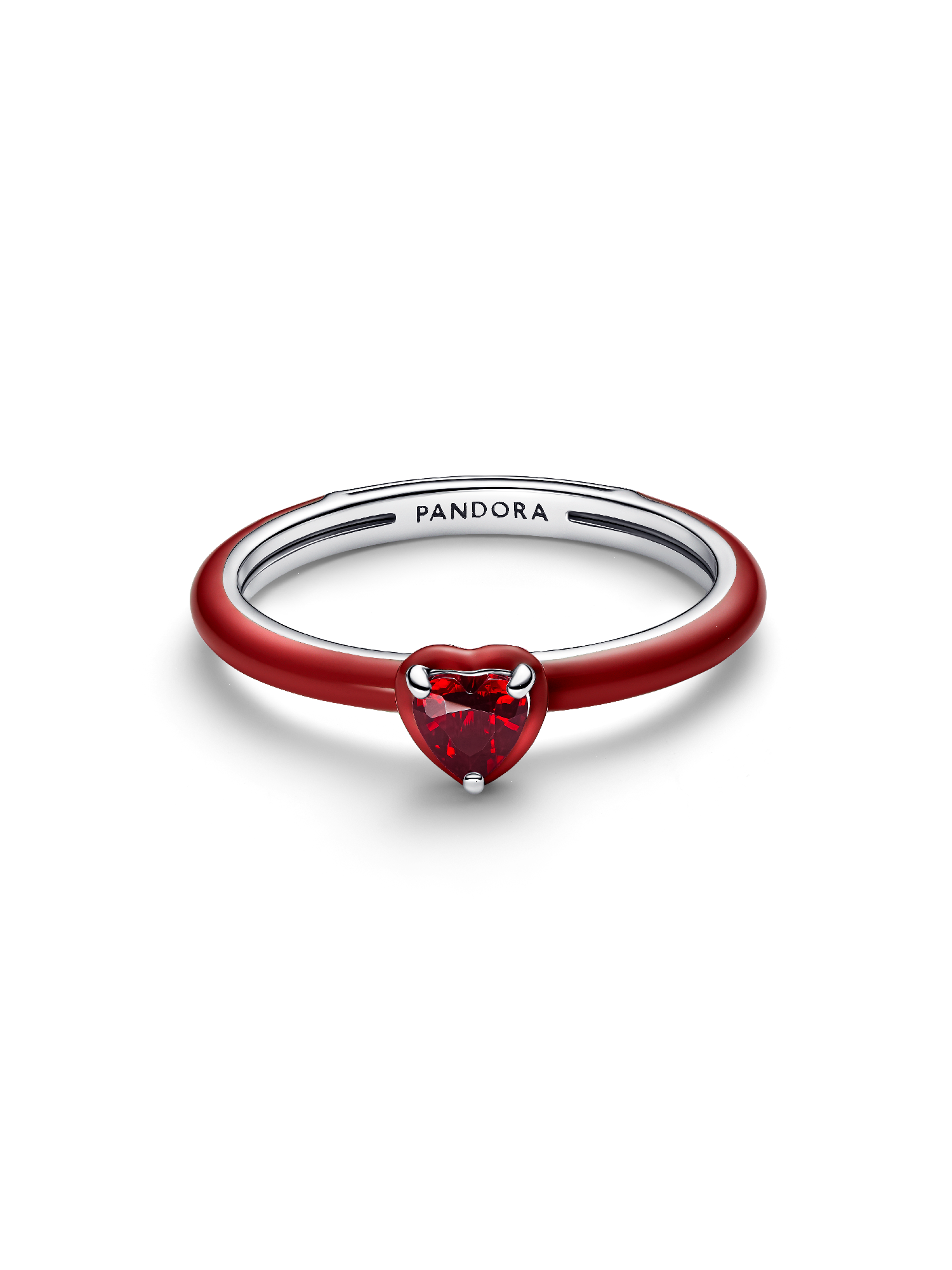Crafted in sterling silver, this ring features a red heart-shaped stone accented by a halo and band of tonal enamel. A symbol of love for yourself and others.