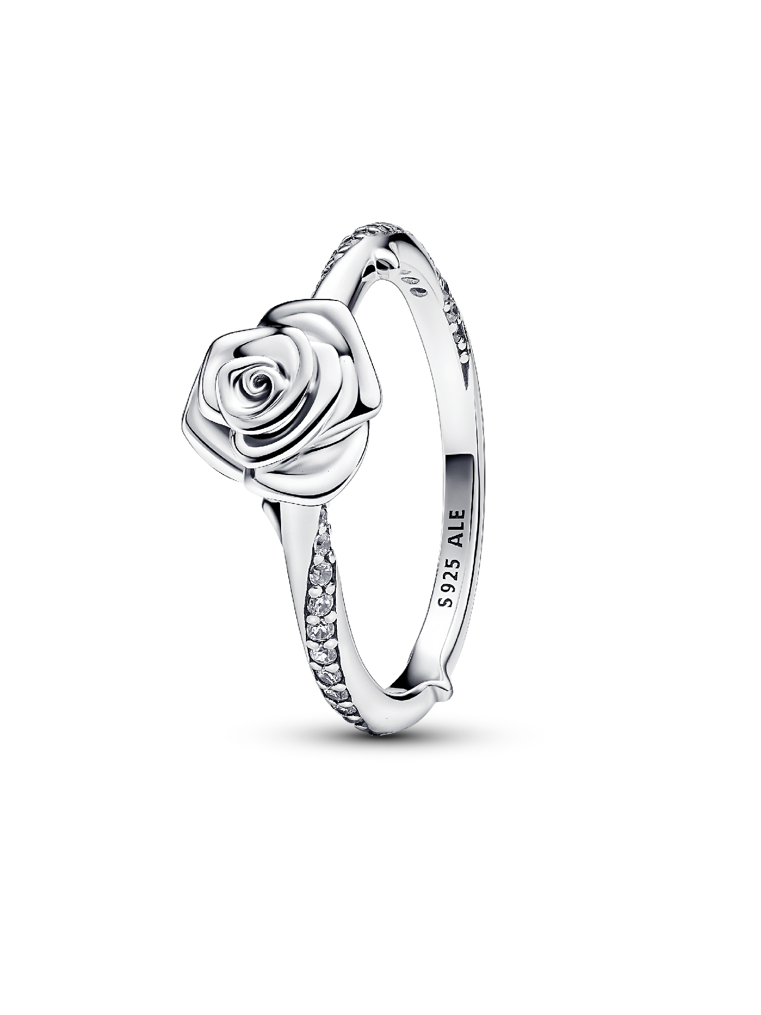 Crafted in sterling silver, the Rose in Bloom Ring represents the timeless gesture of gifting a rose to someone special. Blooming rose petals delicately layer on the ring's surface, creating a stunning three-dimensional effect. The band, adorned with a swirling pavé row, radiates classic elegance. The raised thorns add a extra level of detail, turning a classic symbol into a unique statement. Inspired by the universally recognized symbolism of a rose, this ring captures the essence of love and makes for a great gift for someone close to your heart.
