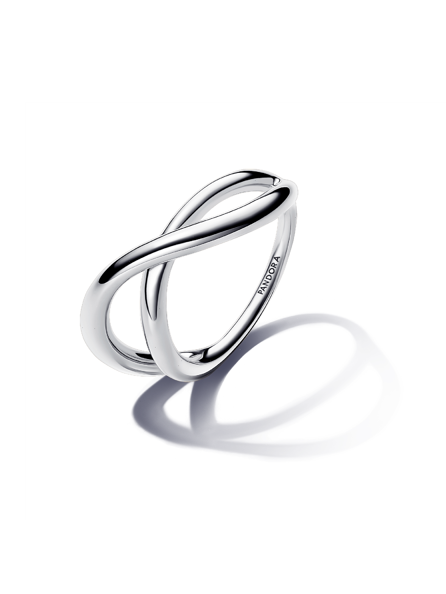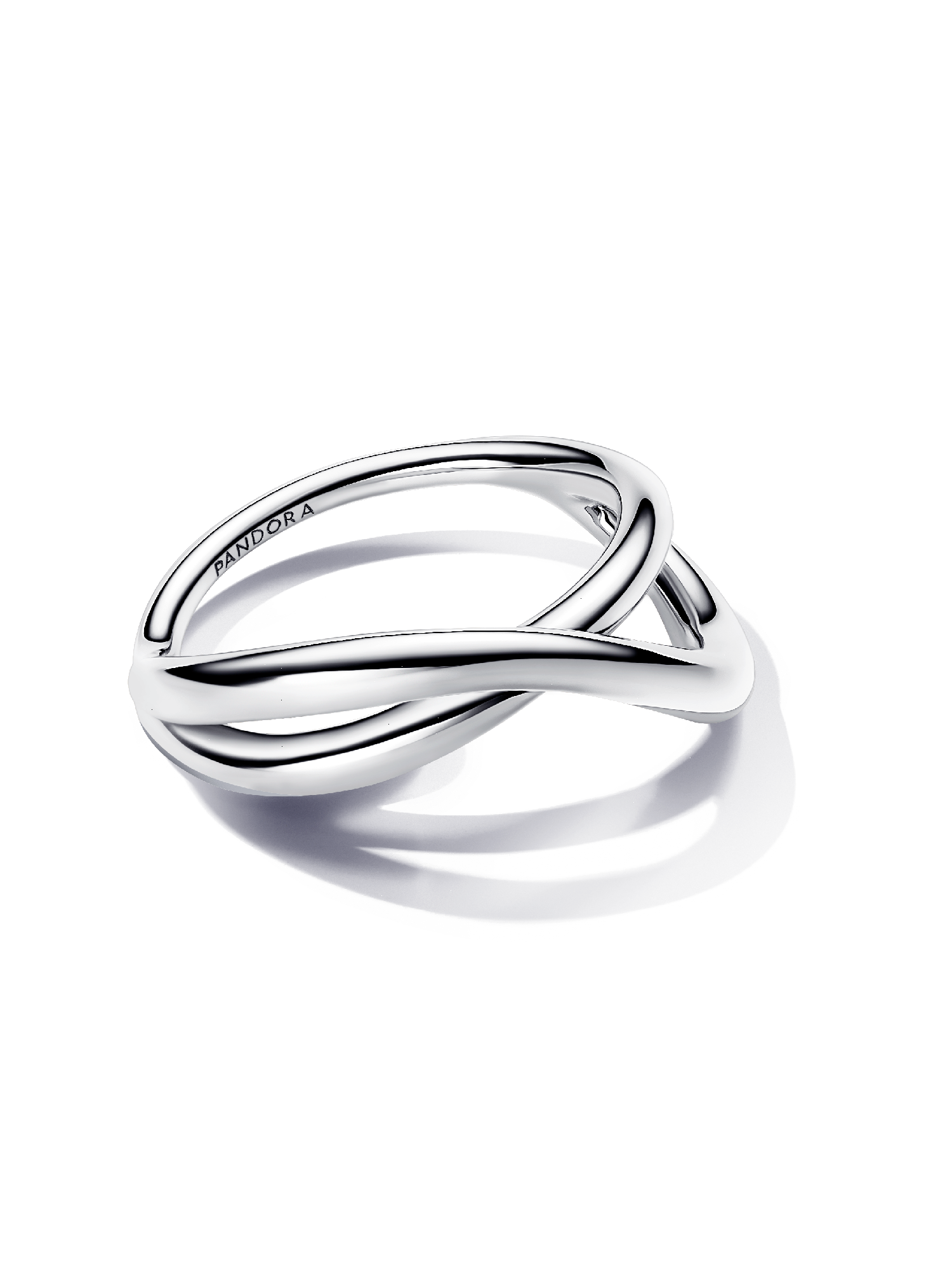 Bring dimension to your look when you wear the Organically Shaped Infinity Ring. This sterling silver ring splits into two overlapping bands, connected at the back. Both bands have a with a slight wave and varied width for an undulating, organic look. Embodying the beauty found in nature's organic shapes, this ring will add an architectural element to your look. Pair it with other sterling silver styles for monochromatic minimalism or use it as the foundation for your next maximalist stack.