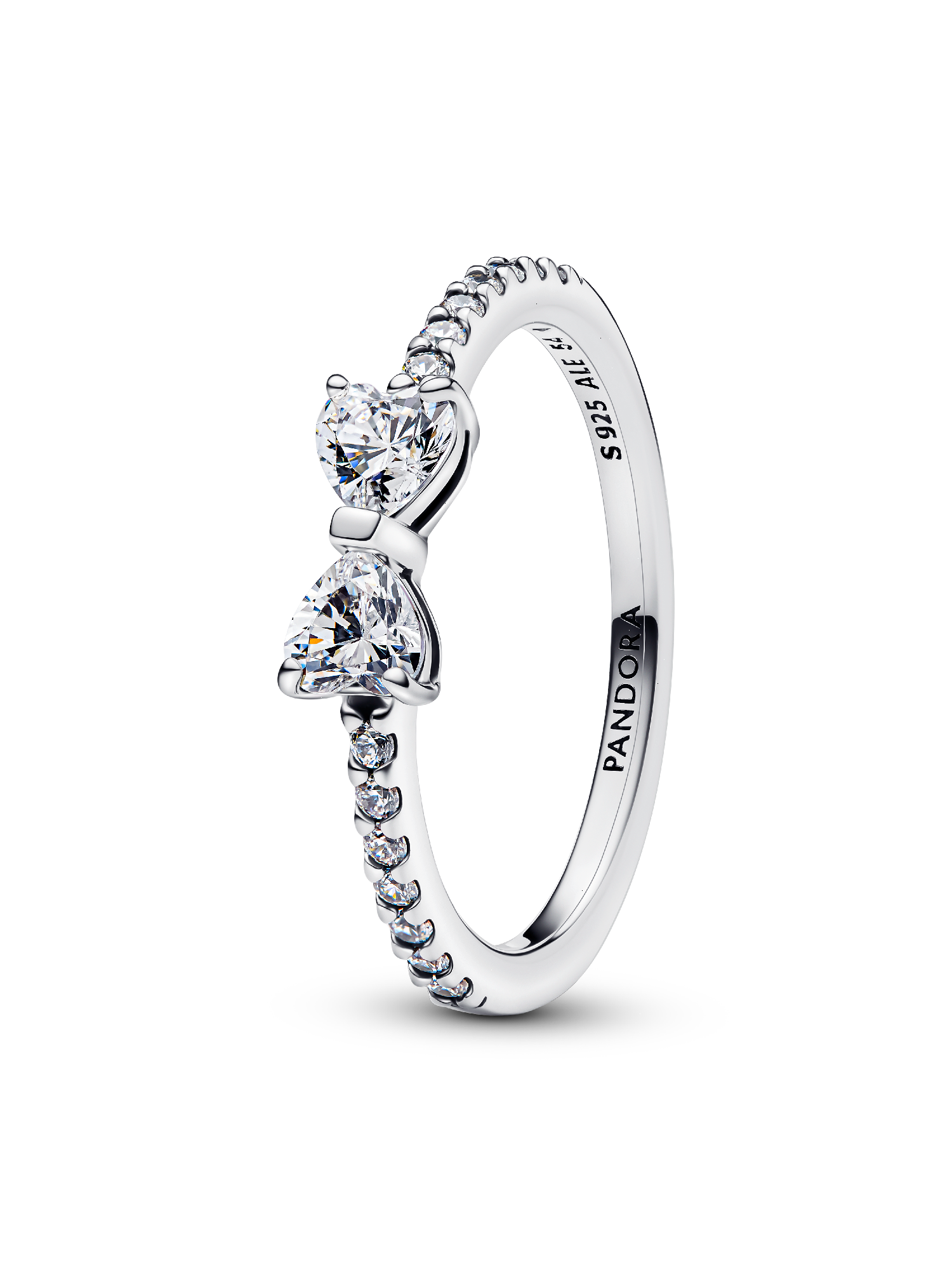 Embrace delicate design with the Sparkling Bow Ring. Two heart-shaped stones are set in the shape of a bow at the center of this sterling silver ring, which also features a row of pavé on the top half of the band. A sweet and feminine style, this bow-inspired ring is designed to be worn on its own for a minimalist look that speaks volumes.
