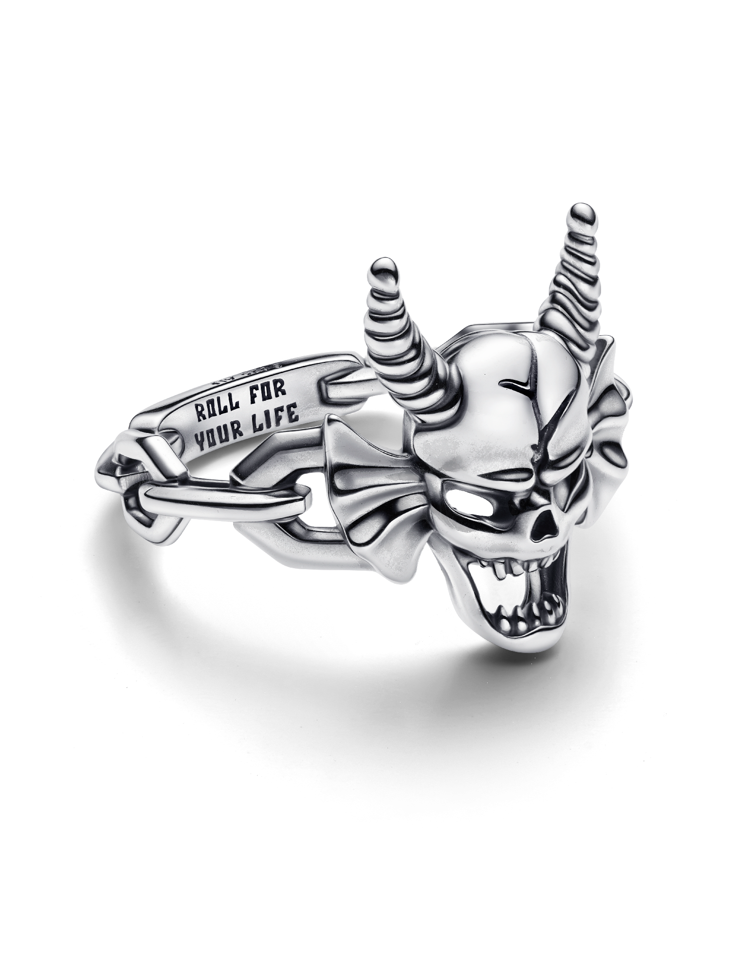 Keep your friends close and your demons closer with the Stanger Things Hellfire Club Ring. Finished by hand, the eye-catching piece features the Hellfire Club emblem – a horned demon head, which stands for togetherness, friendship and loyalty. The inside of the band features an engraving that reads “ROLL FOR YOUR LIFE” and the outside part is highlighted with bold, decorative links connected with a bar. Style with your other meaningful favourites or gift to the Stranger Things fan in your life.