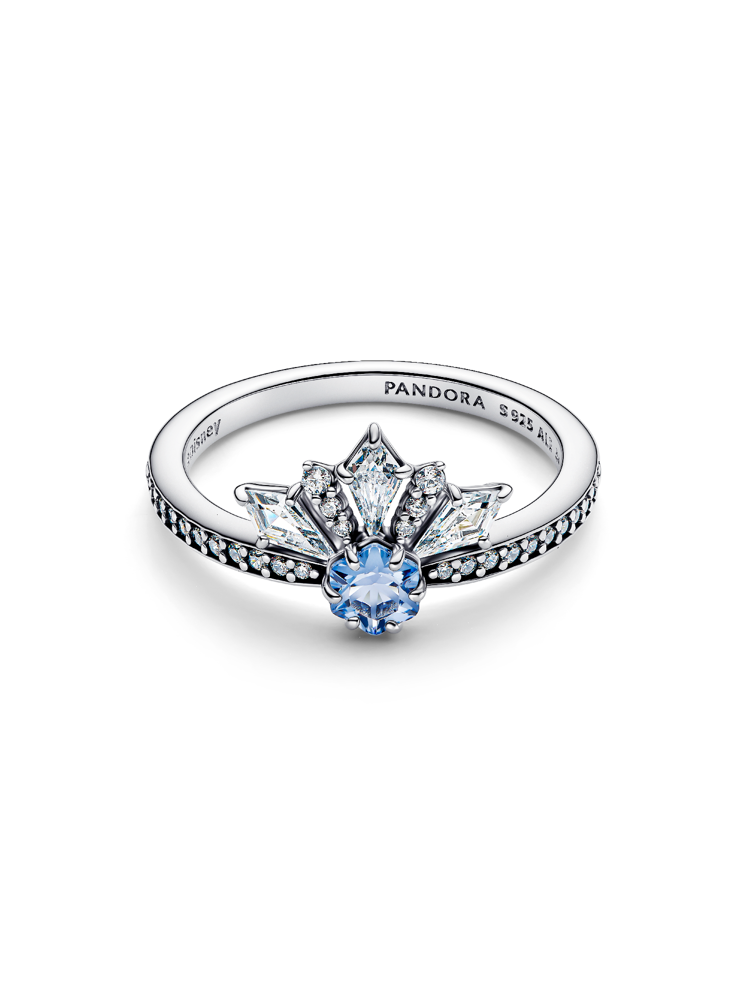 Shine like the Snow Queen. Show your love for Disney’s Frozen with this striking sterling silver ring designed in a tiara constellation and featuring blue and clear stones.