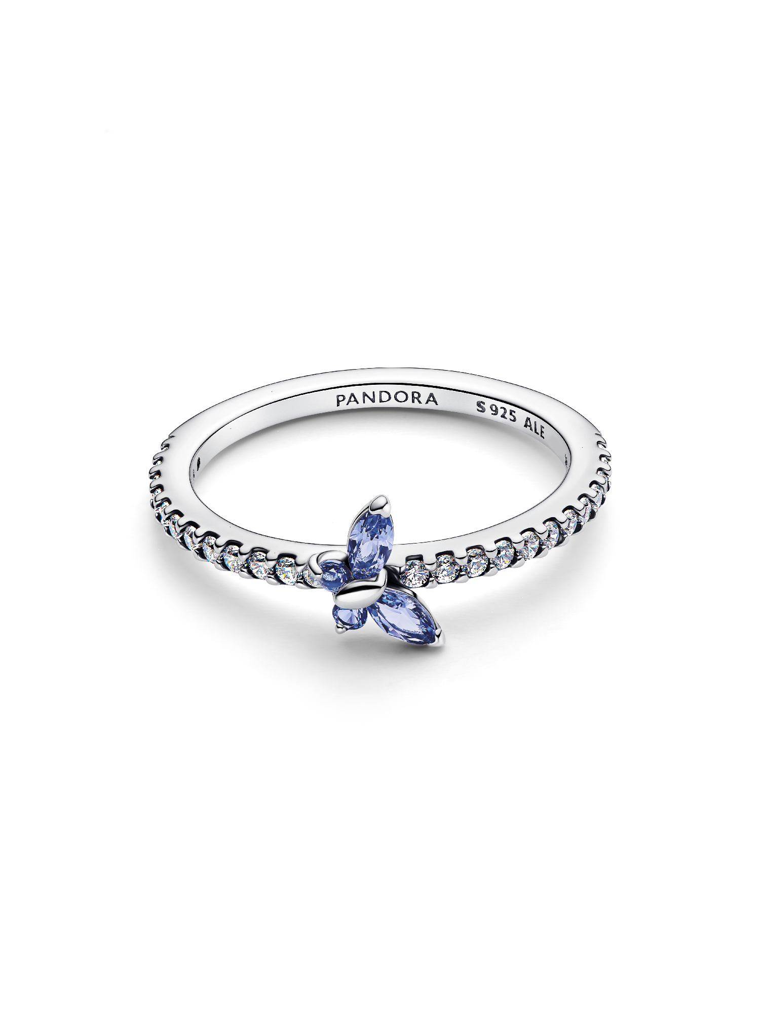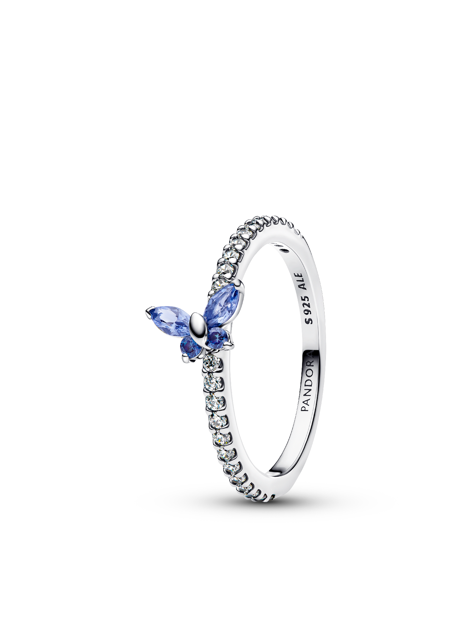 Add subtle sparkle to your look. This sterling silver ring features blue and clear cubic zirconia with a butterfly set at an angle as a symbol of transformation and beauty.