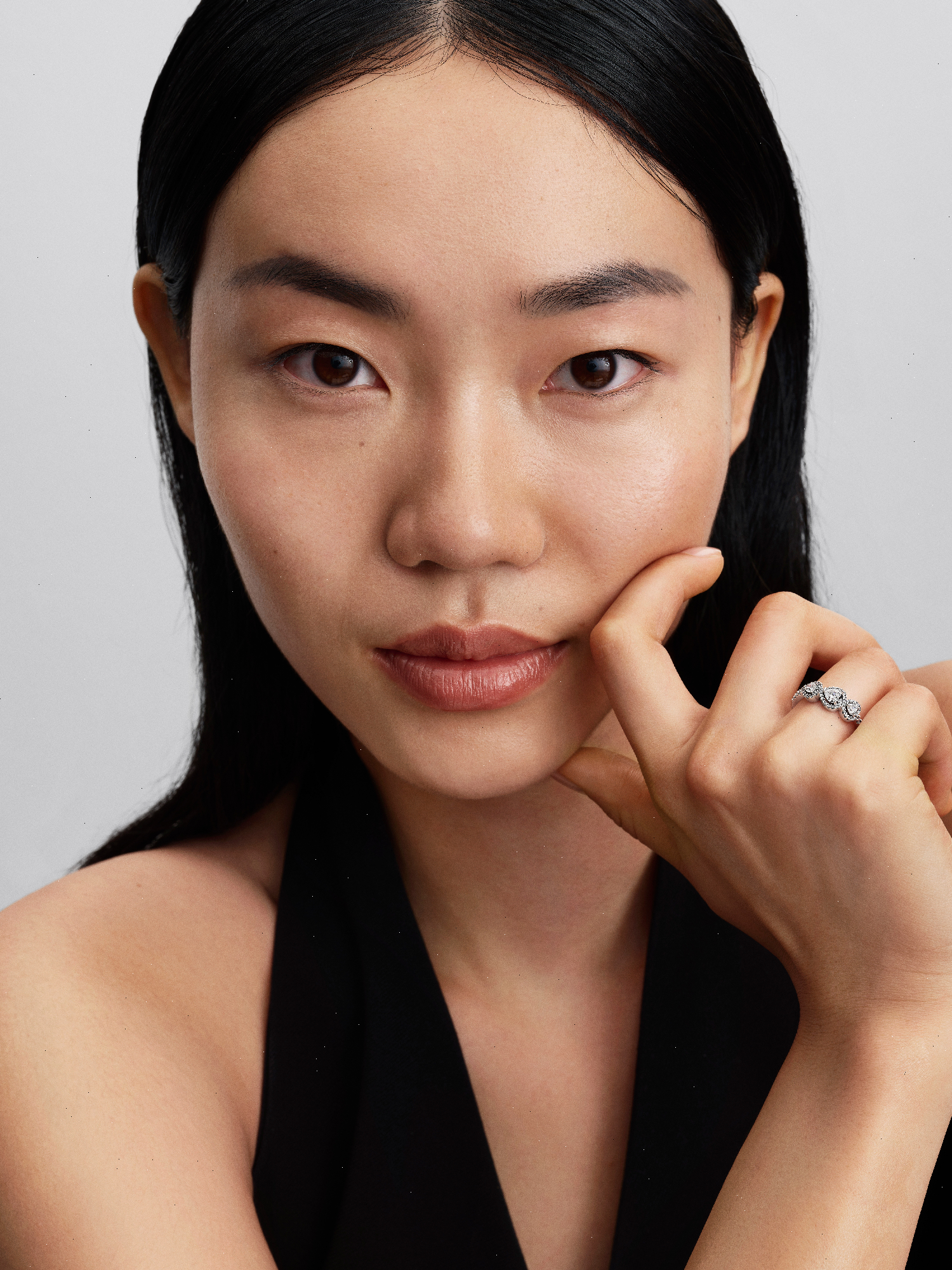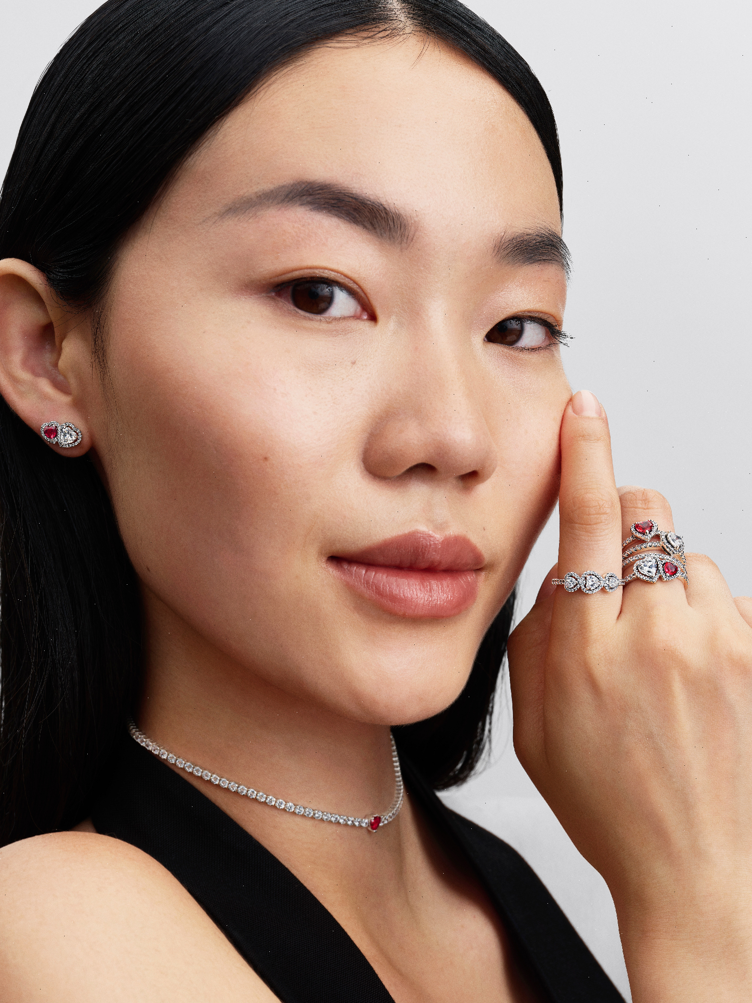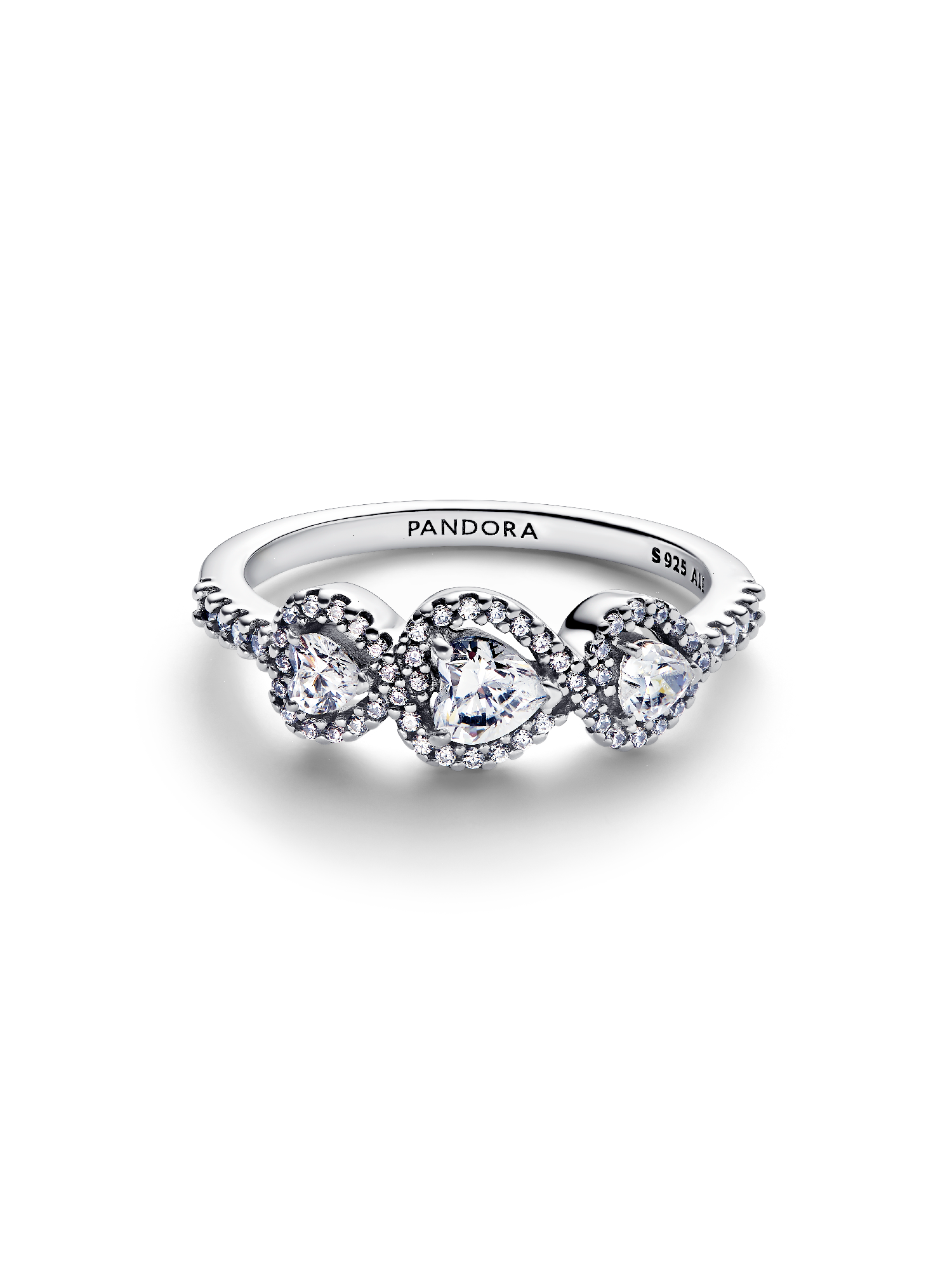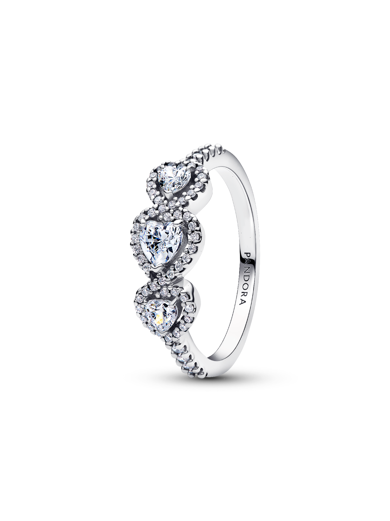 For the past, present and future. Crafted in sterling silver, this ring is set with three heart-shaped stones connected by a halo of pavé. A sparkling symbol of love in all its stages.