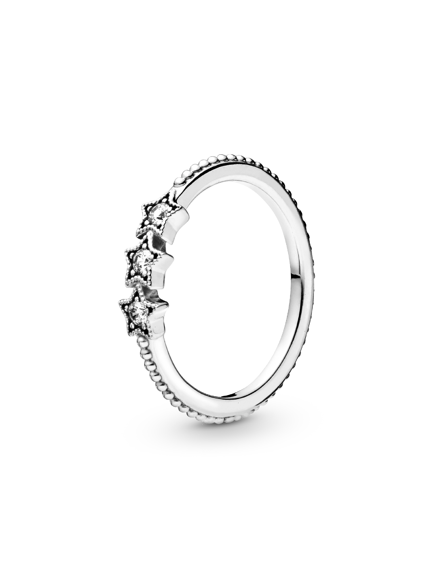 Aim for the moon and you'll land among the stars, as the famous saying goes. Capture the enchantment and wonder of the vast night sky with a delicate sterling silver ring featuring sparkling clear stones in dreamy starry shapes. Wear as a reminder to keep the magic alive in your day to day life, or keep it as a special occasion piece, which you bring out whenever you want to dazzle with your individual style.