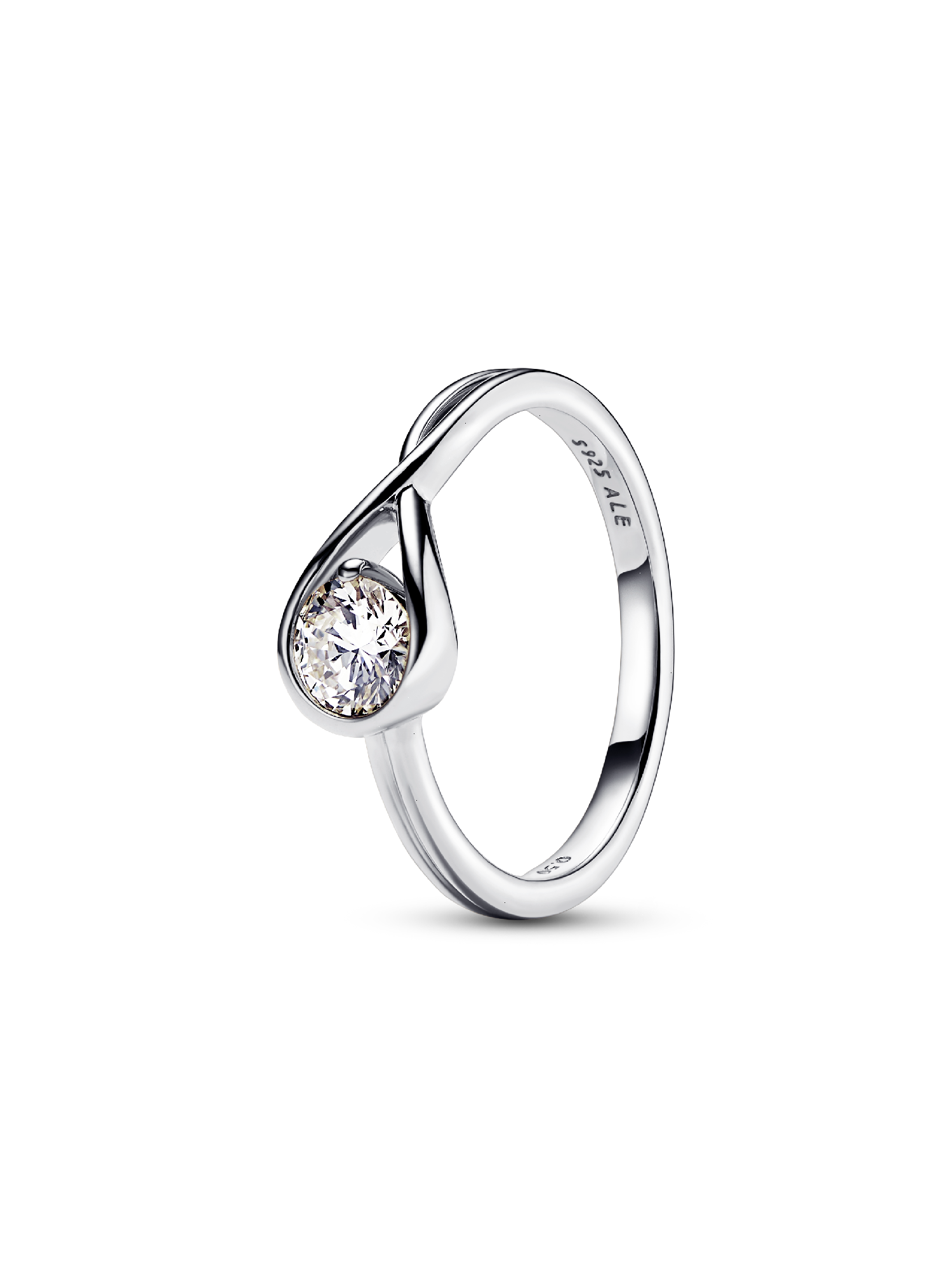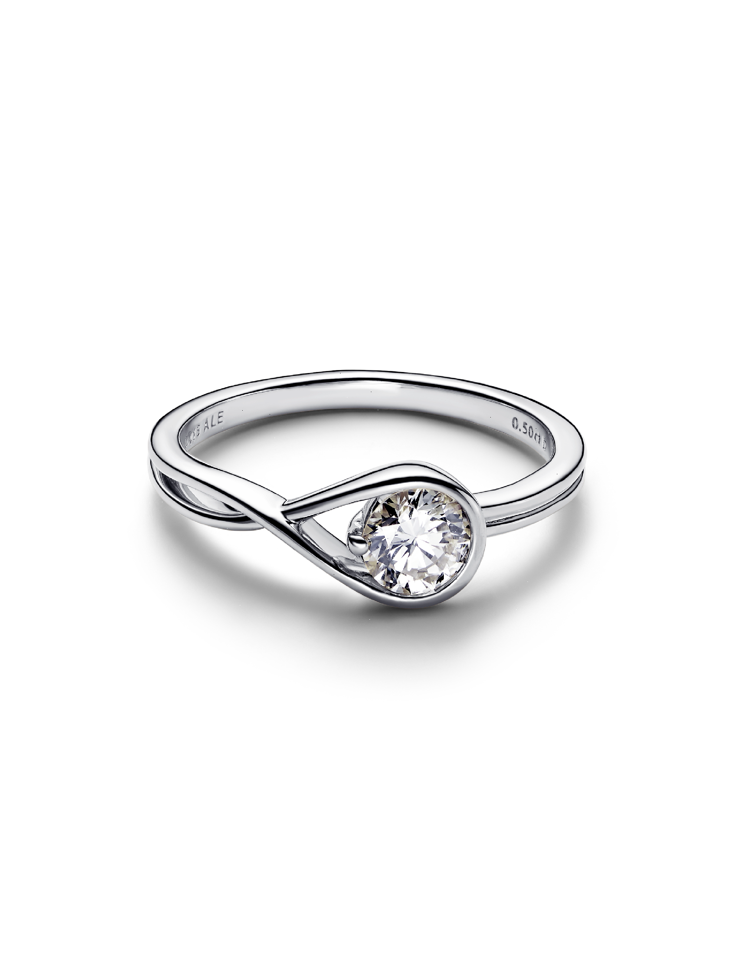 A solid sterling silver ring hand set with a 0.50 carat lab-grown diamond. A beautiful statement of empowerment and possibility, or a simple yet eloquent declaration of love. This ring features a scintillating round brilliant excellent cut lab-grown diamond in a modern infinity setting that flows seamlessly around the stone. It can be worn alone or stacked with other rings from the Pandora Infinite collection. Pandora Infinite lab-grown diamonds at and above 0.50 carat are certified by IGI. Each Pandora Lab-grown diamond is treated with a post-growth color enhancement called annealing.