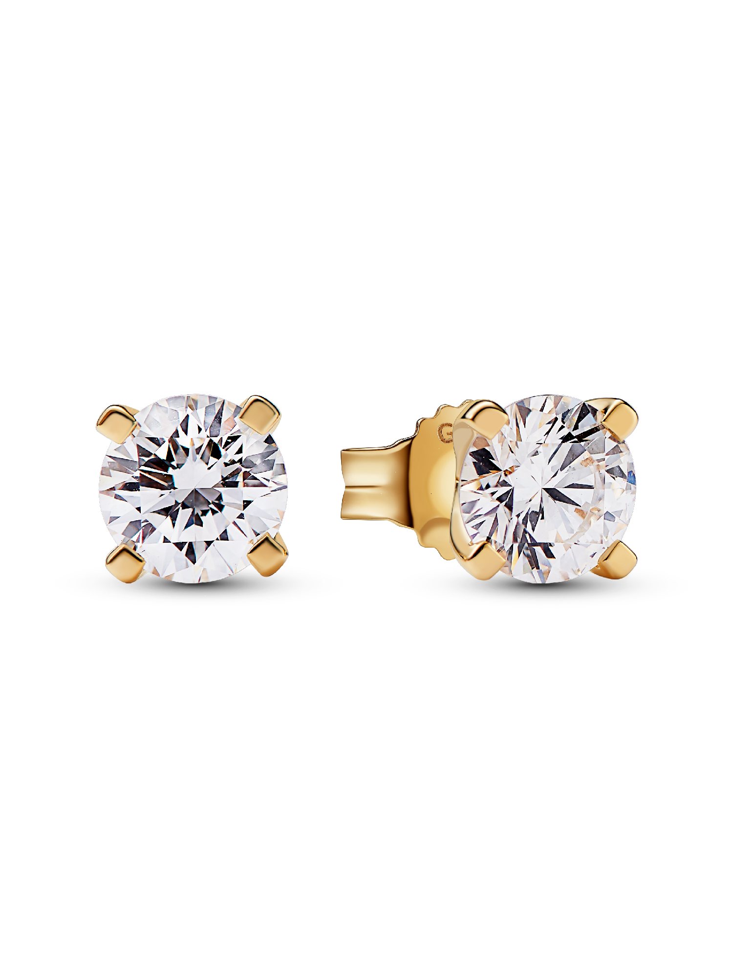 A fresh twist on a classic. The Pandora Era 14k Gold Lab-grown Diamond Earrings are sold as a pair and feature a 0.50 carat round brilliant excellent cut lab-grown diamond in each earring, with a total carat weight of 1.00. Each stone is held by a four-prong setting that combines round and flat profiles, creating a modern aesthetic and opening it to the light for amplified sparkle. These 14k gold earrings are a universally wearable jewellery box essential that will elevate your looks day and night for years to come. Each Pandora Lab-grown diamond is treated with a post-growth color enhancement called annealing.