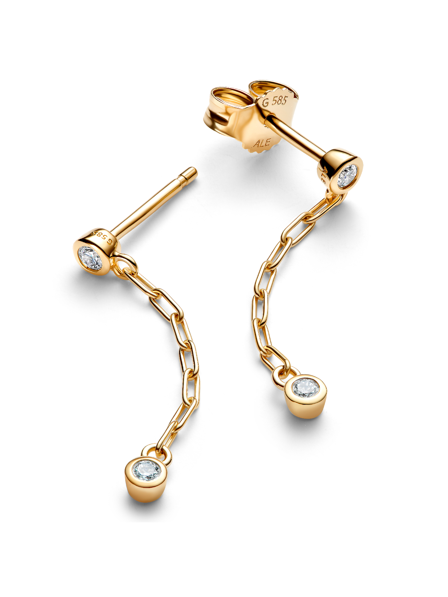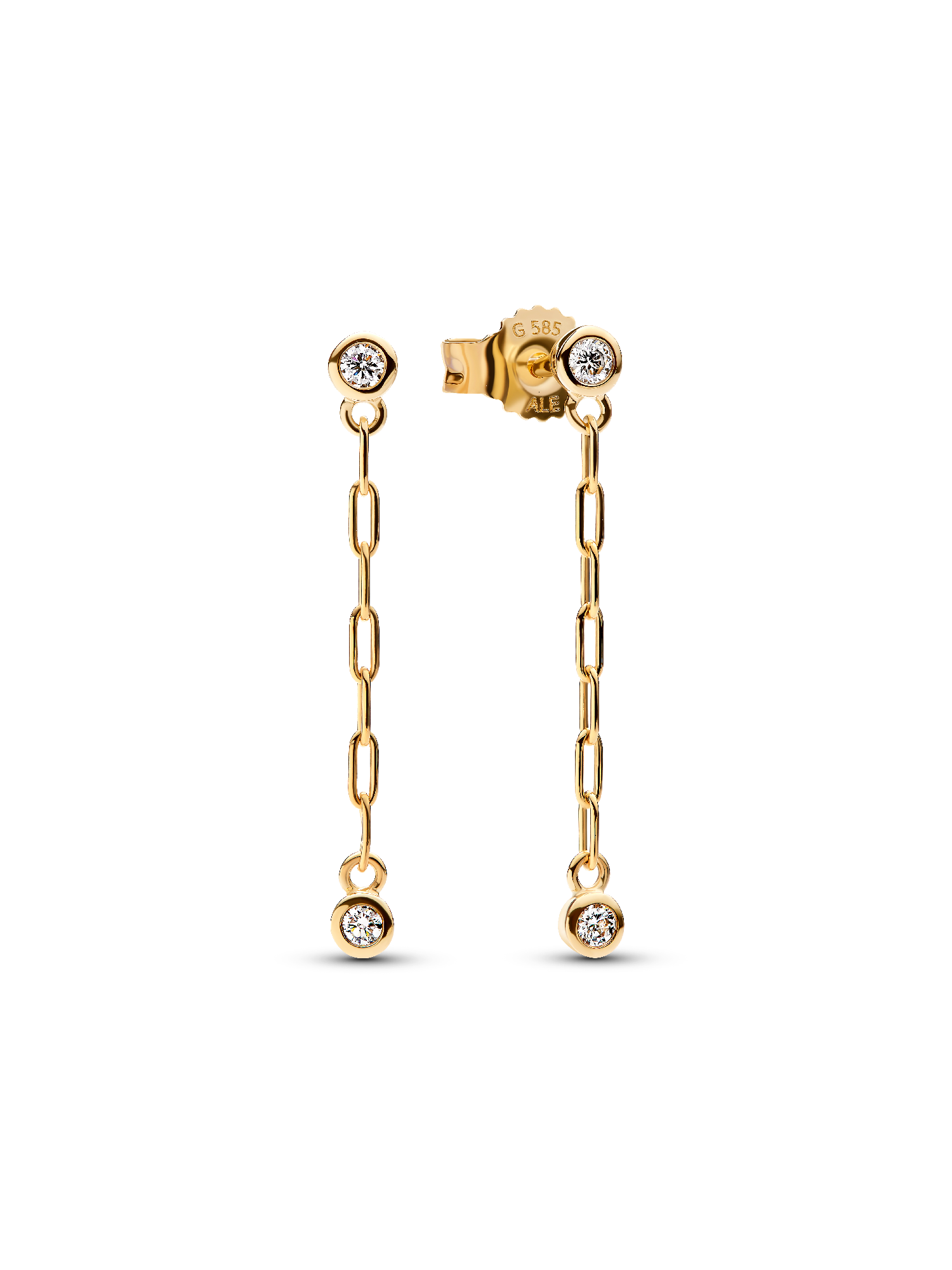Meet your new "I'm never taking them off" earrings. Two 14k solid gold paperclip chains hang between two bezel-set lab-grown diamonds with 0.12ct TW - one at the stud and one at the end of the drop. Surprise someone special or treat yourself to radiance, with these effortlessly elegant drop earrings.