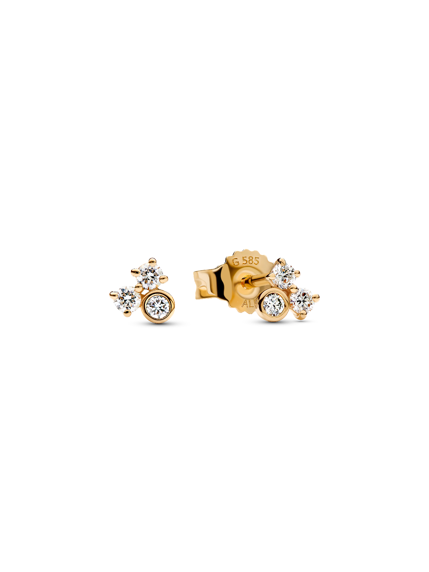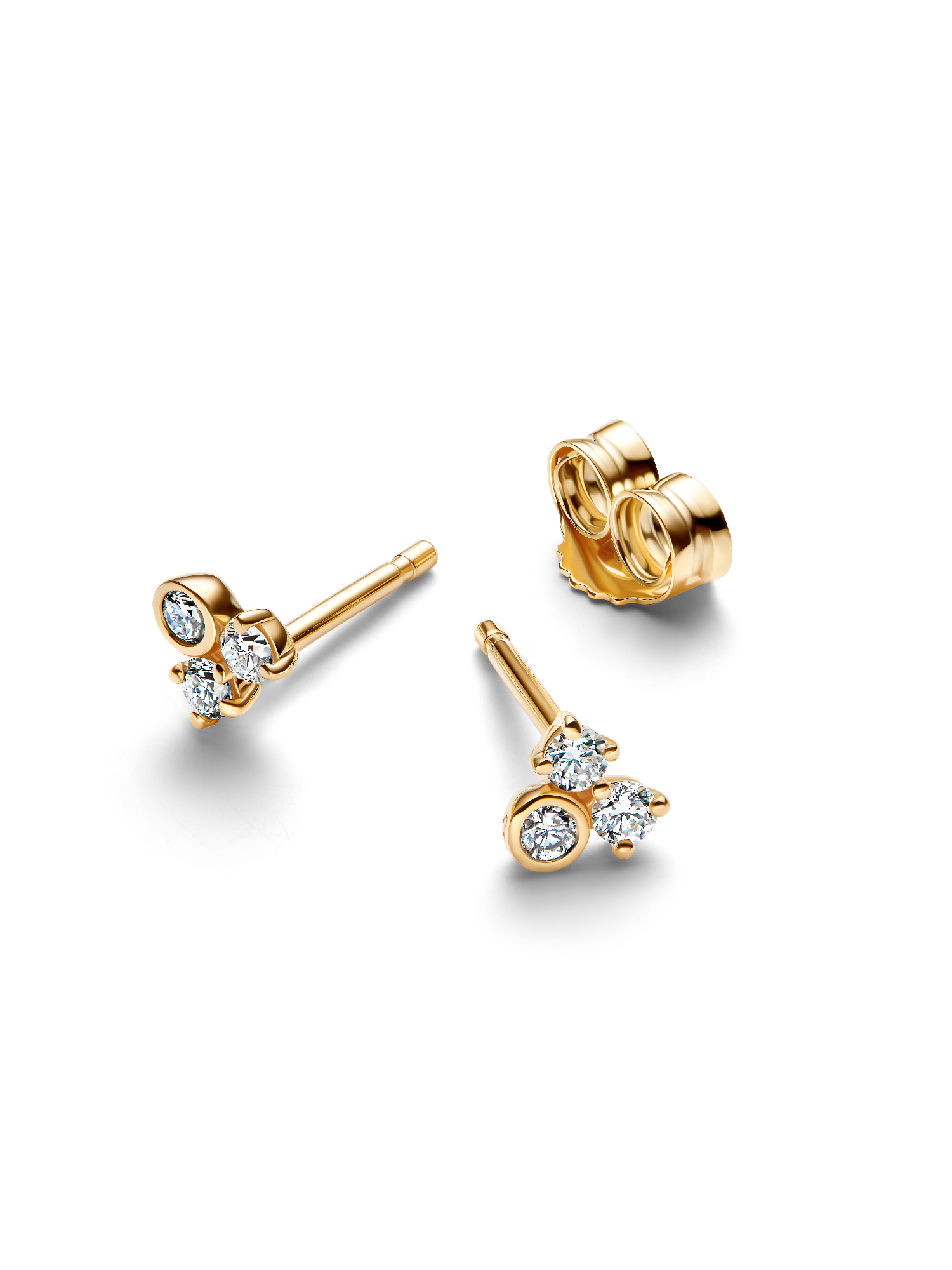 Crafted from 14k gold, these earrings feature a cluster of three lab-grown diamonds with a combined total carat weight of 0.19ct. Two diamonds are prong-set while one is bezel-set, creating a harmonious interplay of settings. Add a touch of radiance to your everyday jewelry with a classic yet contemporary diamond stud.