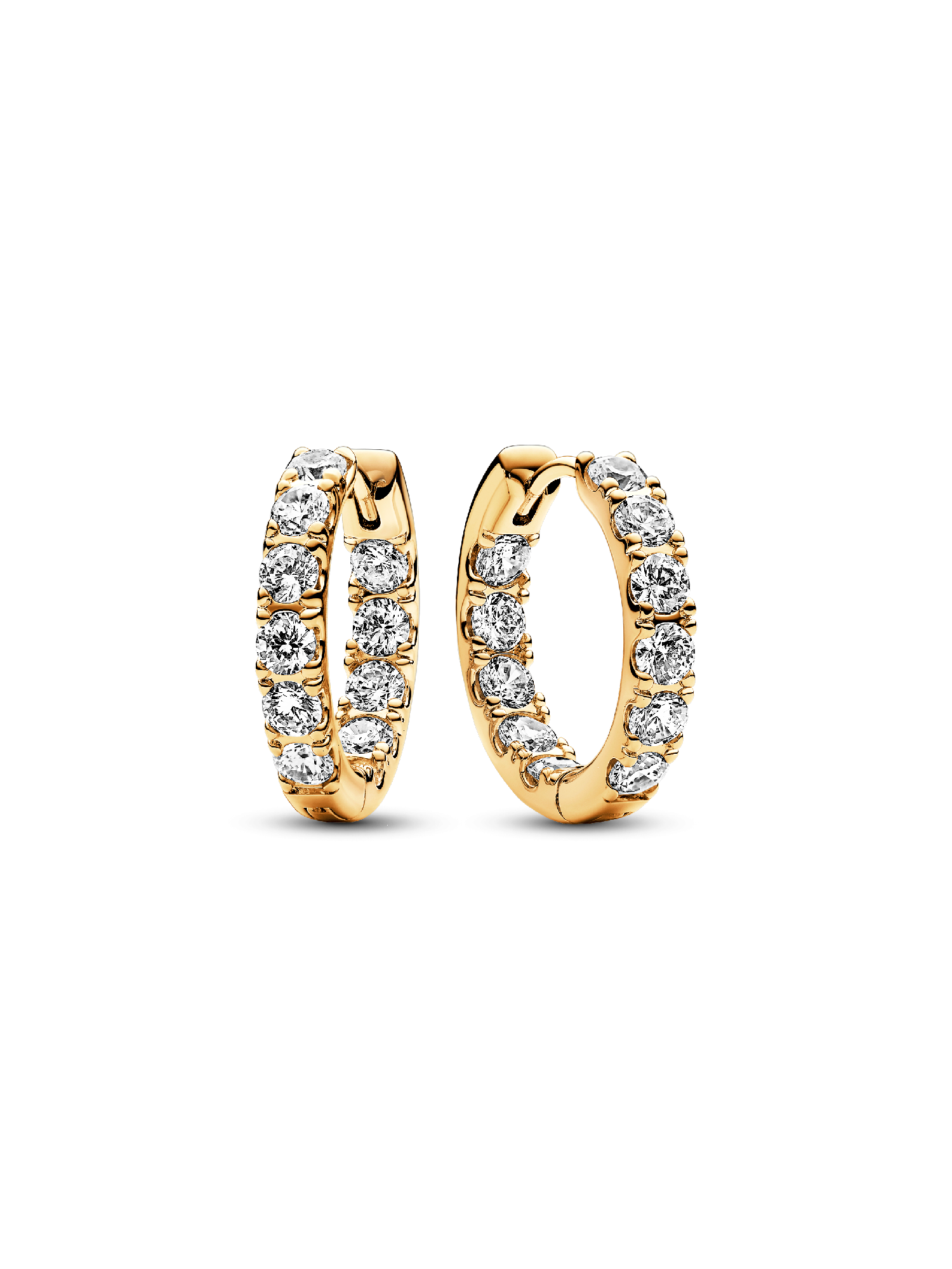 Tap into the power of eternity with the Sparkling Row Eternity Hoop Earrings. These sleek 14k gold-plated hoops have a squared profile embellished with sparkling stones. The clear cubic zirconia rows are placed along the front of each hoop and the inner back of each hoop for maximum visibility. A perfect gift for earring lovers or those who love gold tones, these hoop earrings will become a go-to piece in any jewelry collection.