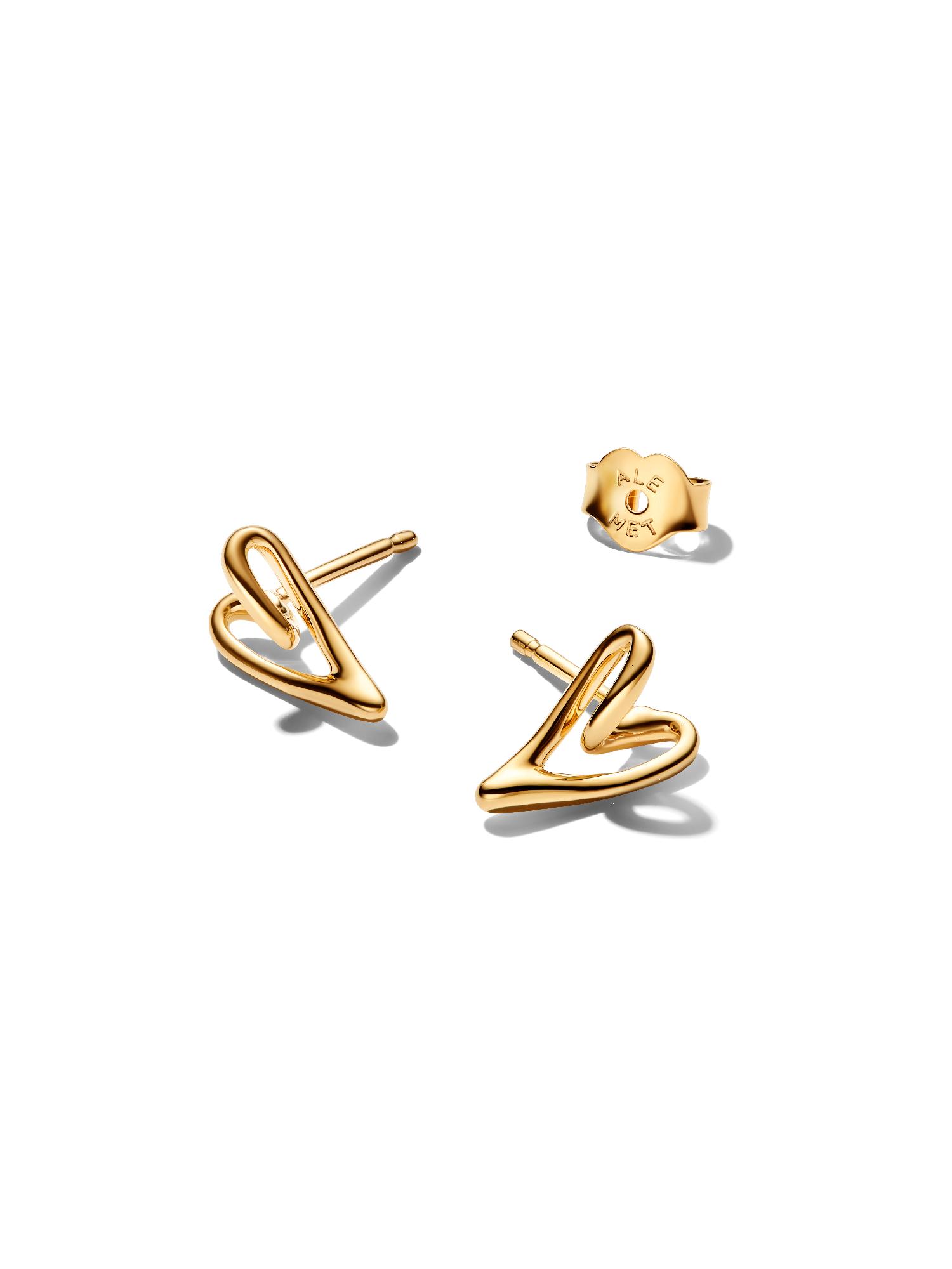 Inspired by nature, a continuous line flows to form an organically shaped heart on each 14k gold-plated earring. Sold as a pair, they mirror each other. Pair them with the matching ring and bangle to declare your love.